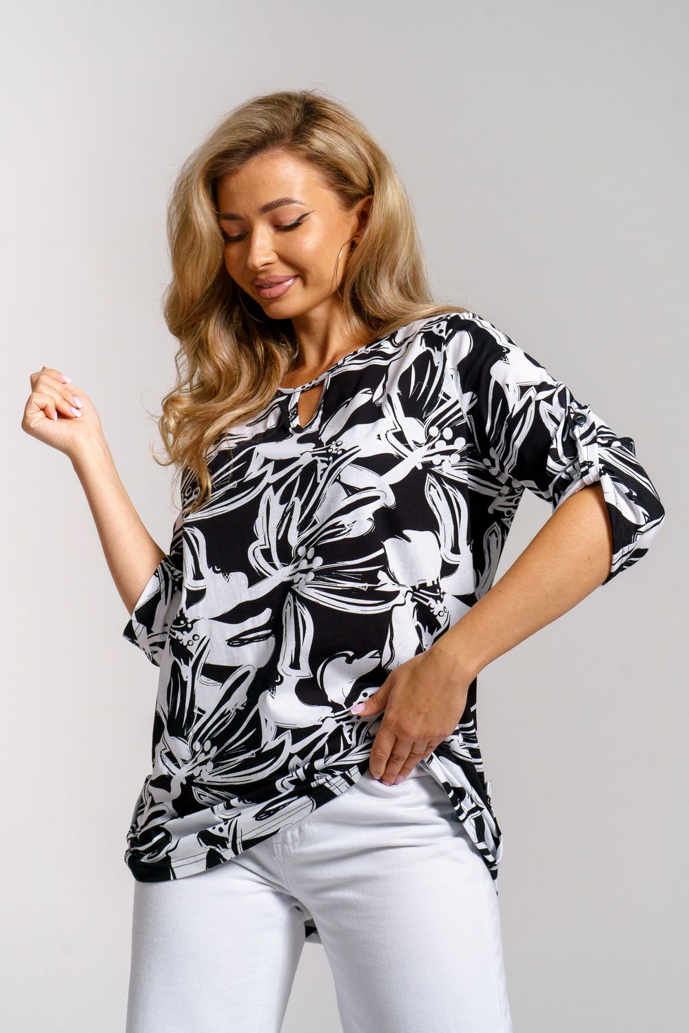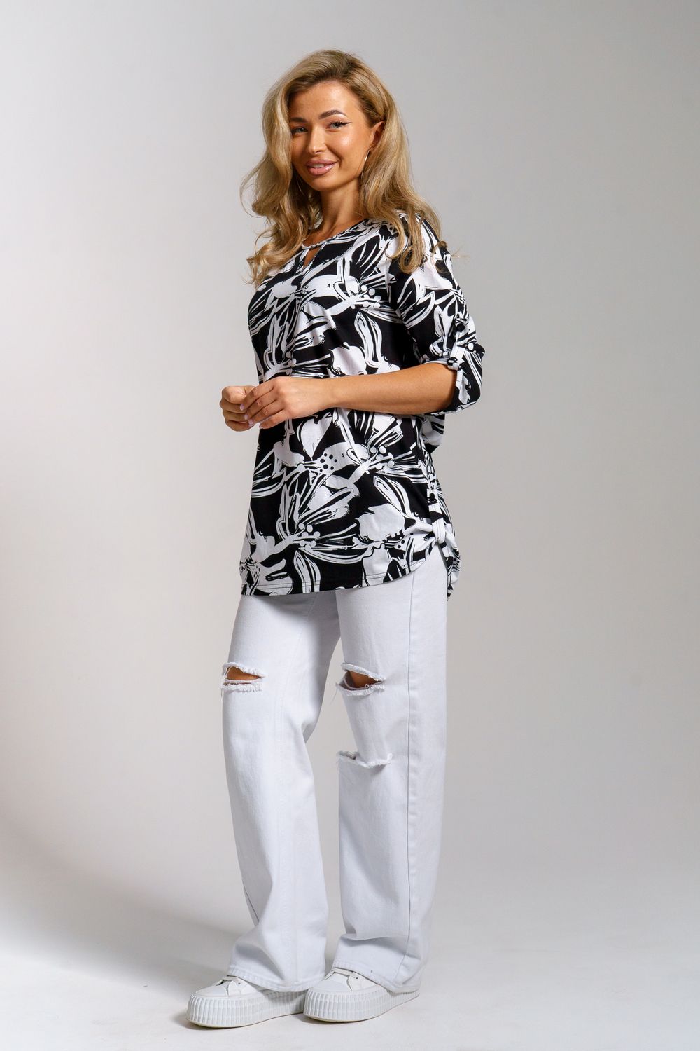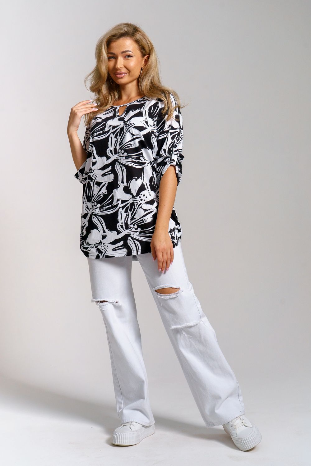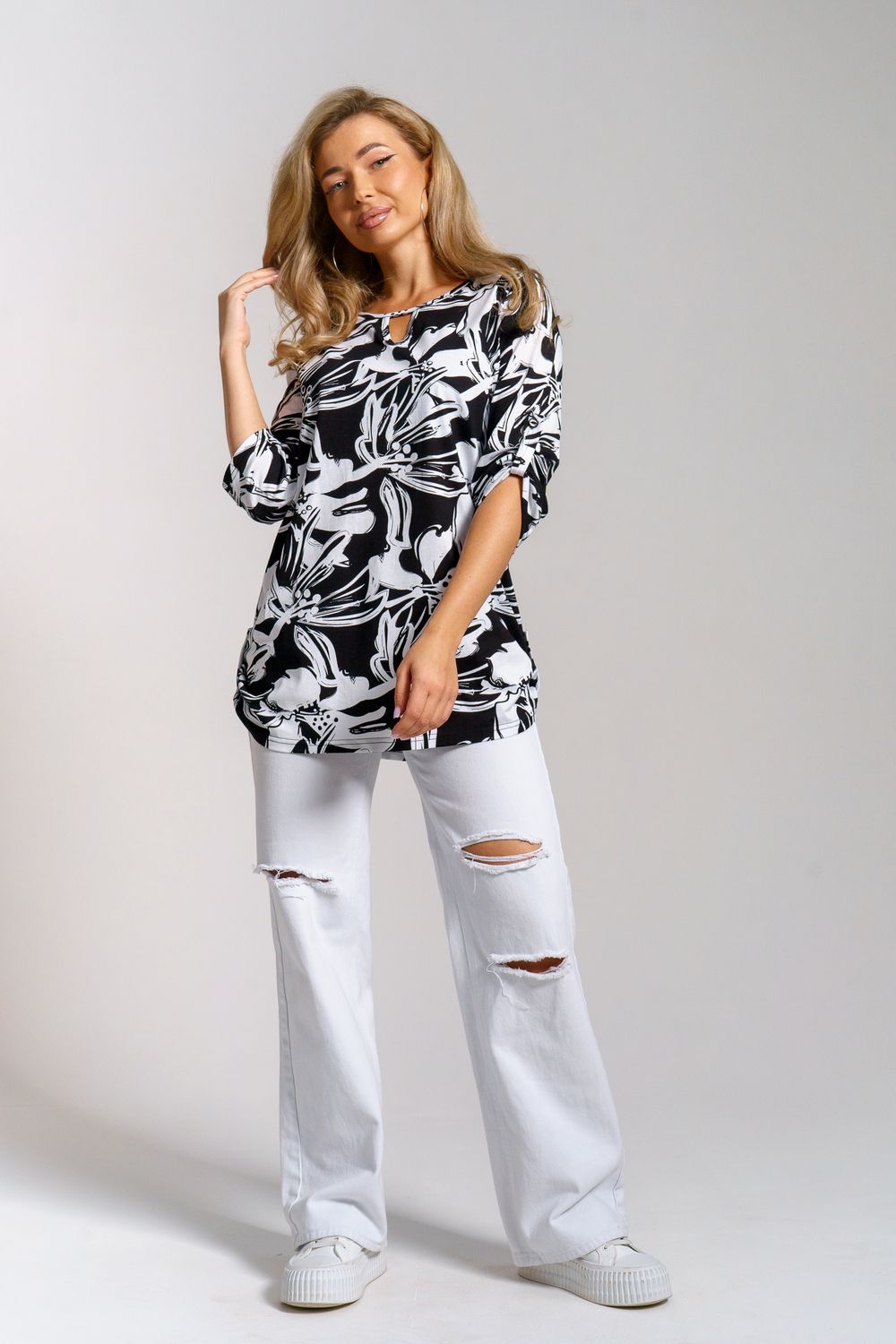 Туника 36970 - черно-белый