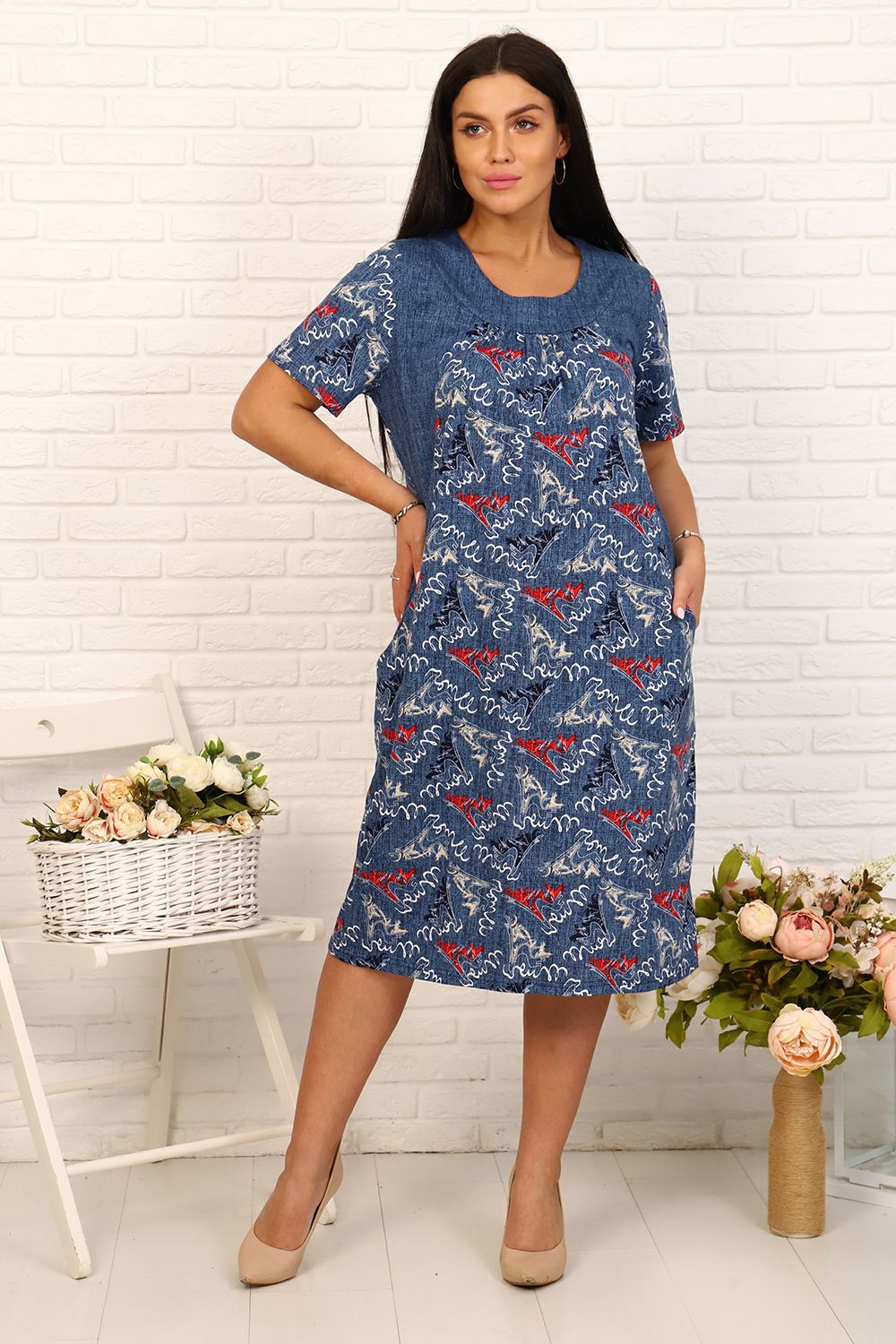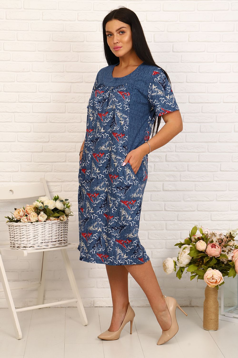 Туника из кулирки - отлично подходит как для дома, так и для дачи. Выполнена в расцветке под джинс, спереди кокетка со складками, карманы в рельефе, короткий рукав. Очень удобная и красивая модель, о покупке которой Вы не пожалеете