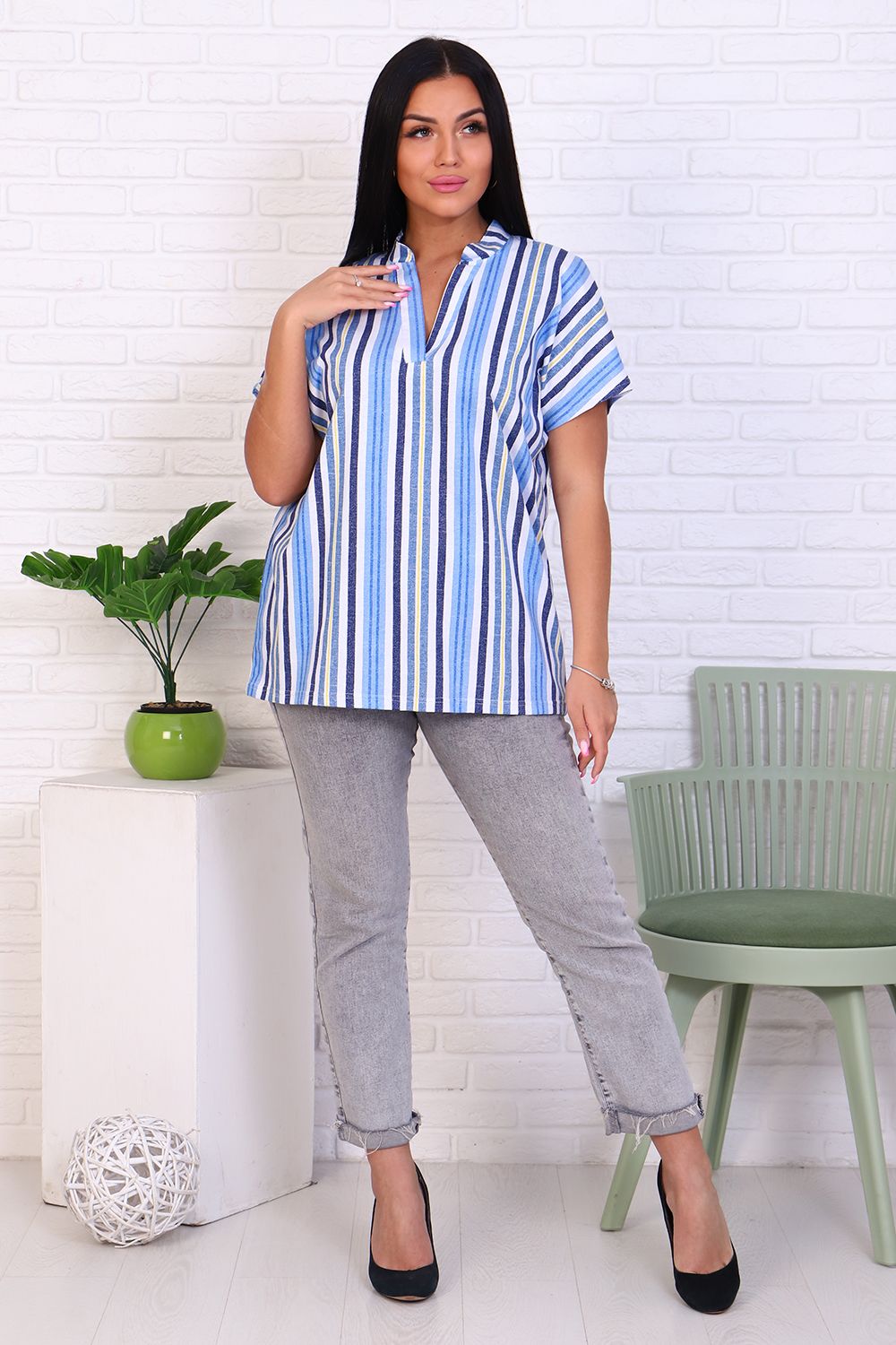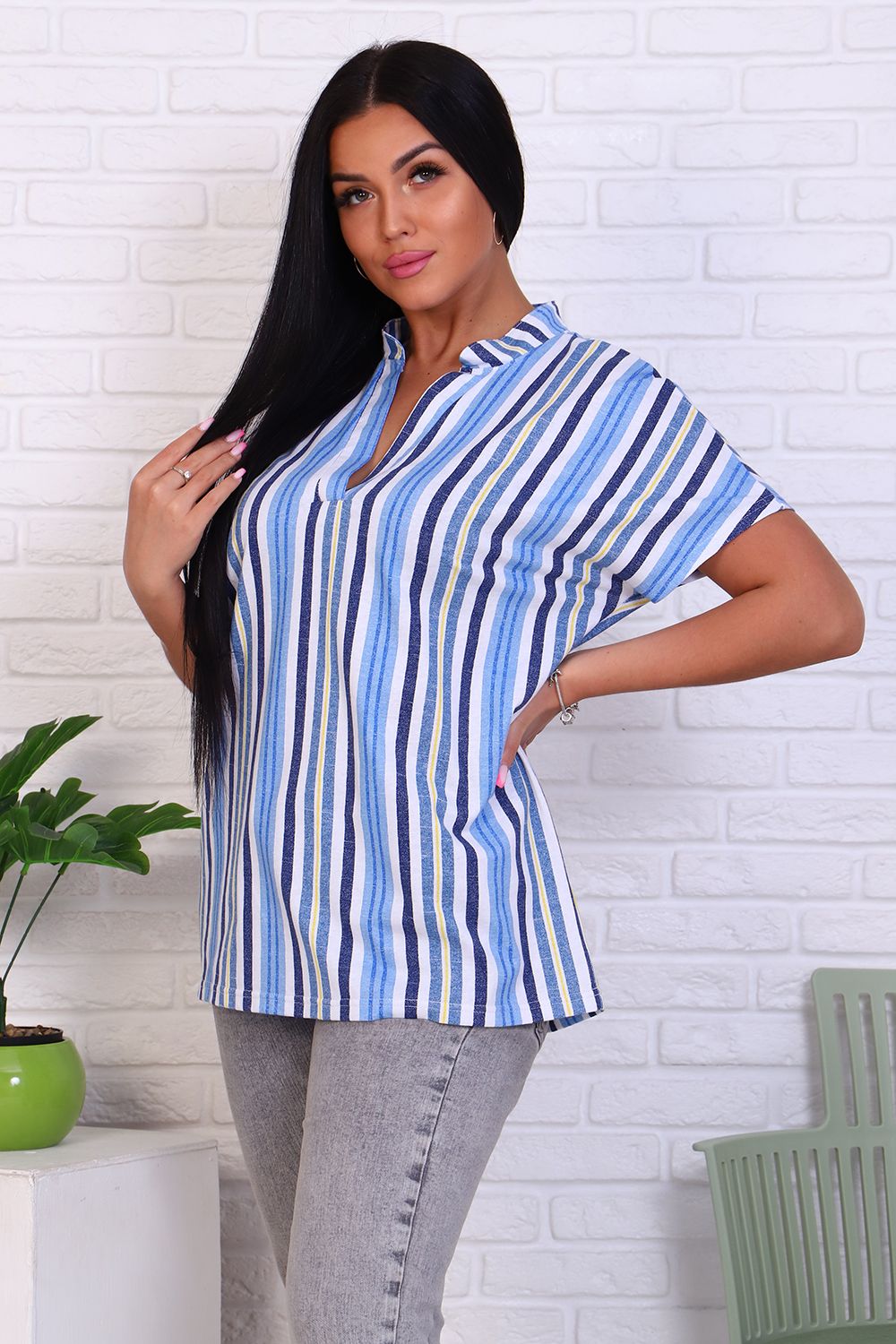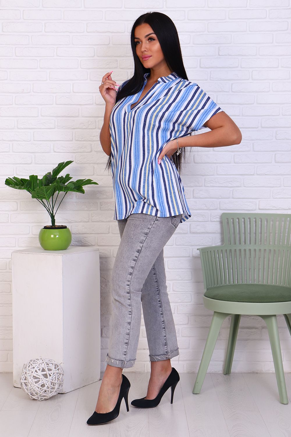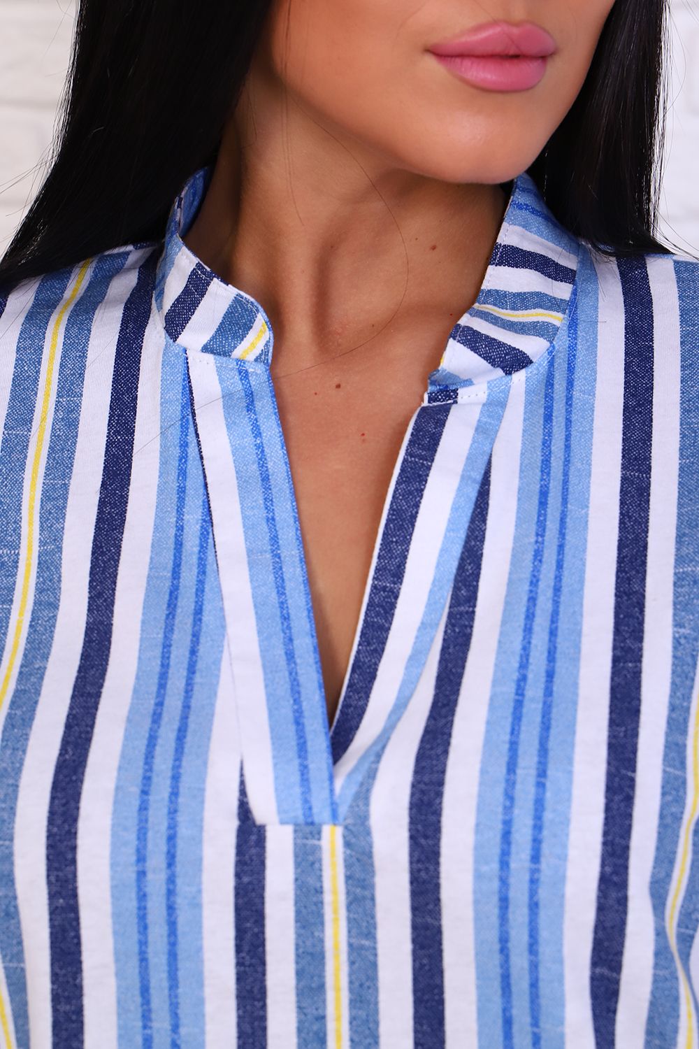 Туника женская прямого силуэта, спущенная линия плеча, воротник - стойка, V-образная горловина с планкой. Универсальный вариант для носки с любым низом.