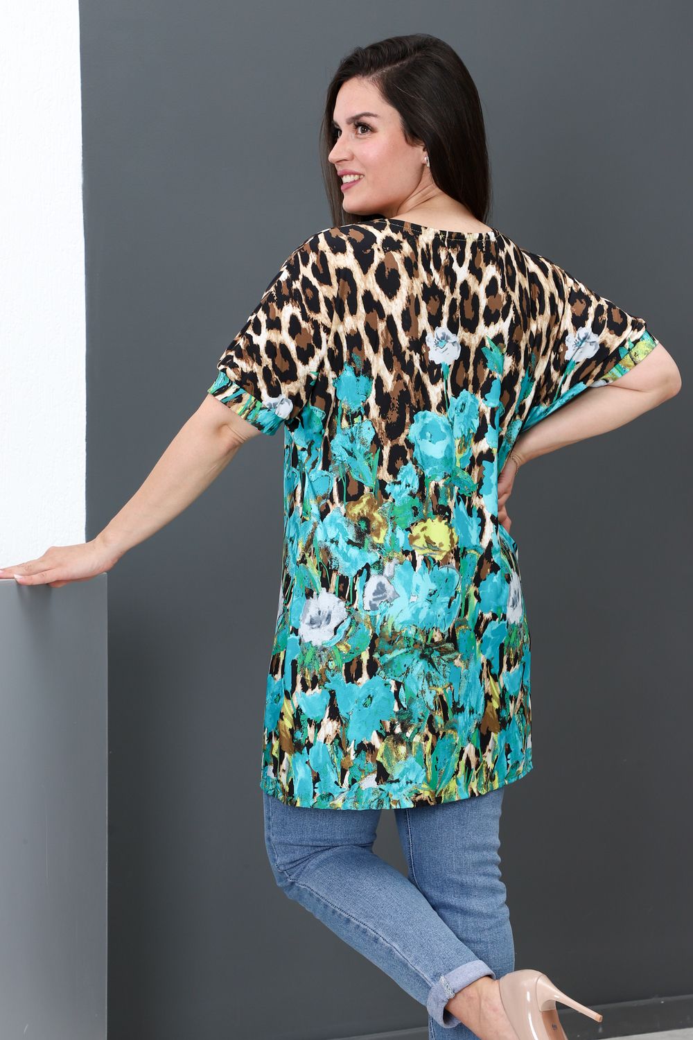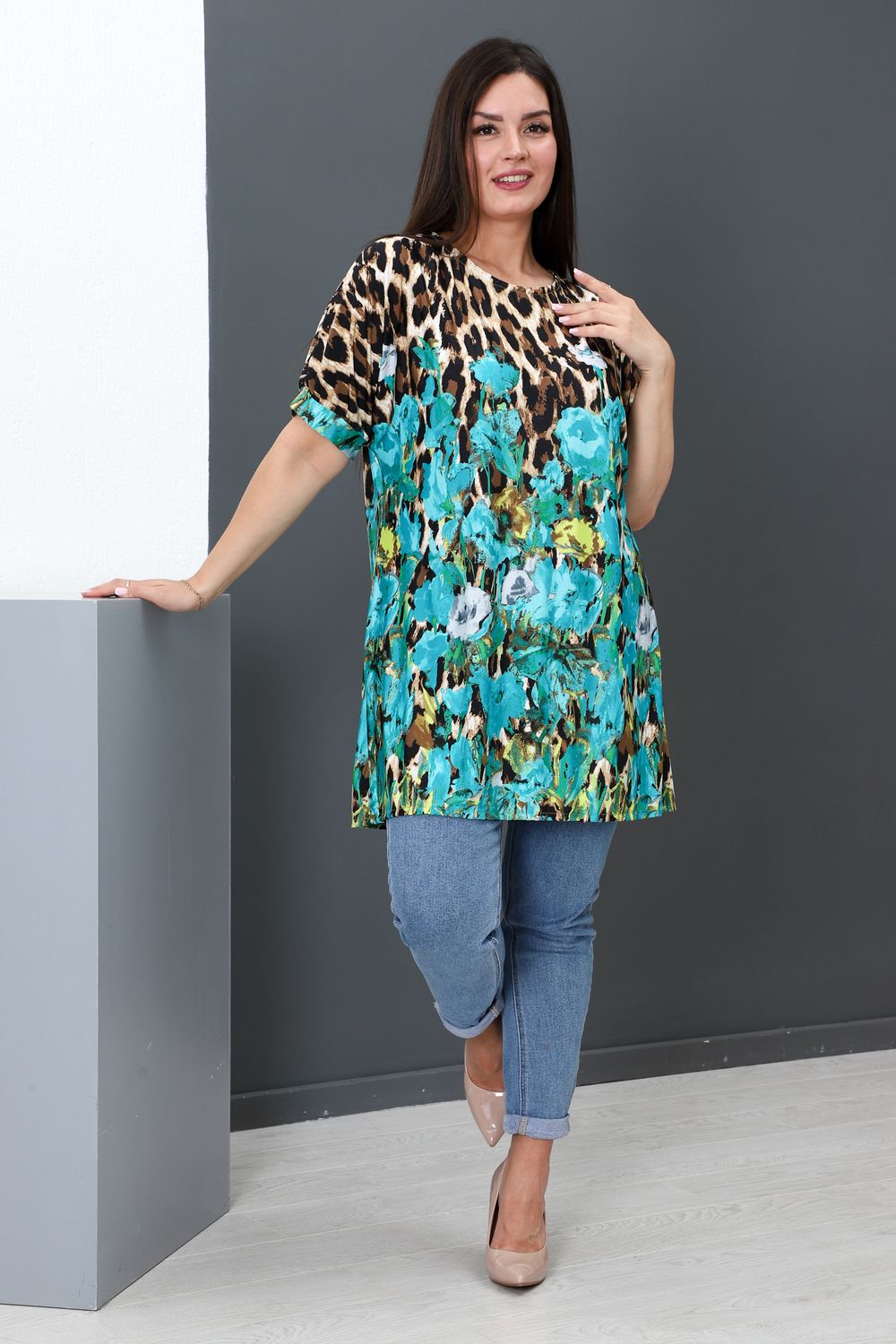 Туника женская прямого силуэта, округлый воротник, спущенный рукав на манжете. Легкая и удобная.
