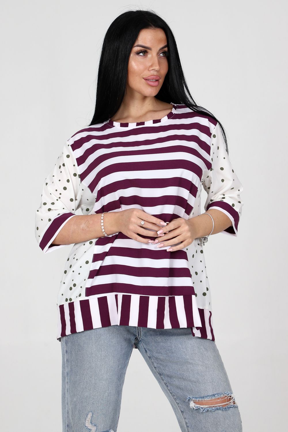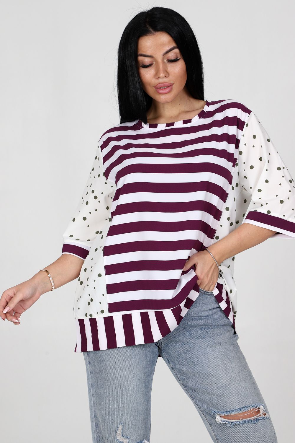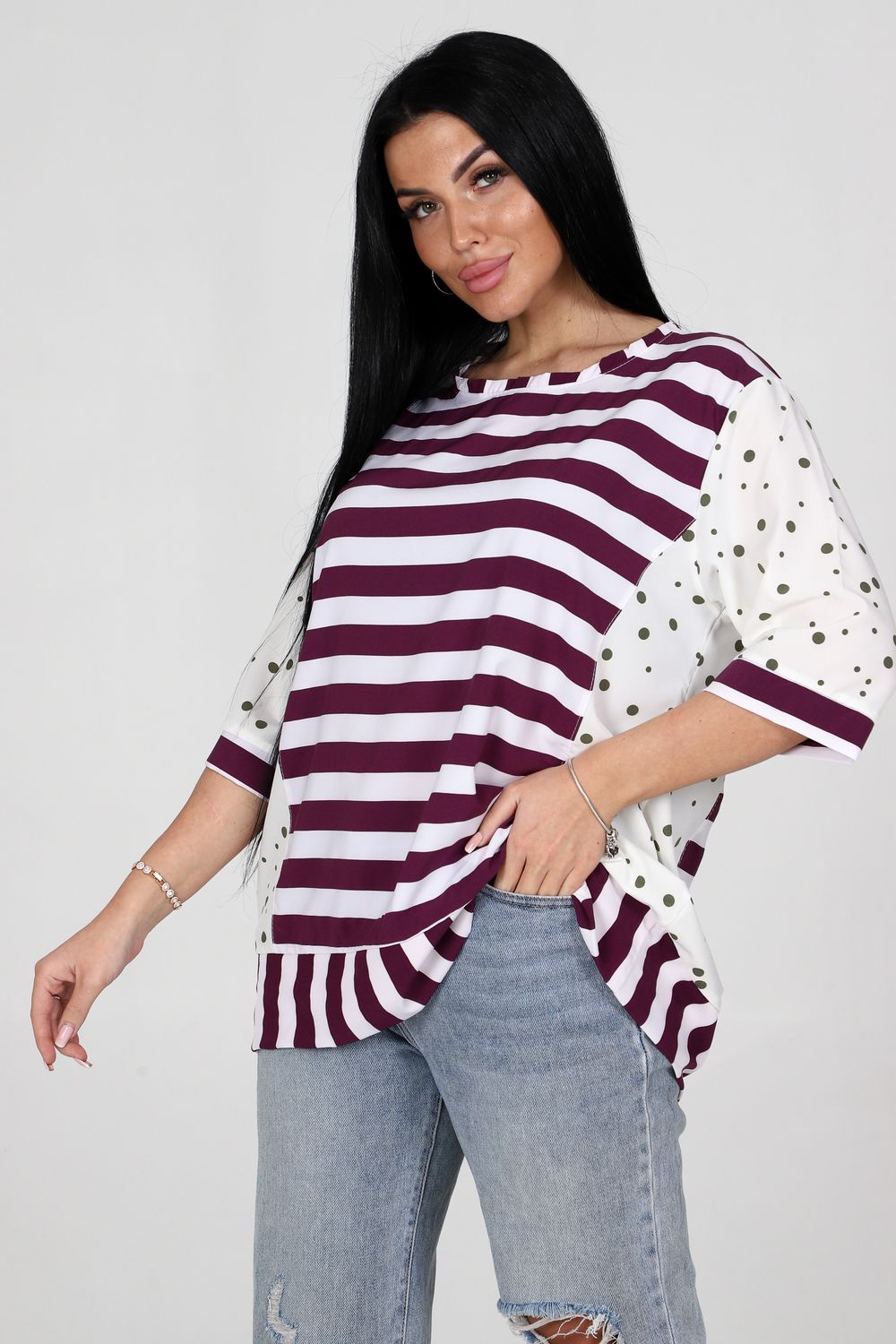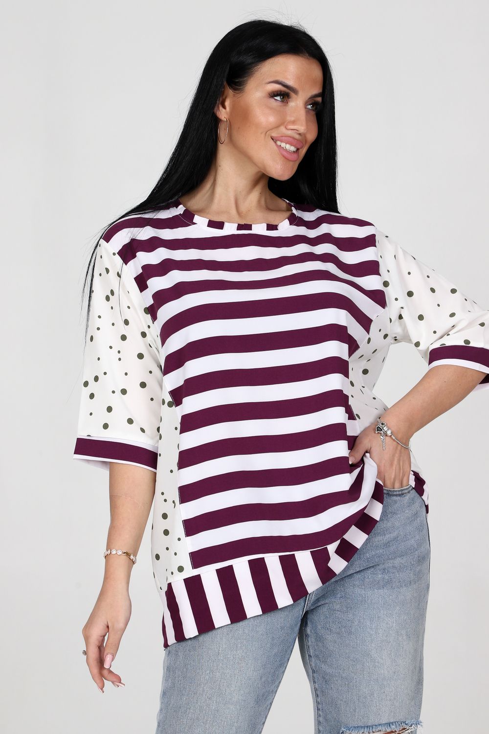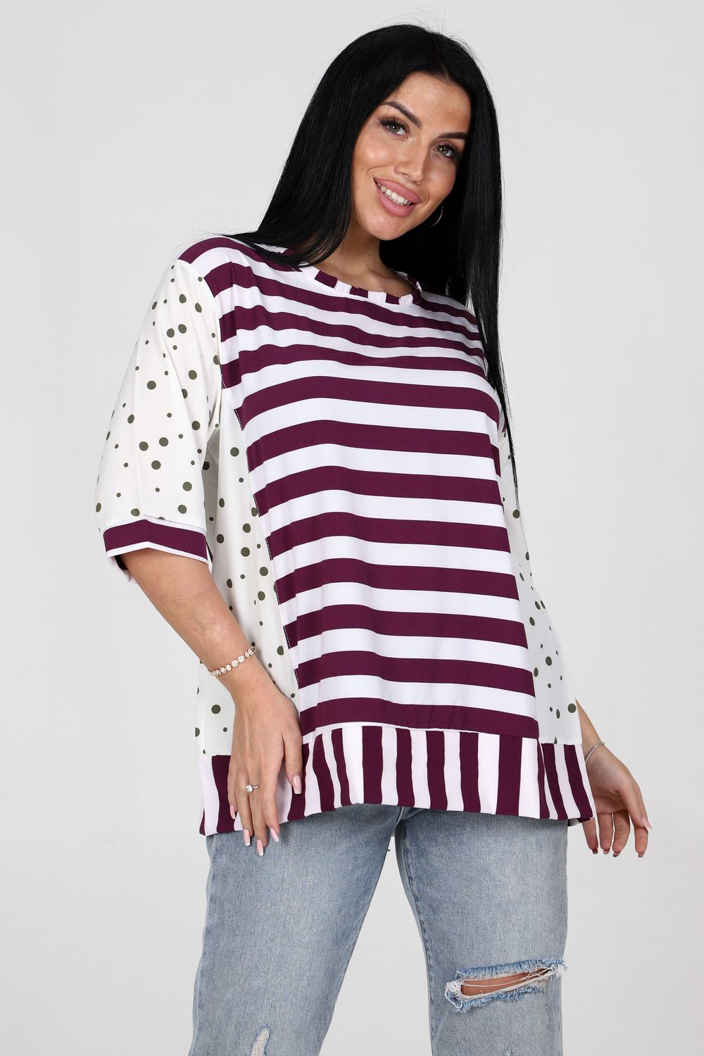 Туника 52290 - сиреневый+зеленый горох