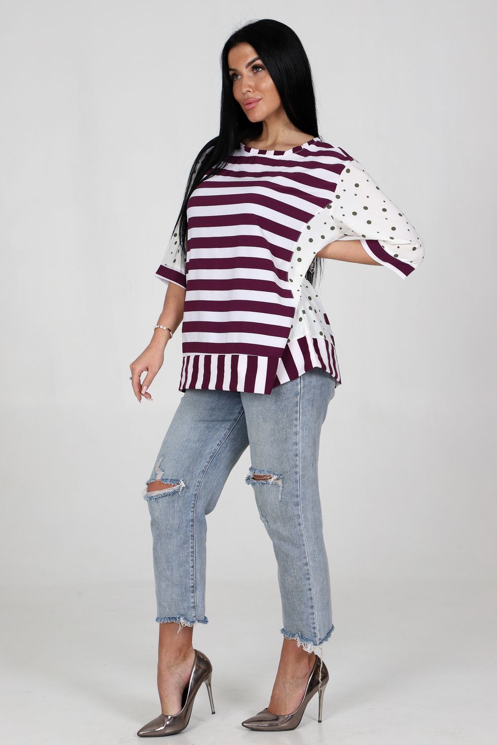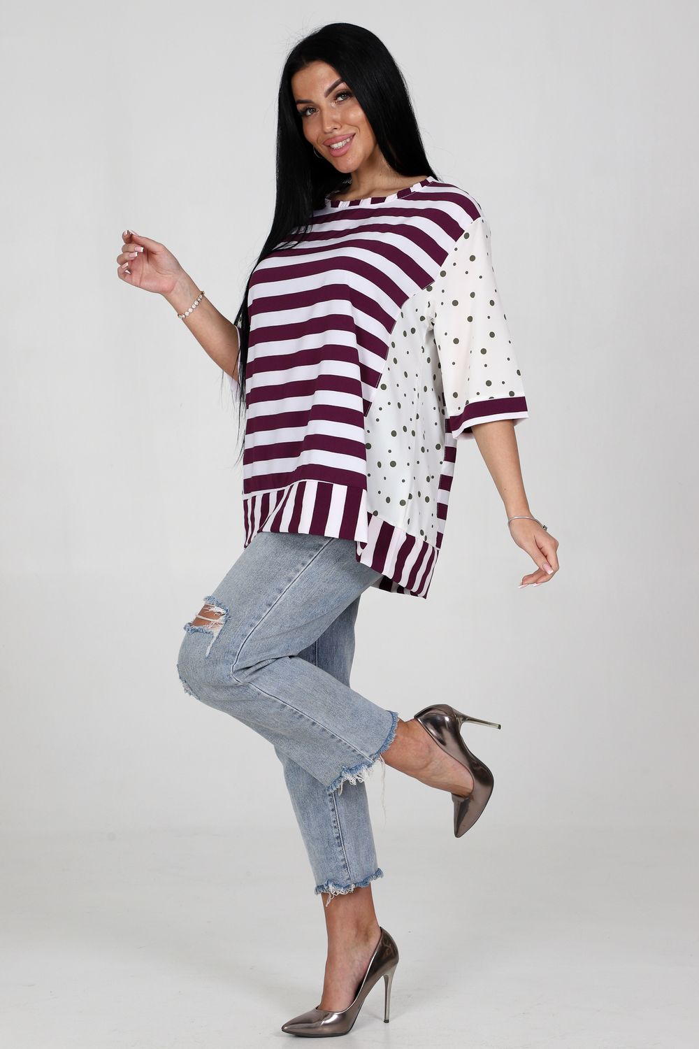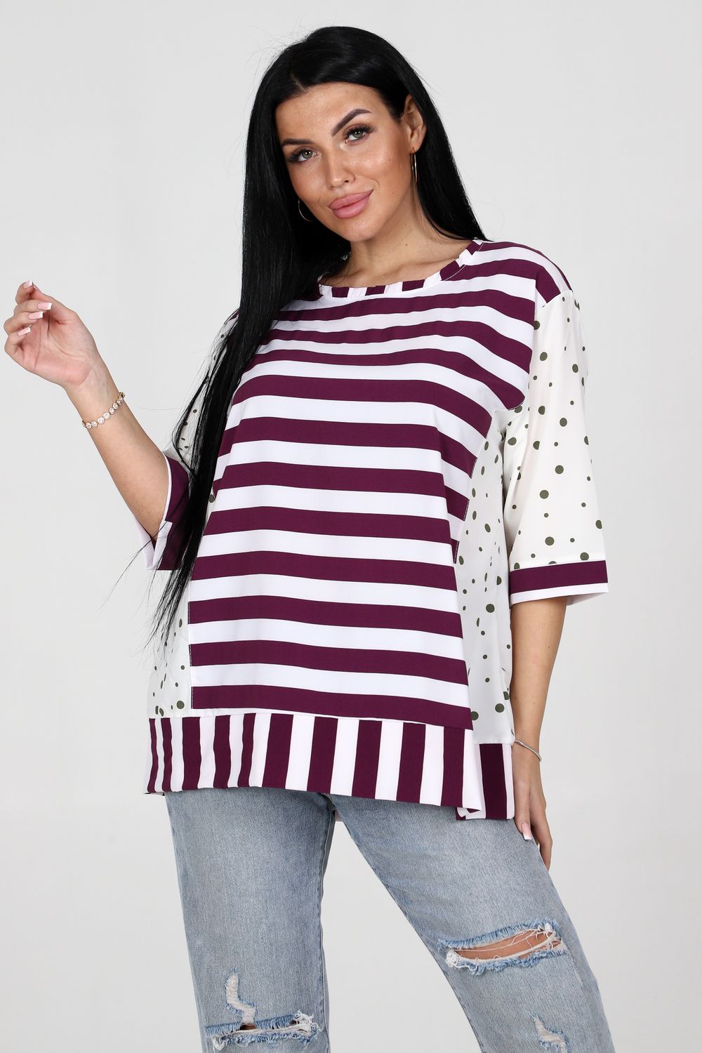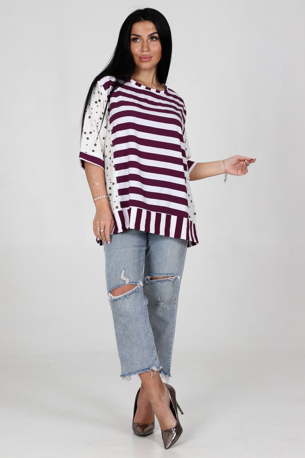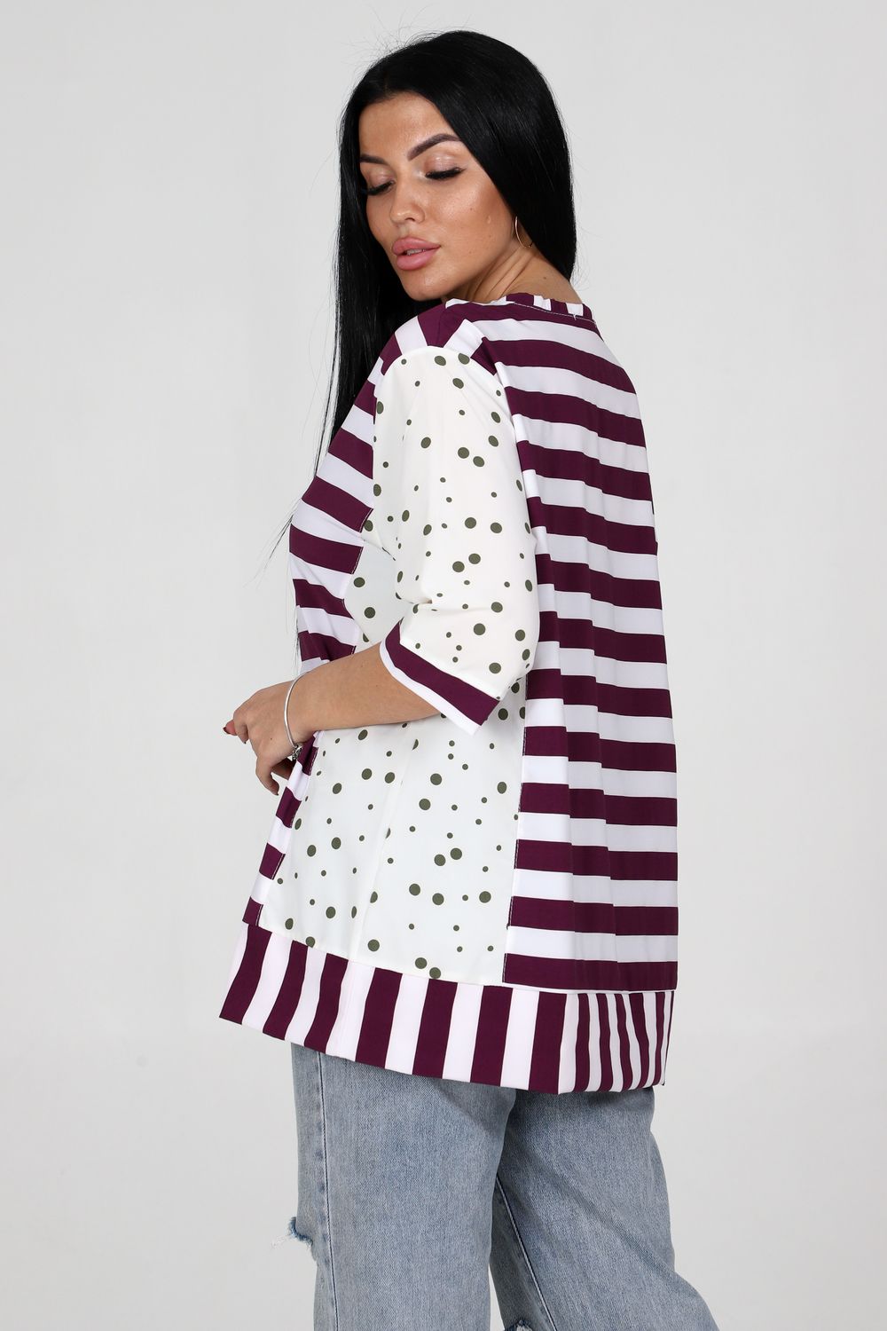 Туника 52290 - сиреневый+зеленый горох