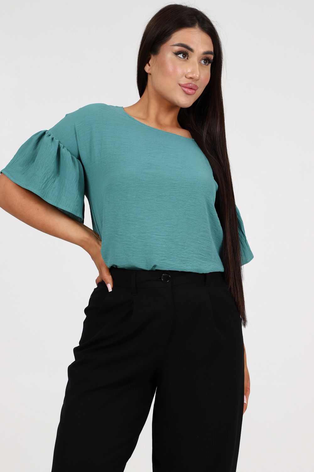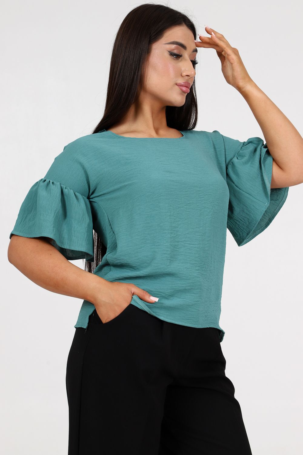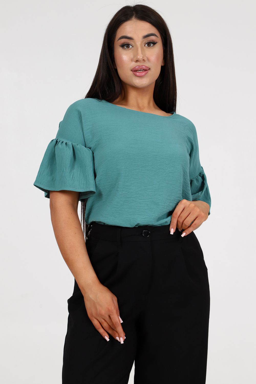 Женская элегантная туника прямого силуэта. Блузка имеет несколько цветов - 2 из них базовые "черный и белый". Рукава воланового типа, чуть выше локтя, горловина округлая, снизу разрезы по бокам. Выполнена из ткани сингапур, которая отвечает за комфорт и легкость при носке. Туника на каждый день - на работу, на праздник, для прогулок.