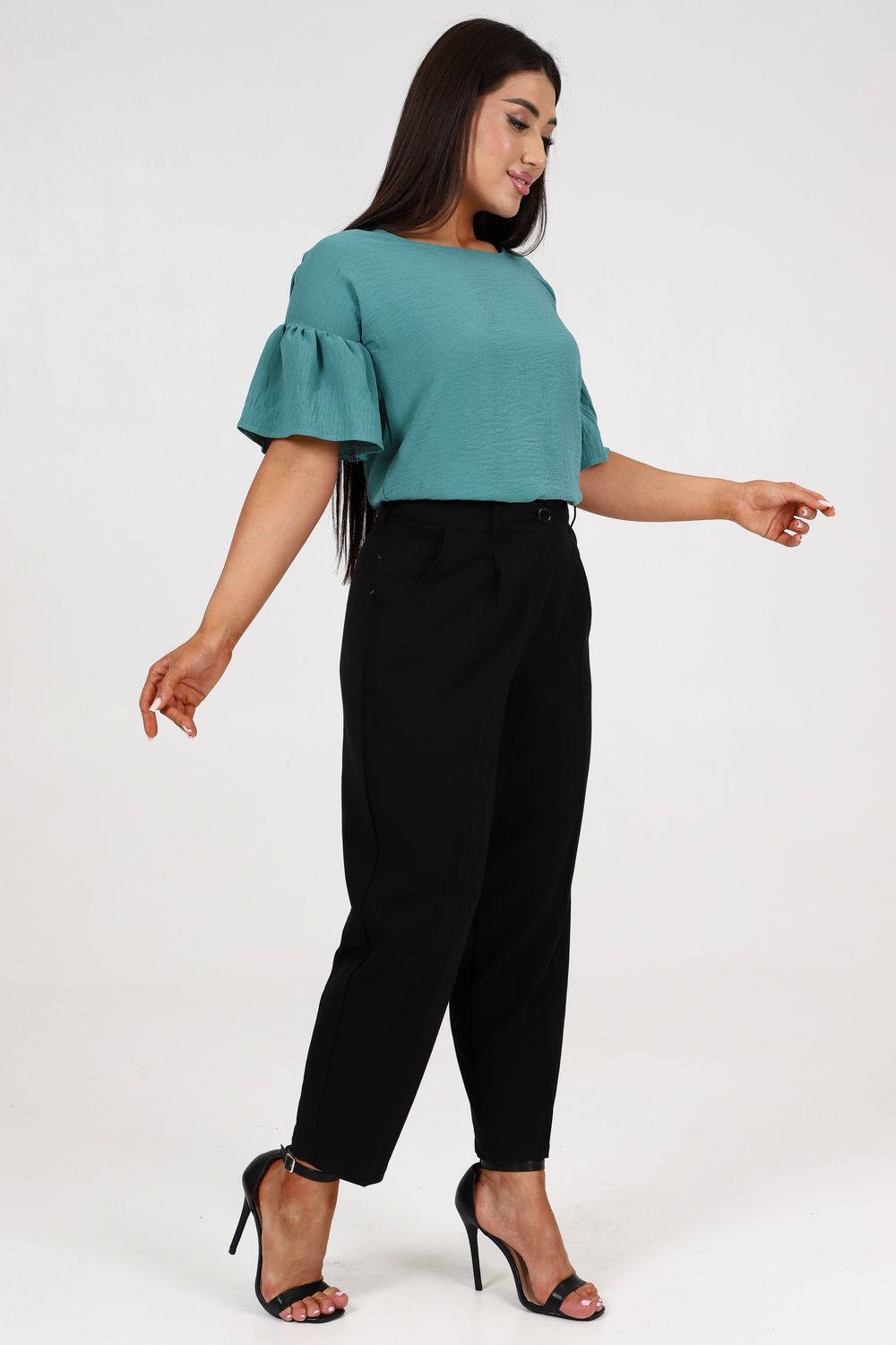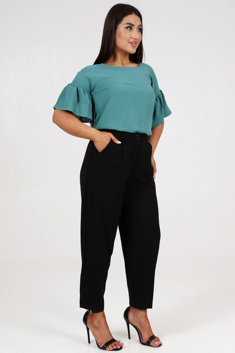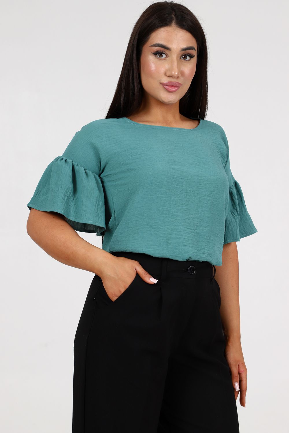 Женская элегантная туника прямого силуэта. Блузка имеет несколько цветов - 2 из них базовые "черный и белый". Рукава воланового типа, чуть выше локтя, горловина округлая, снизу разрезы по бокам. Выполнена из ткани сингапур, которая отвечает за комфорт и легкость при носке. Туника на каждый день - на работу, на праздник, для прогулок.
