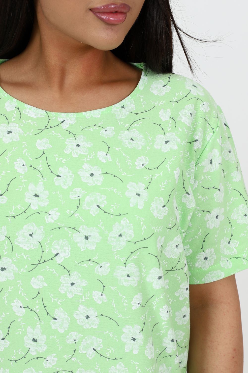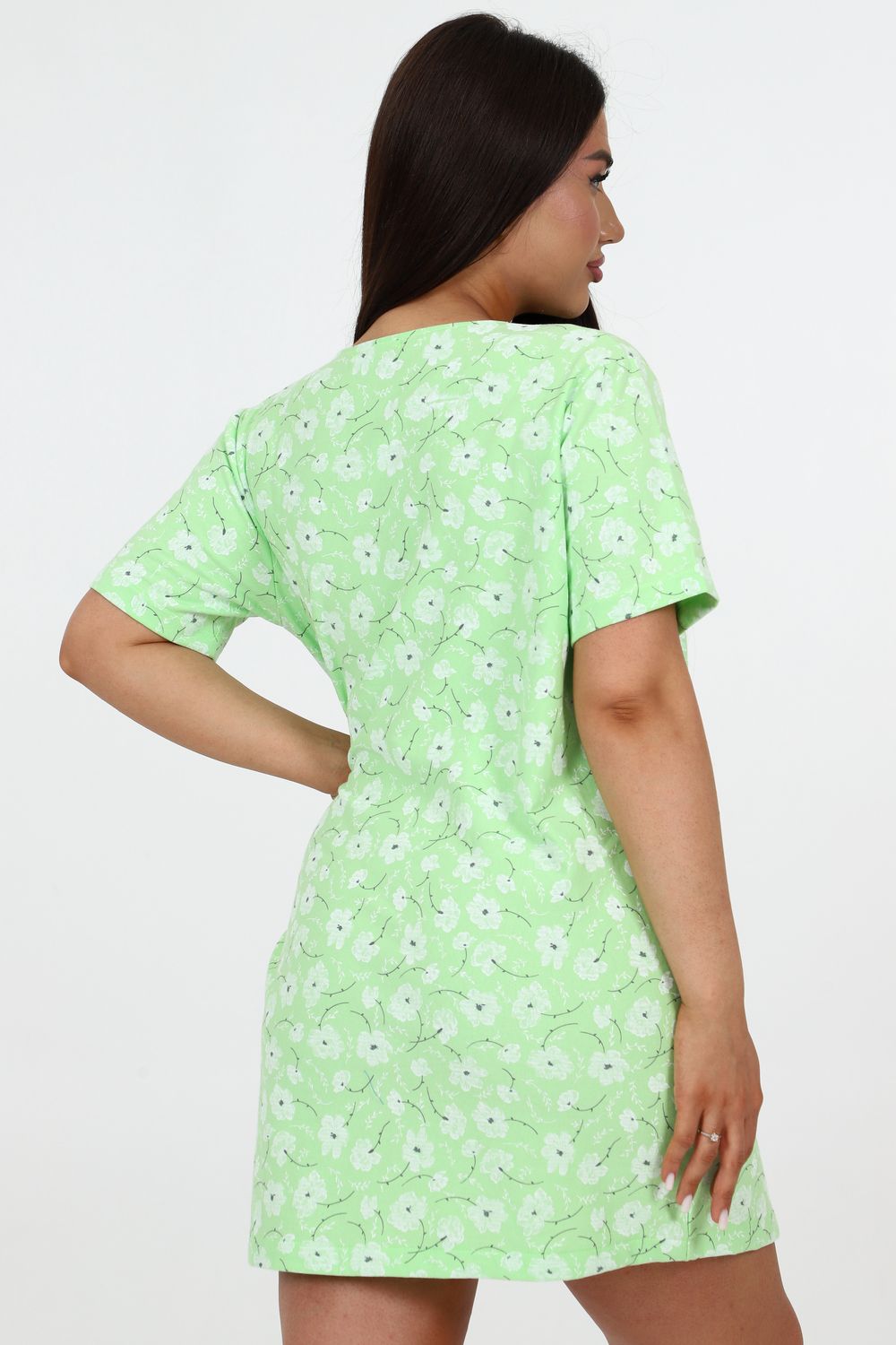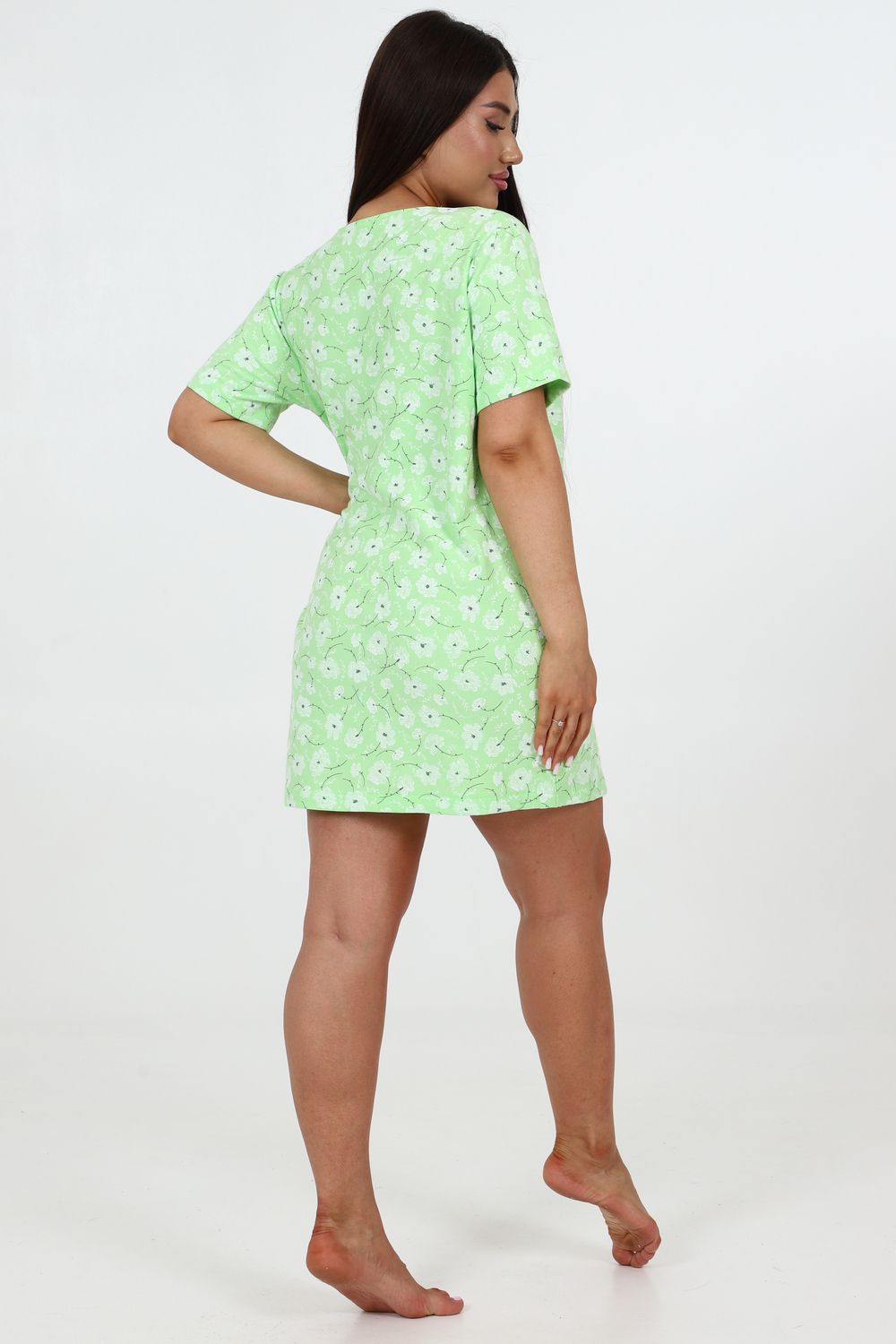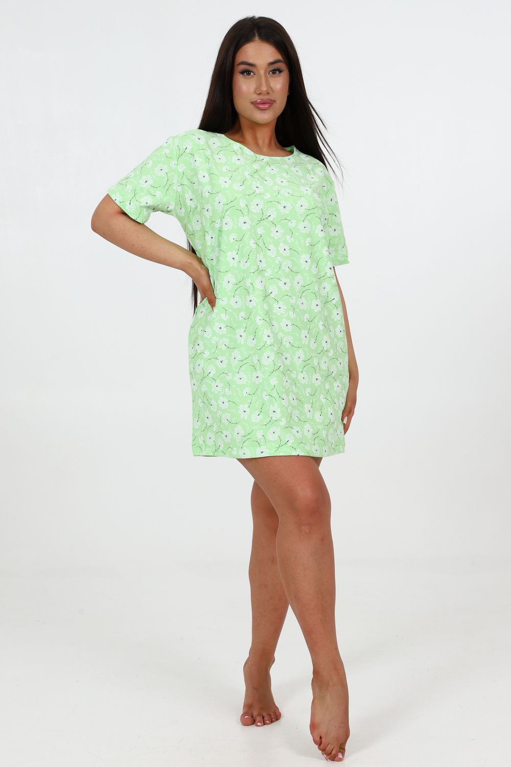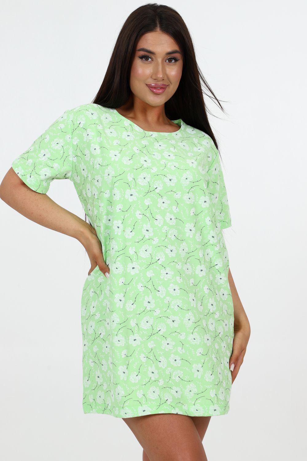 Домашняя женская туника свободного кроя. Модель выполнена из ткани футер с небольшим начесом, который придает мягкость внутренней стороне. Легкая и удобная для повседневной носки, прямая и удлиненная.