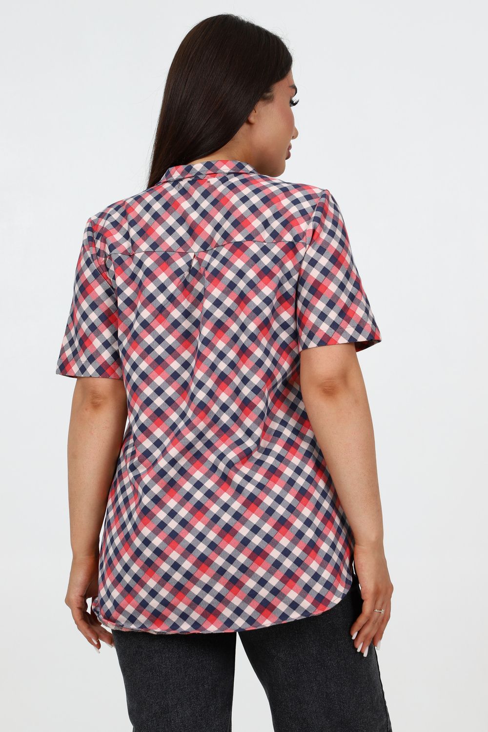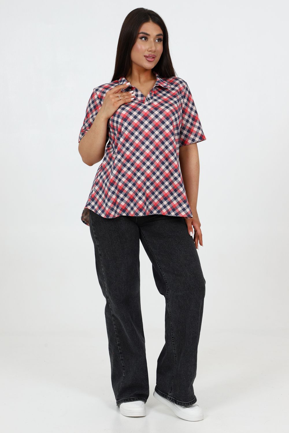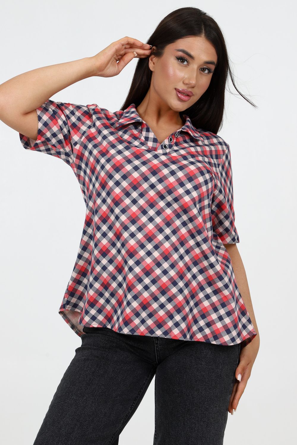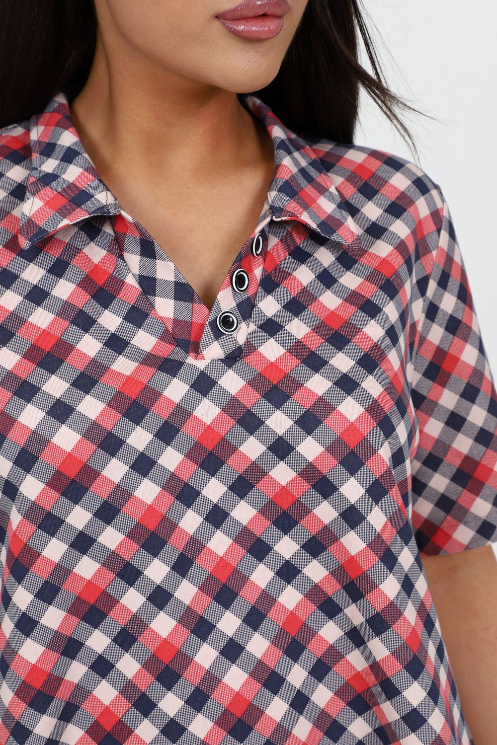 Женская туника свободного кроя. Изделие имеет воротник рубашечного типа, с планками, которые декорированы пуговицами, на задней полочке складка. Удобная простая на каждый день.
