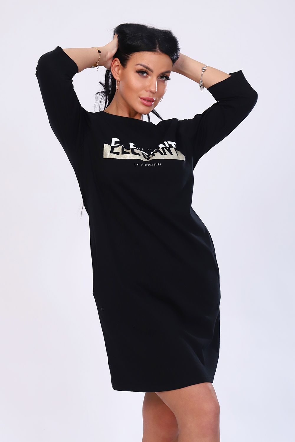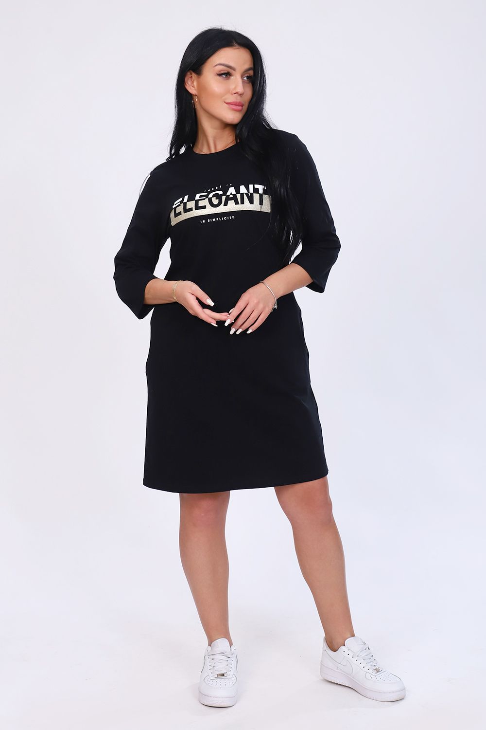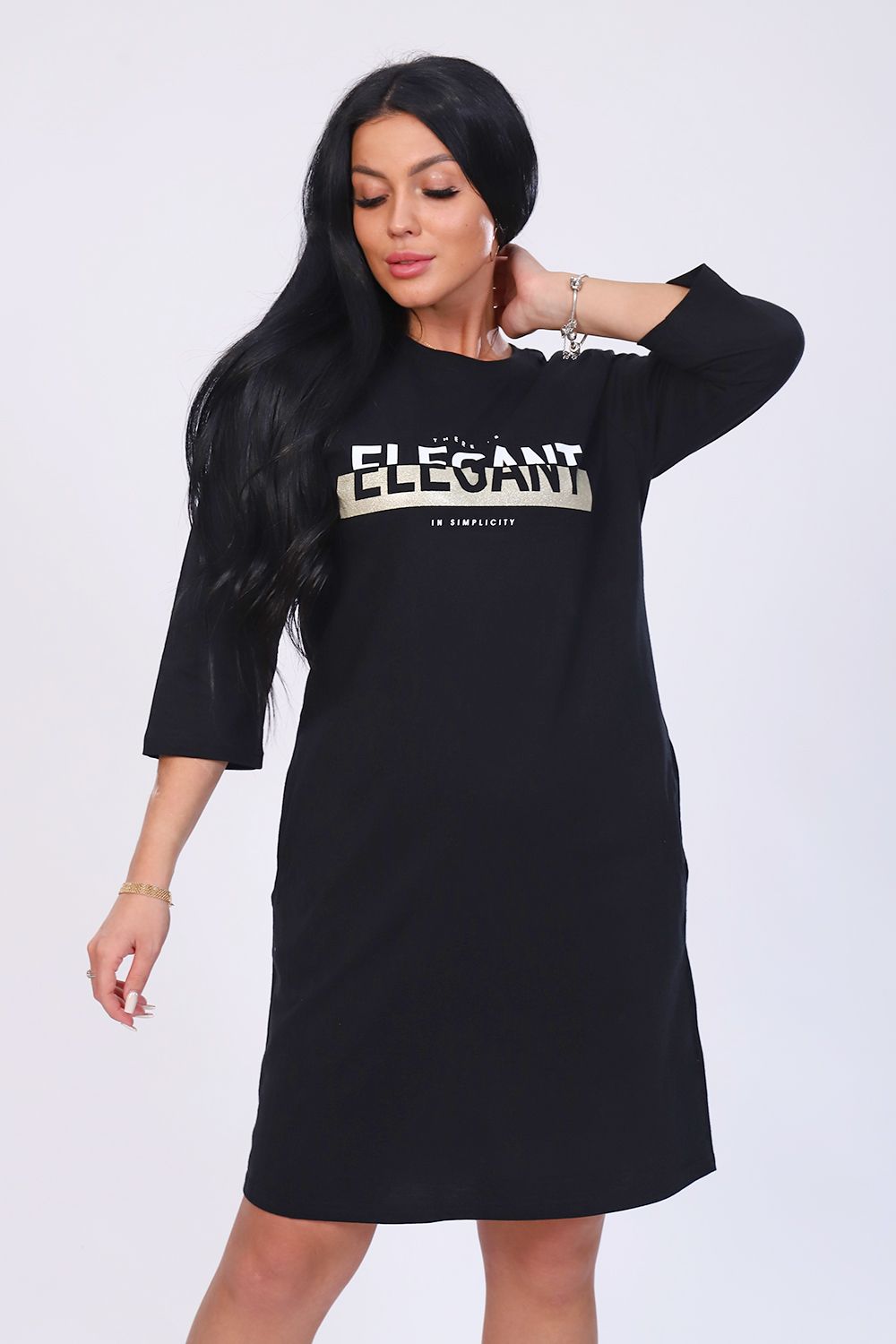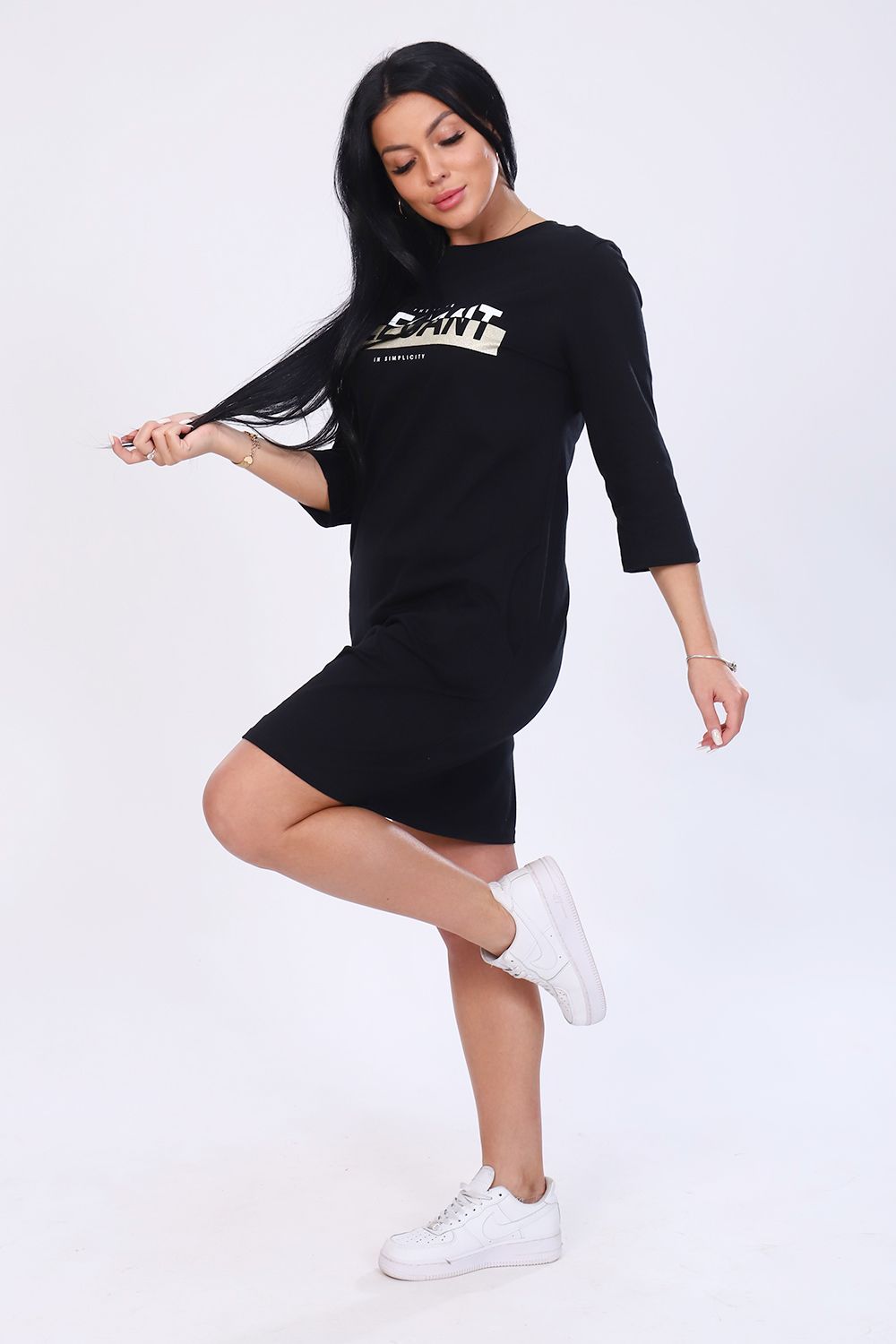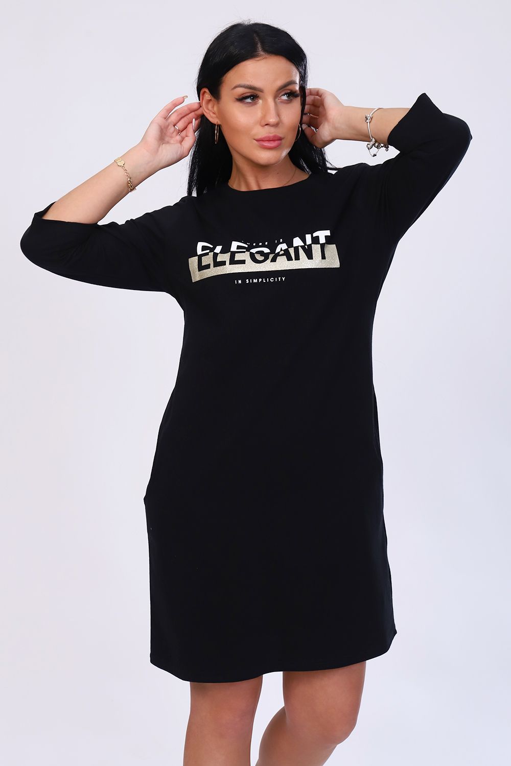 Молодежная туника из кулирки 100% хлопок. Туника полуприлегающего силуэта длиной до колен, рукав 3/4, вырез горловины круглый, два кармана. Дизайн туники дополнен стильным, элегантным принтом.