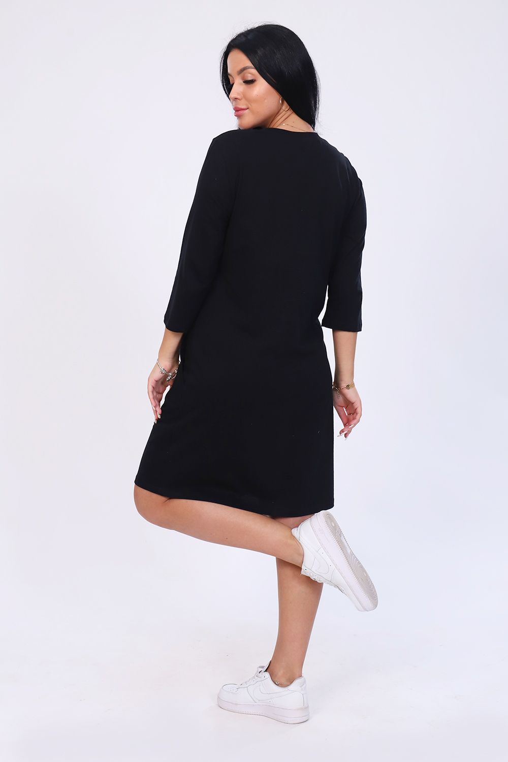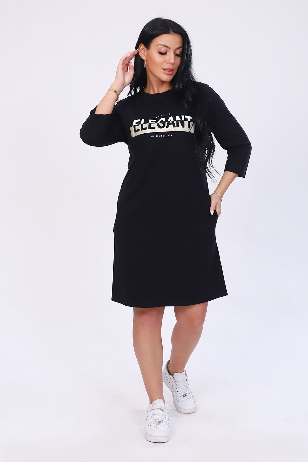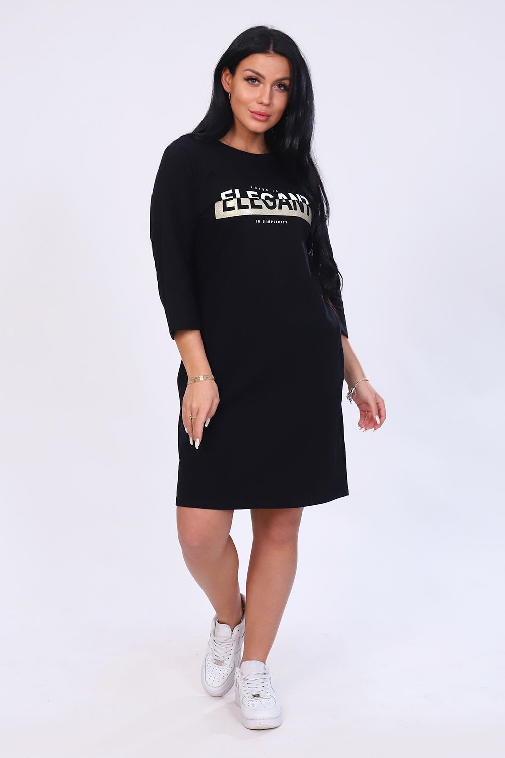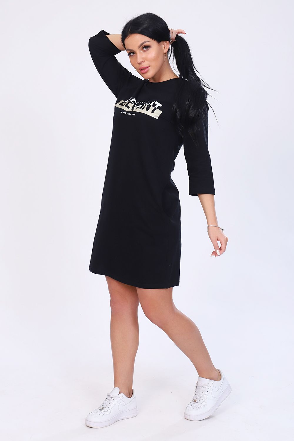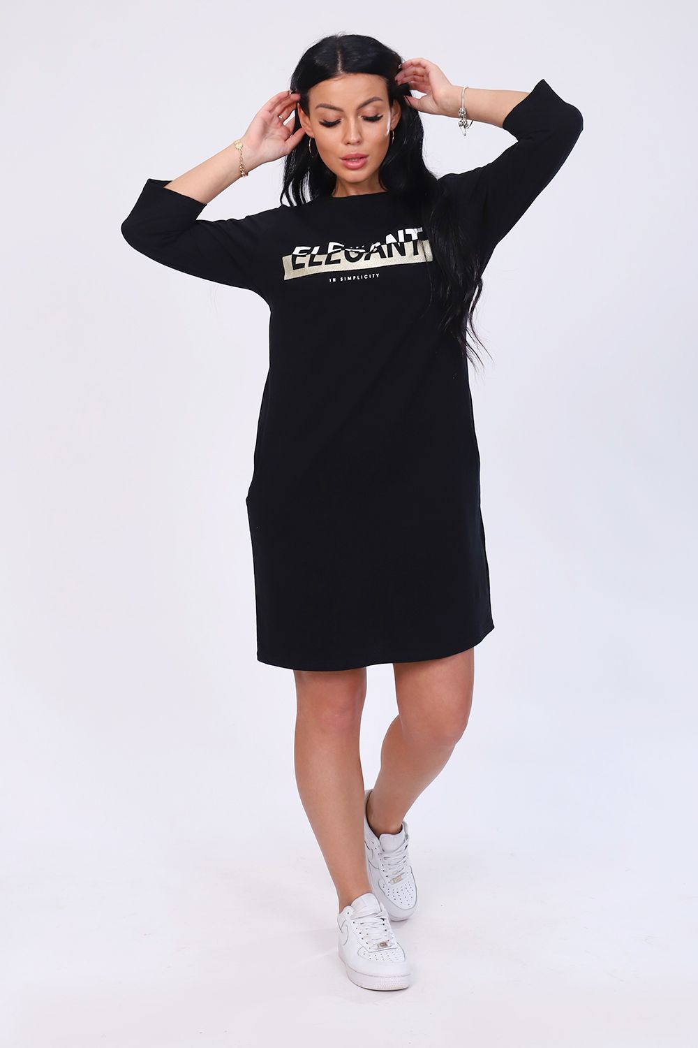 Молодежная туника из кулирки 100% хлопок. Туника полуприлегающего силуэта длиной до колен, рукав 3/4, вырез горловины круглый, два кармана. Дизайн туники дополнен стильным, элегантным принтом.