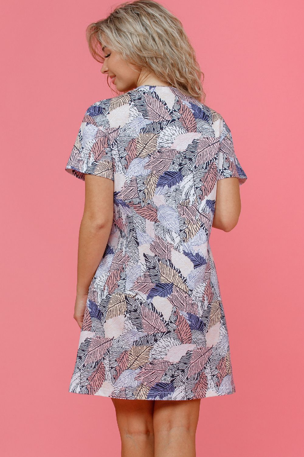 Туника ориганльного кроя, рукава короткие, крупный принт на полочке, длина выше колена (на фото девушка ростом 165 см).