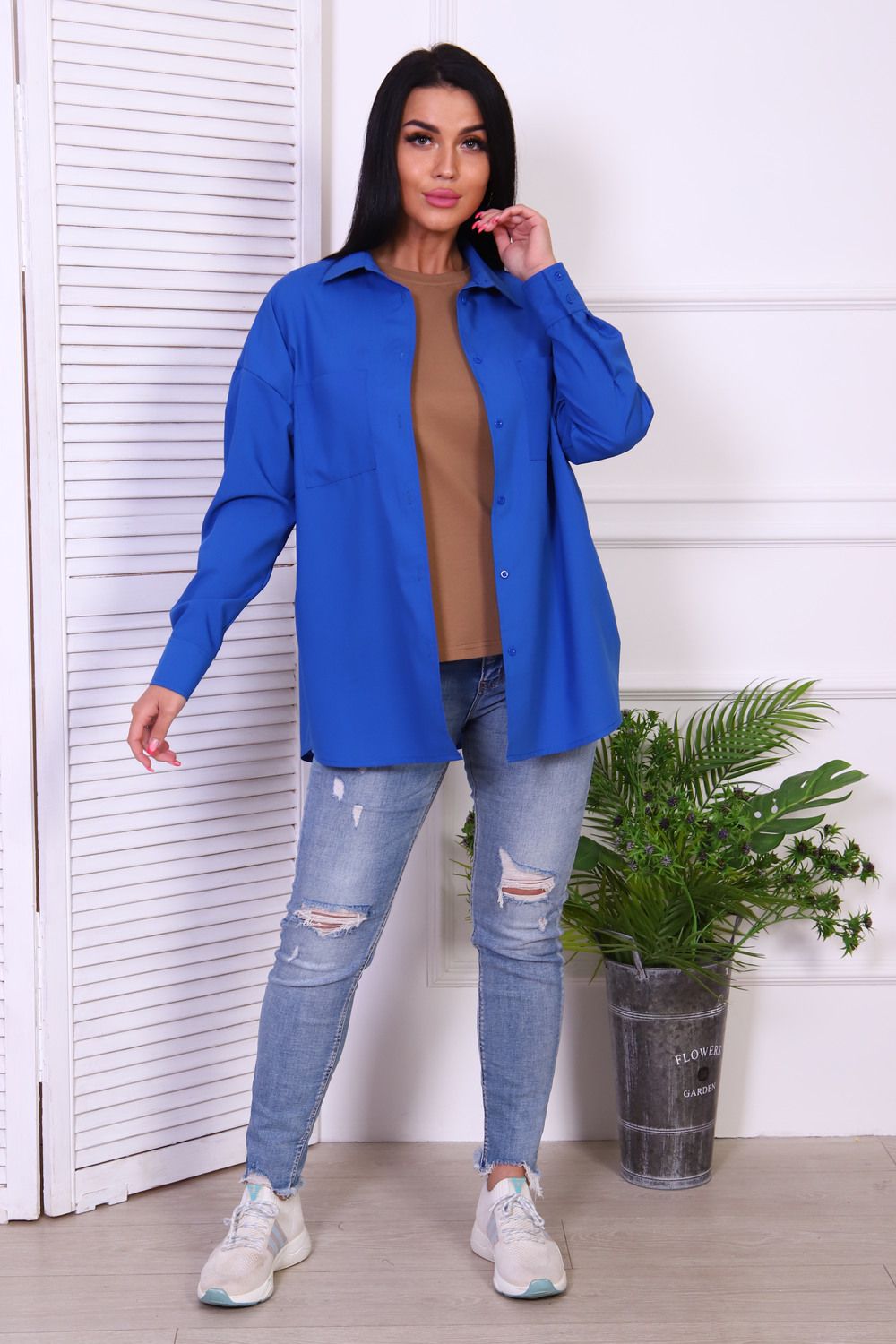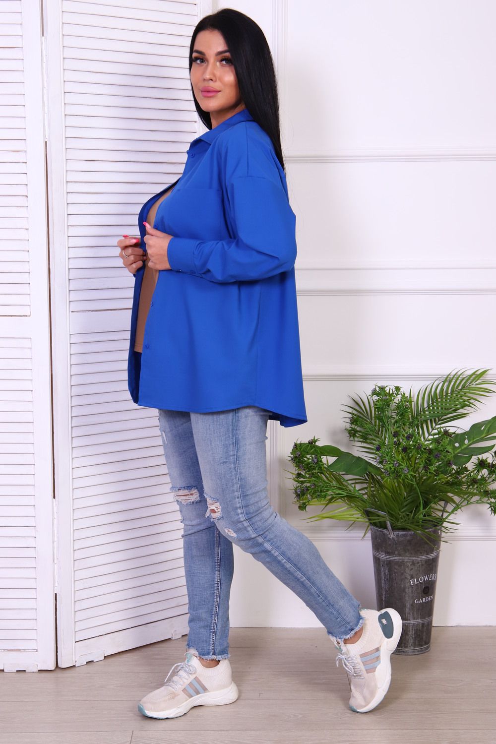Туника рубашечного кроя, оверсайз, с длинным рукавом. Фигурный низ, застегивается на пуговицы, два нагрудных кармана.