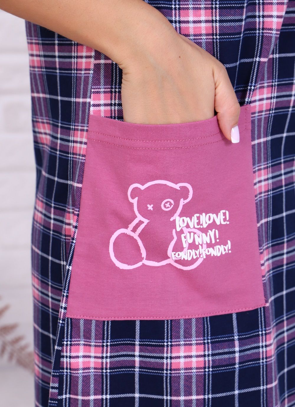 Туника в клетку, женская, с коротким рукавом, с карманом с принтом. Туника комфортная и мягкая на ощупь выполнена из трикотажного полотна, 100% хлопок. Модель в модной стильной расцветке. Размерная сетка включает большие размеры.