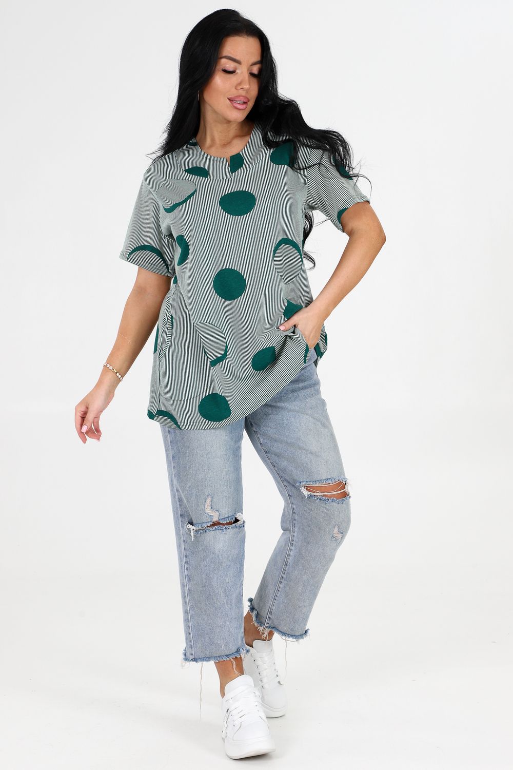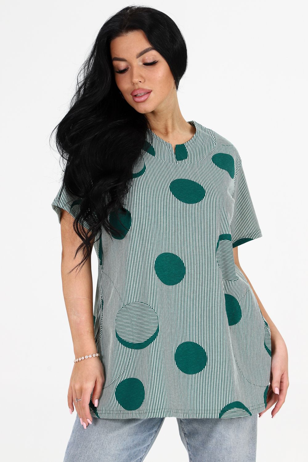 Туника удлинённая с коротким рукавом. Туника будет хорошо смотреться на разных типах женской фигуры и подойдет для женщин всех возрастов. Изделие выполнено из 100% хлопка, благодаря чему модель абсолютно комфортна в носке, мягкая и приятна к телу, что прекрасно подойдет для дома, дачи и отдыха.