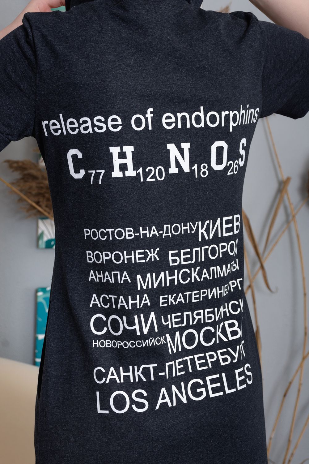 Молодежная туника из кулирки с капюшоном, с разрезом по бокам, печать на спине и на передней части, короткие рукава с манжетами