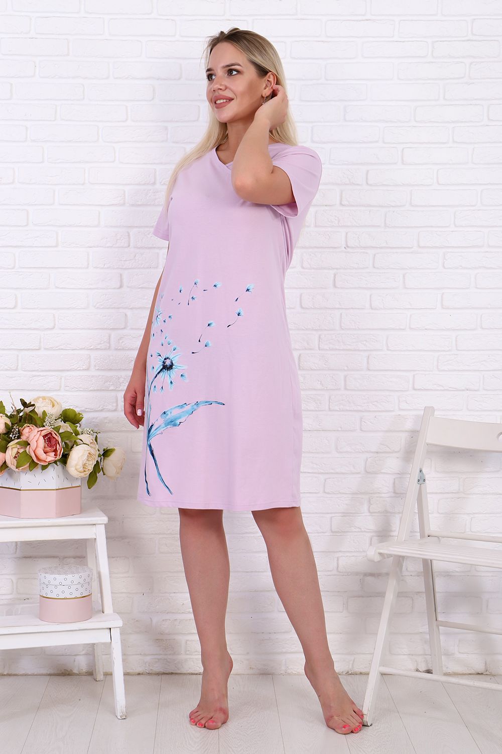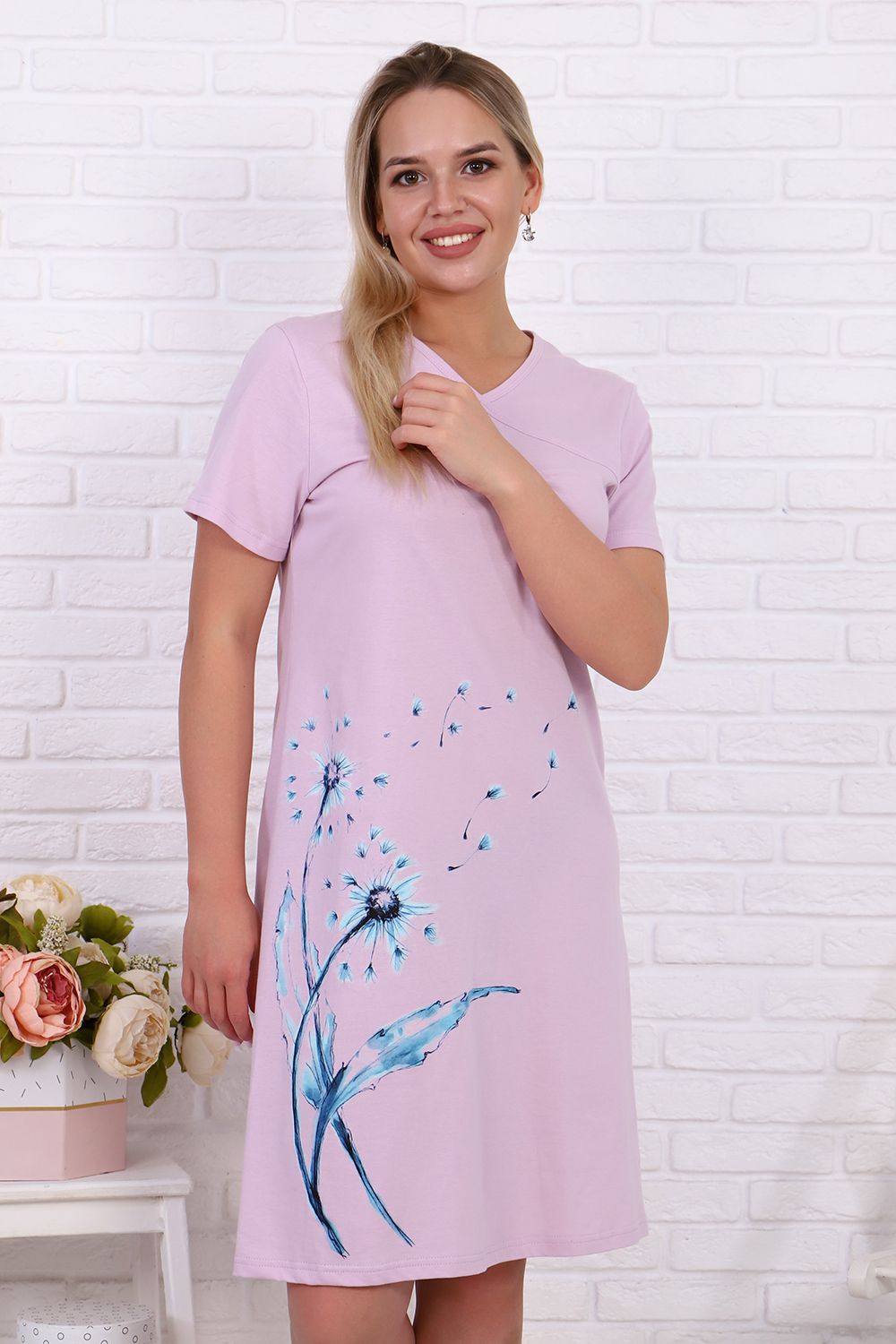 Туника женская из хлопкового трикотажного полотна со стильным принтом на полочке в виде одуванчиков. Рукава короткие на подгибке, горловина обработана кантом, отлично подойдет как для повседневной носки, так и для отдыха дома