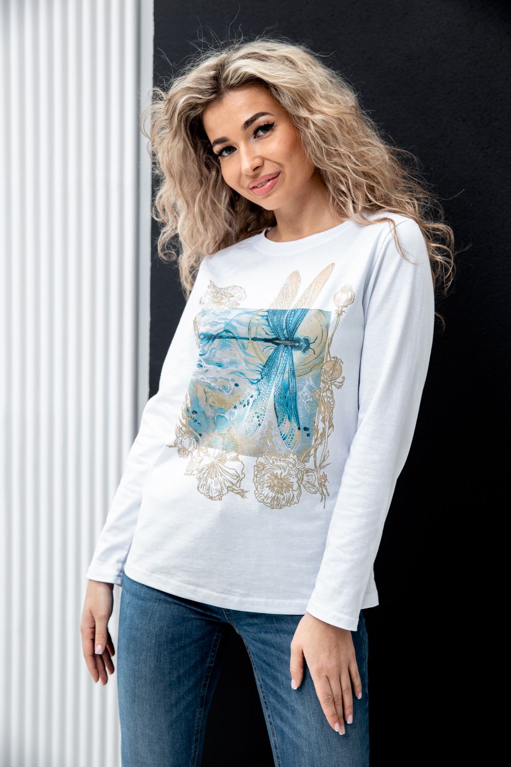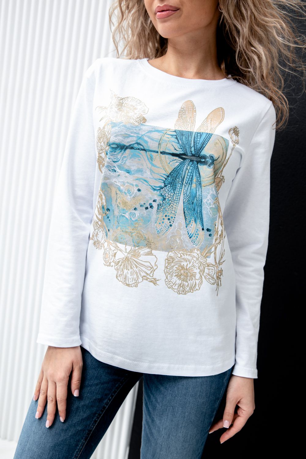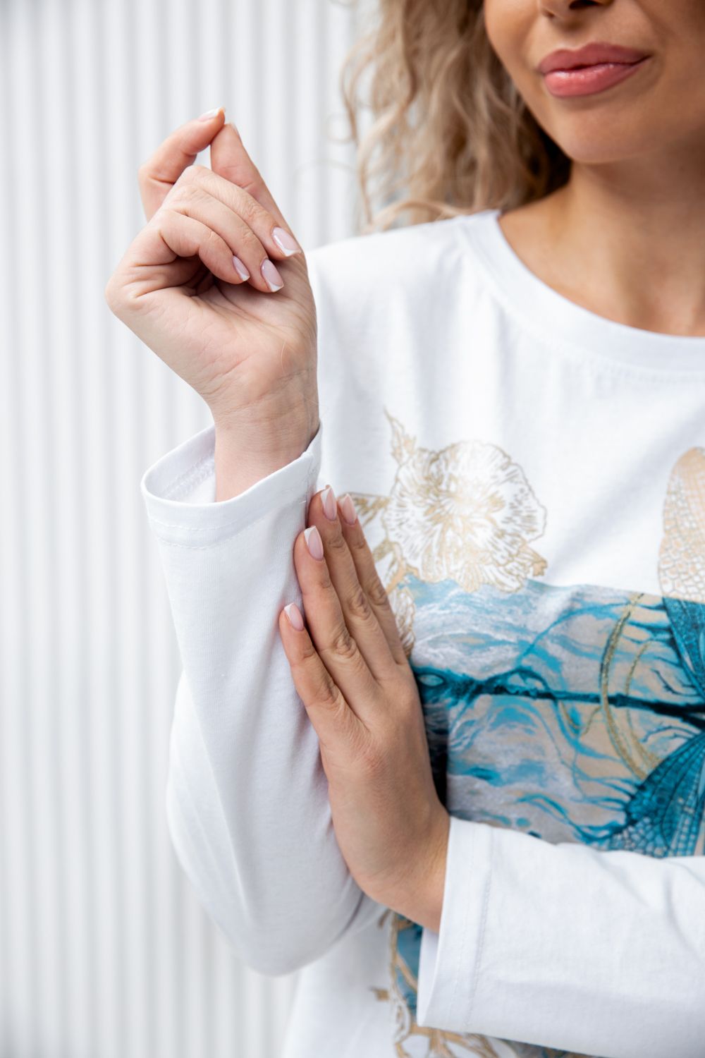 Туника женская полуприлегающего силуэта с длинными рукавами и ярким принтом.