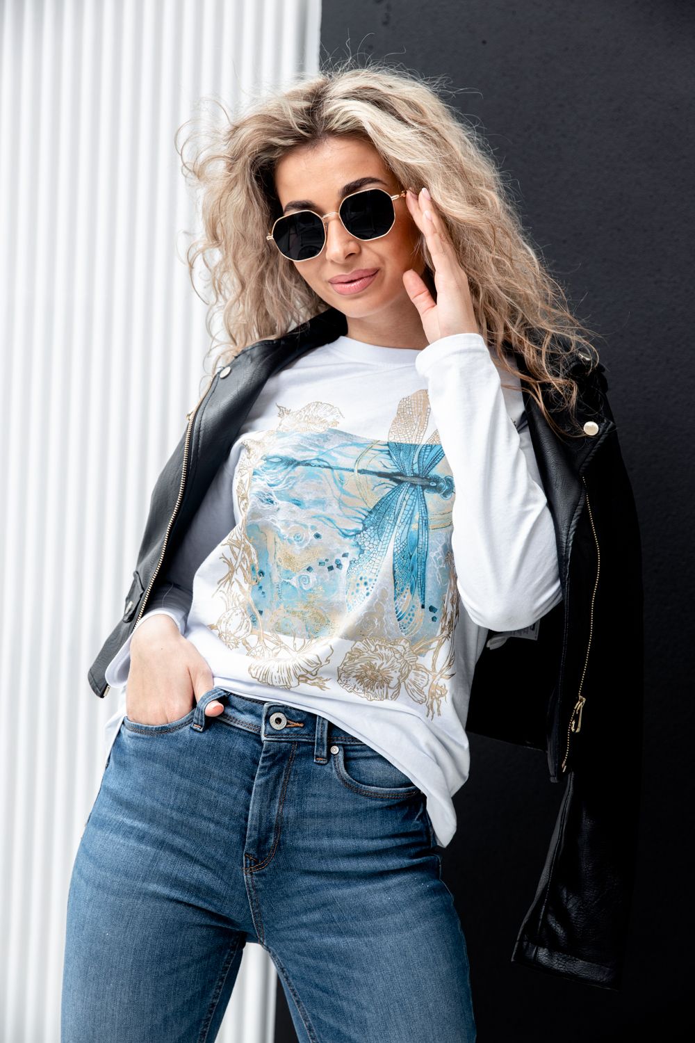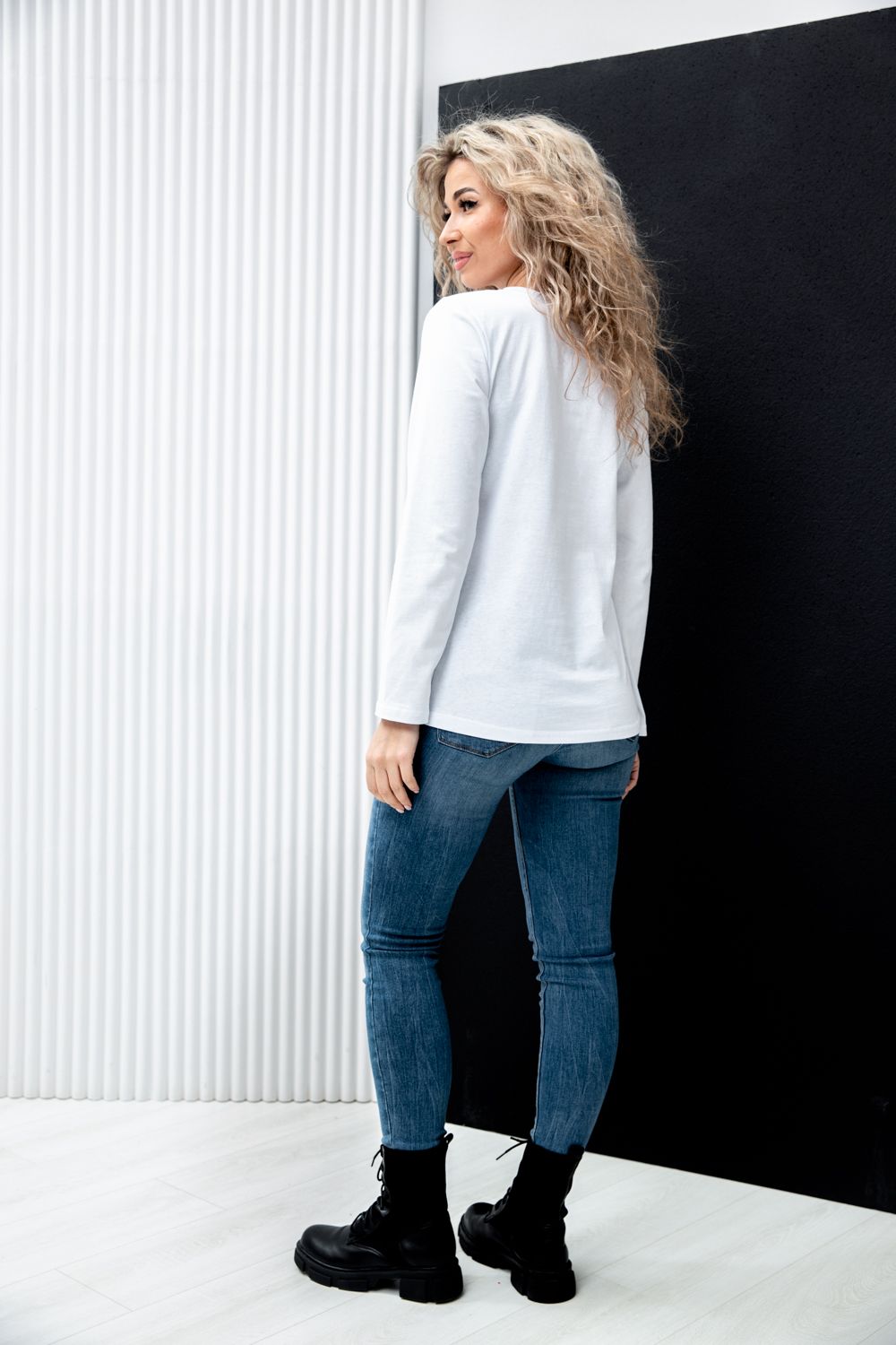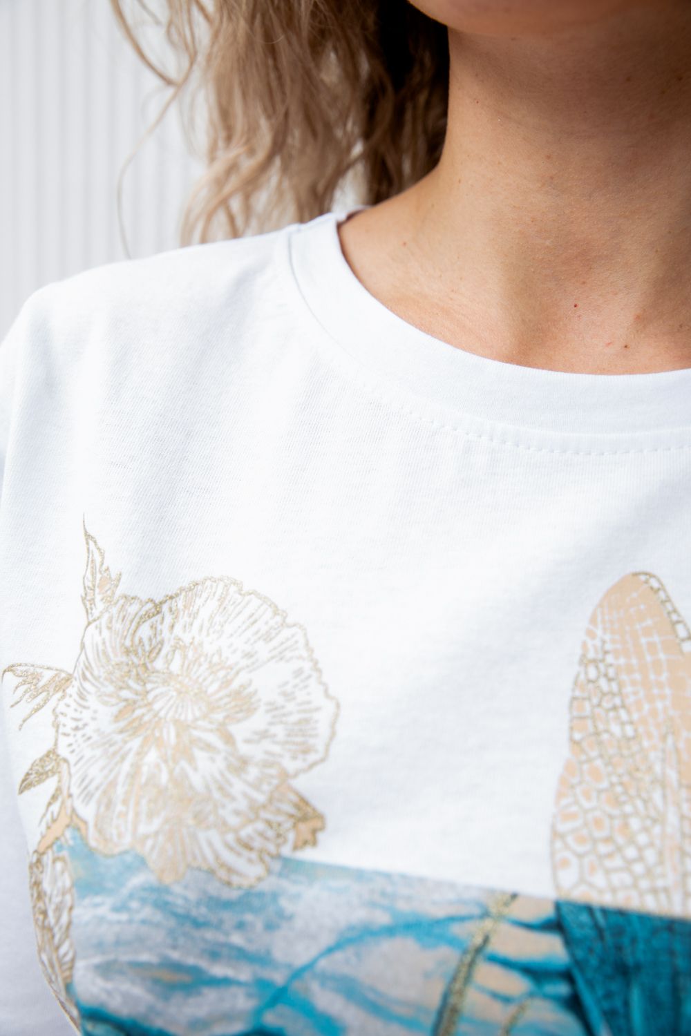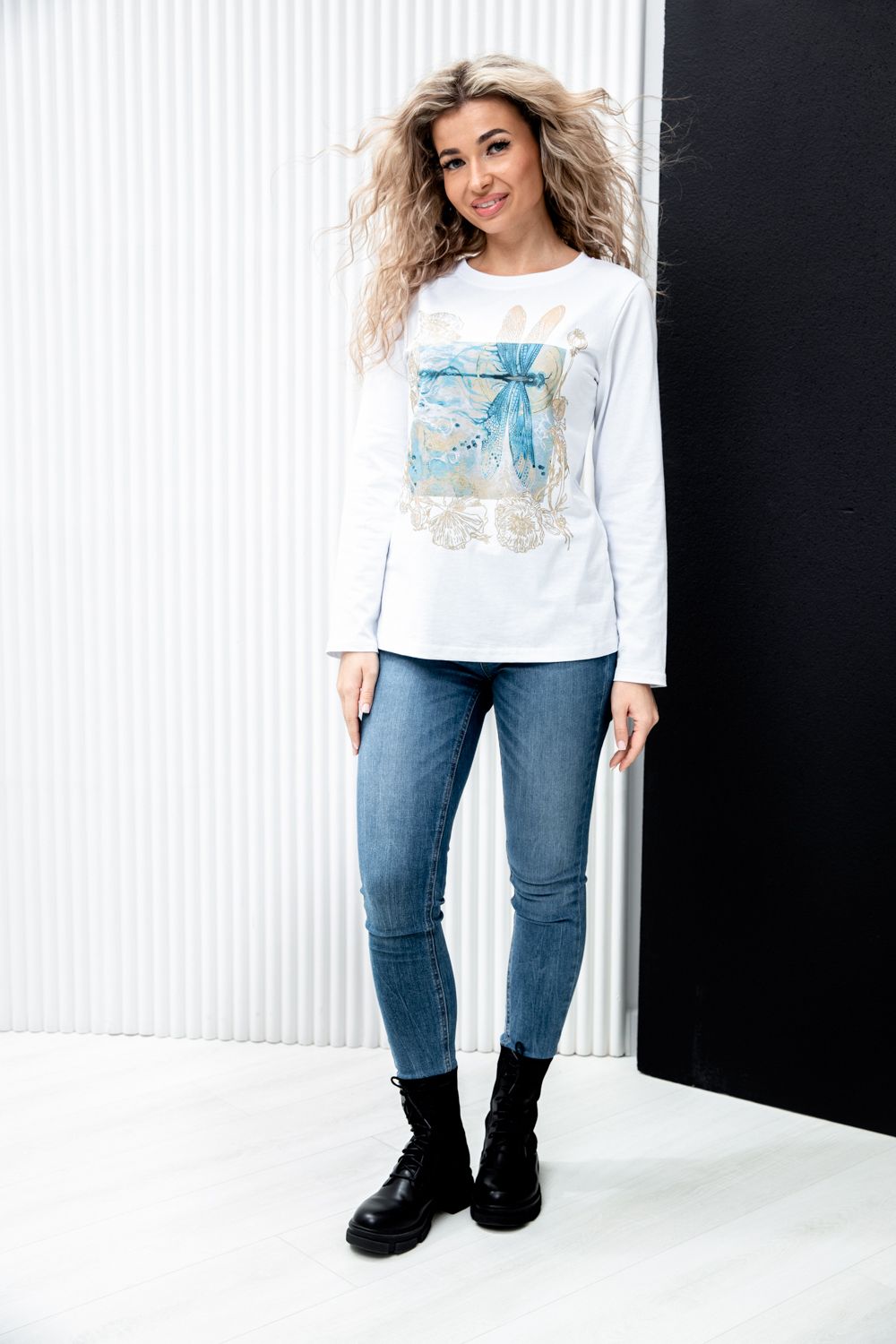 Туника женская полуприлегающего силуэта с длинными рукавами и ярким принтом.