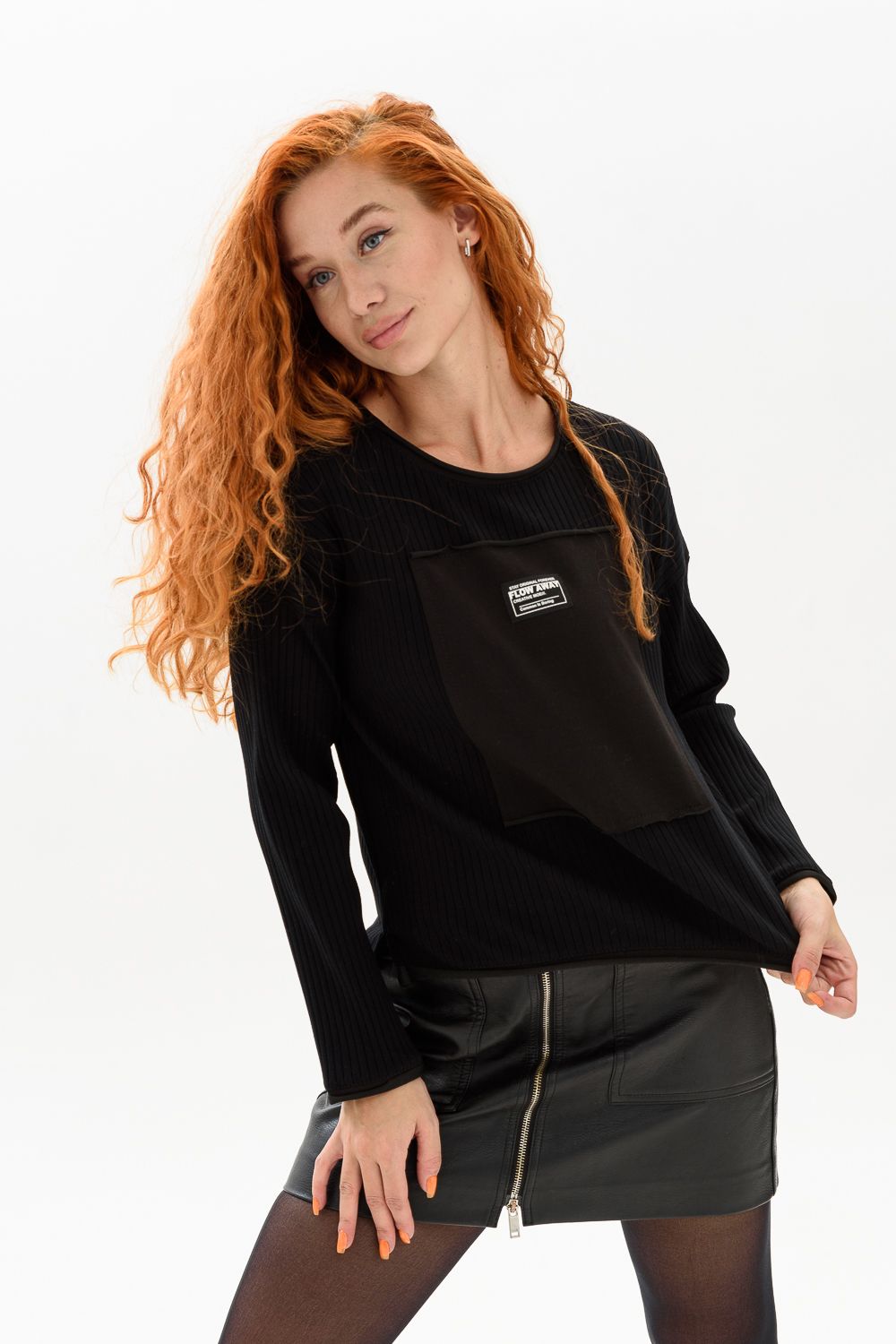 Туника женская свободного кроя с длинным рукавом.