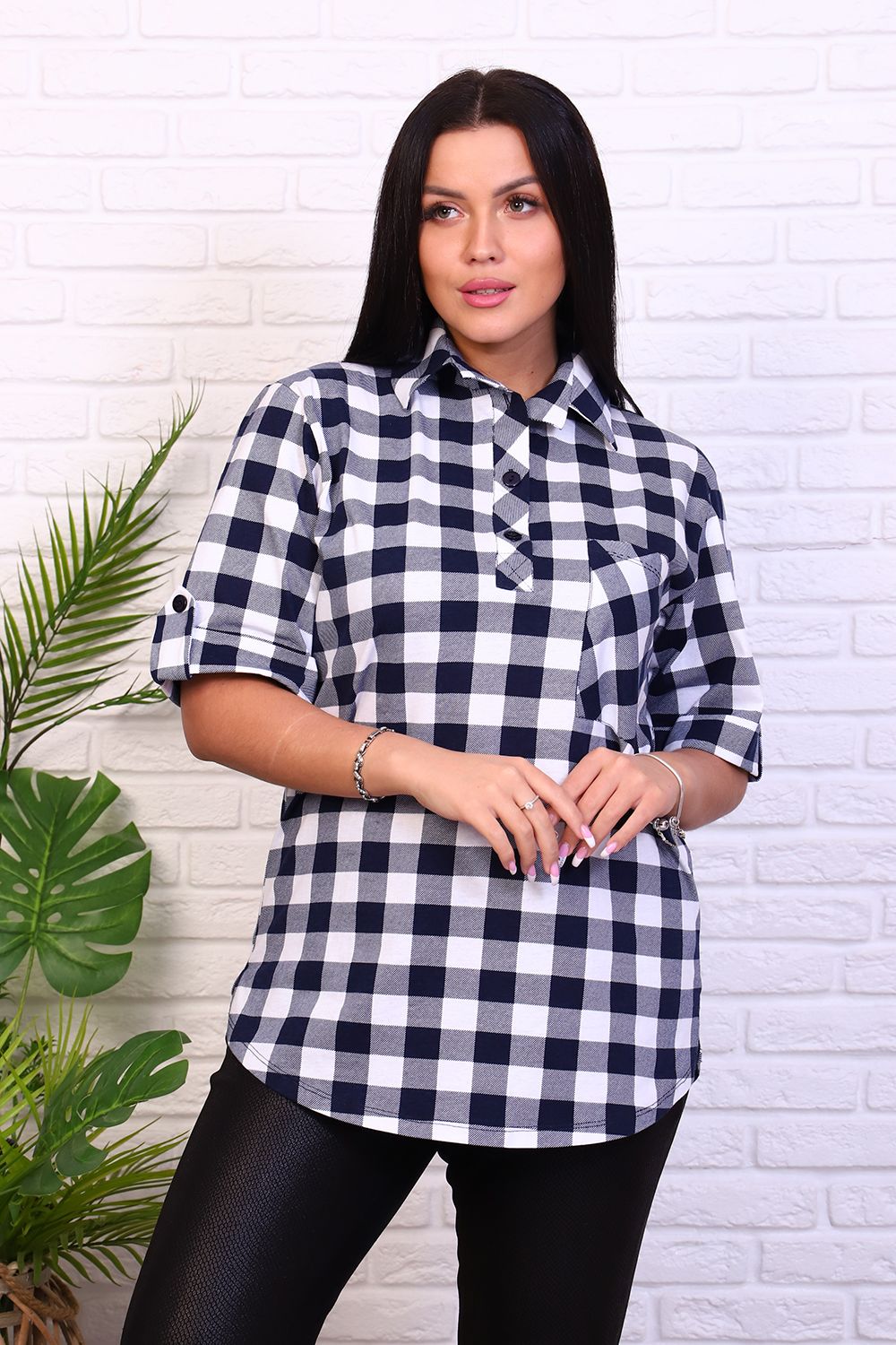 Туника клетка выполнена из ткани кулирки хлопок 100%. На полочке планка с пуговицами, карман, воротник рубашечный со стойкой, рукава на манжете с патой. Внизу легкое закругление, по бокам разрезы, на спинке кокетка. Туника подойдет для отдыха, дома и прогулок.