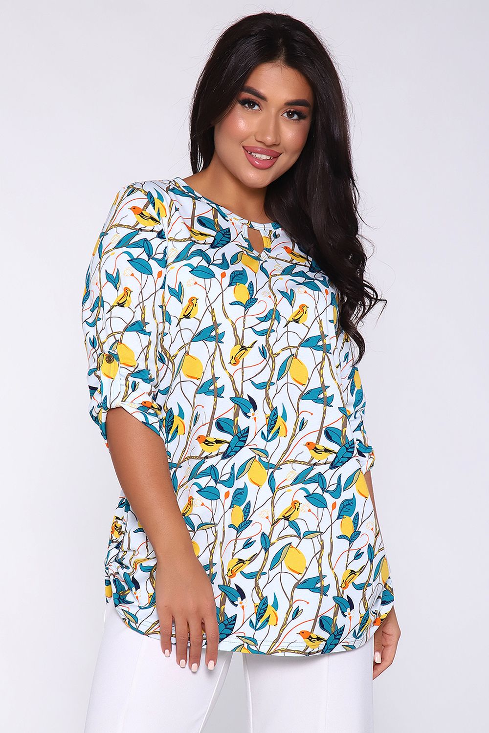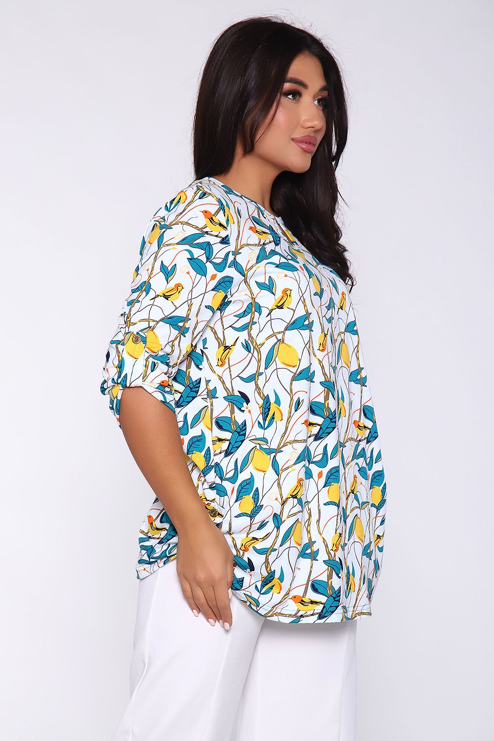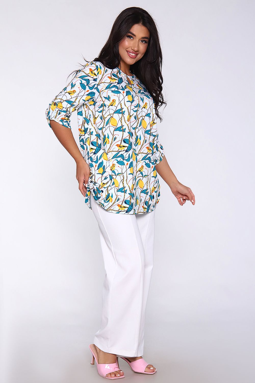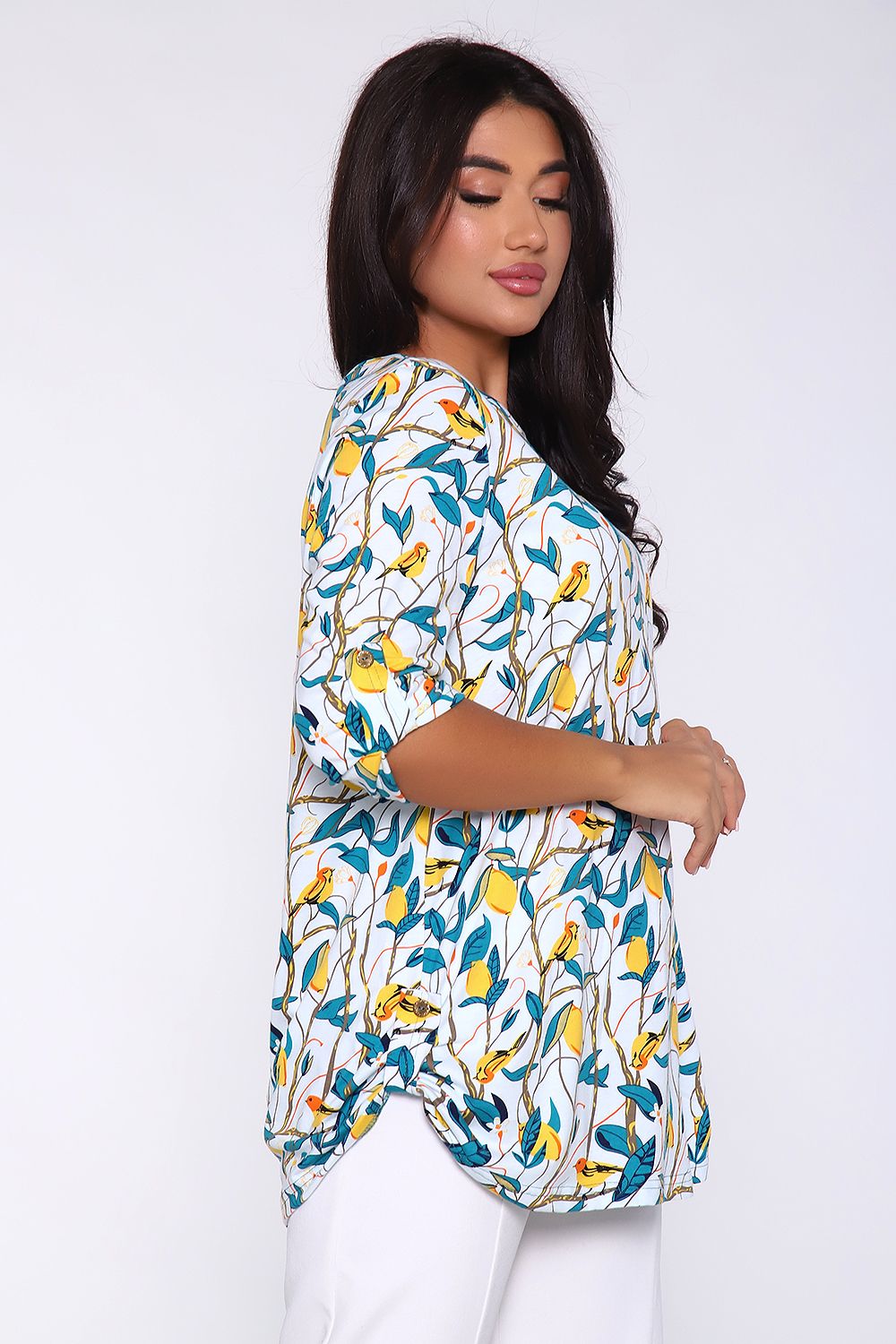 Туника женская Туника-рубашка имеет округлый вырез с фигурной капелькой. Рукава 3/4 и низ подогнуты на плоскошовной машине, а так жен имеют декоративный элемент с пуговицей.Блуза женская подходит для беременных, для полных, для женщин больших размеров. Туника-рубашка подойдет для лета, весны, осени, зимы