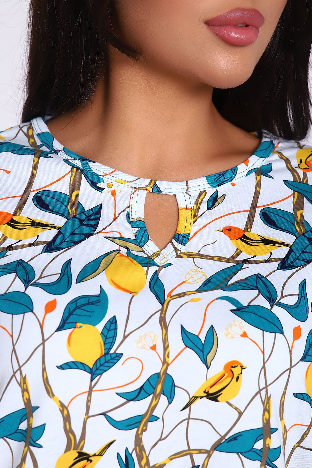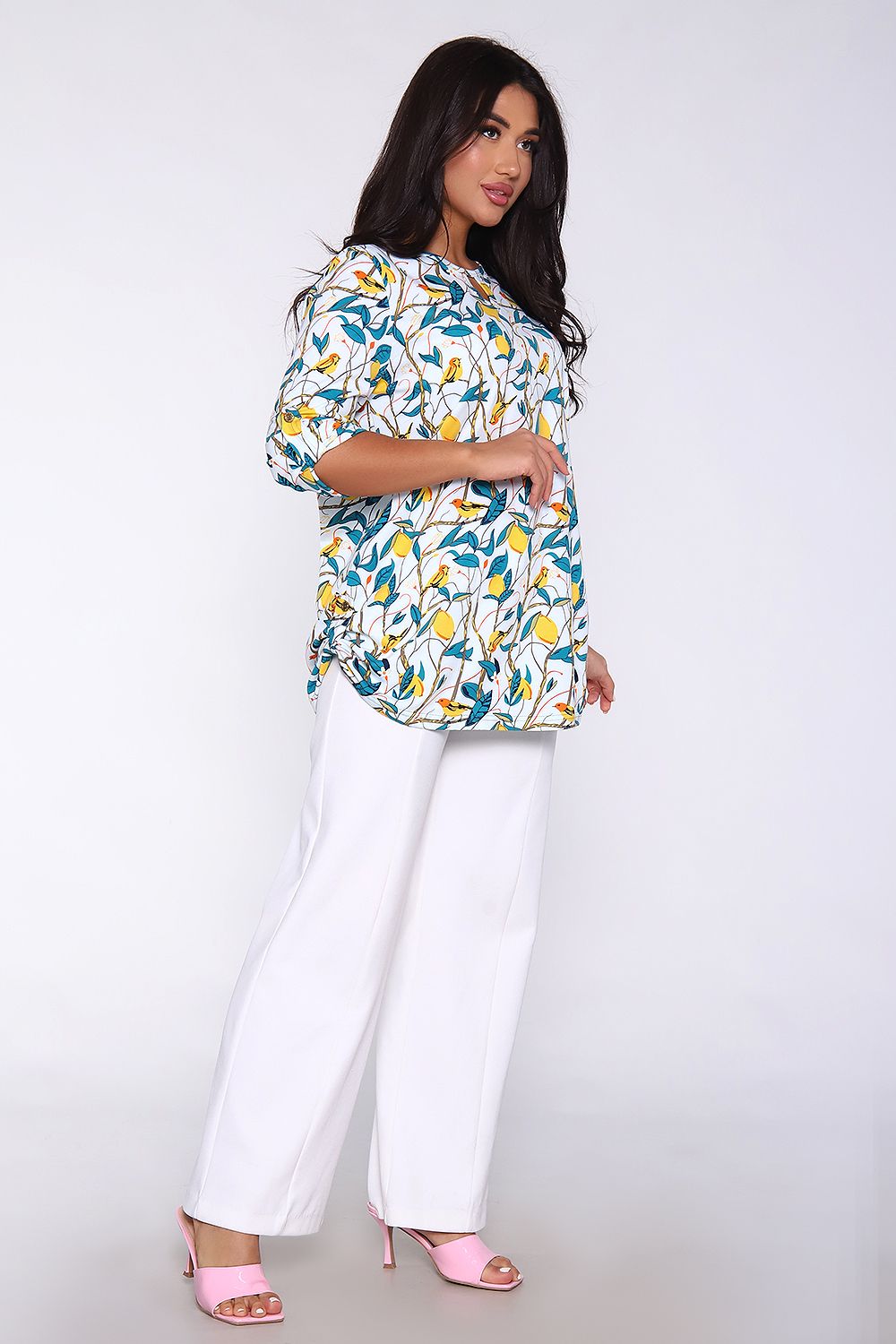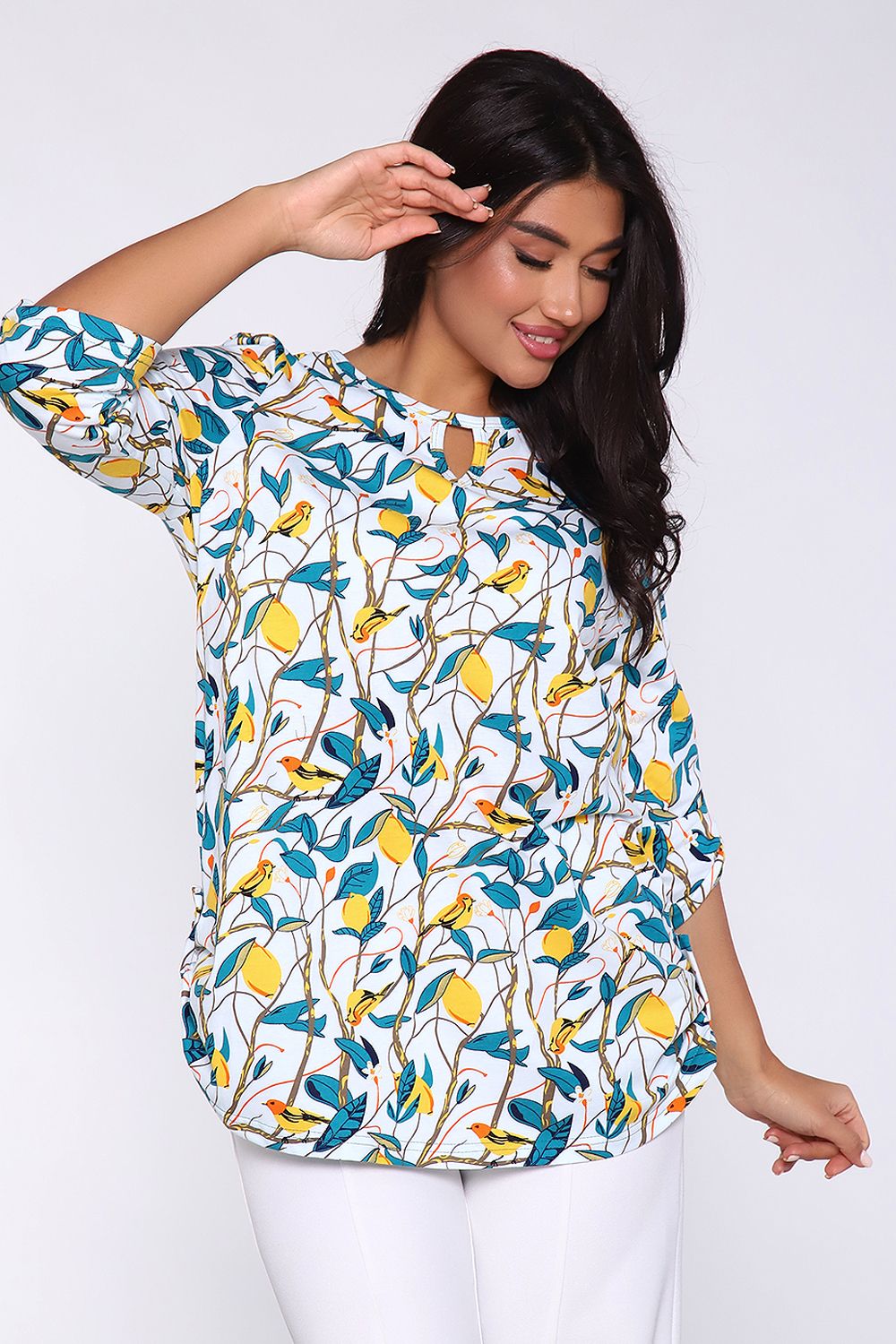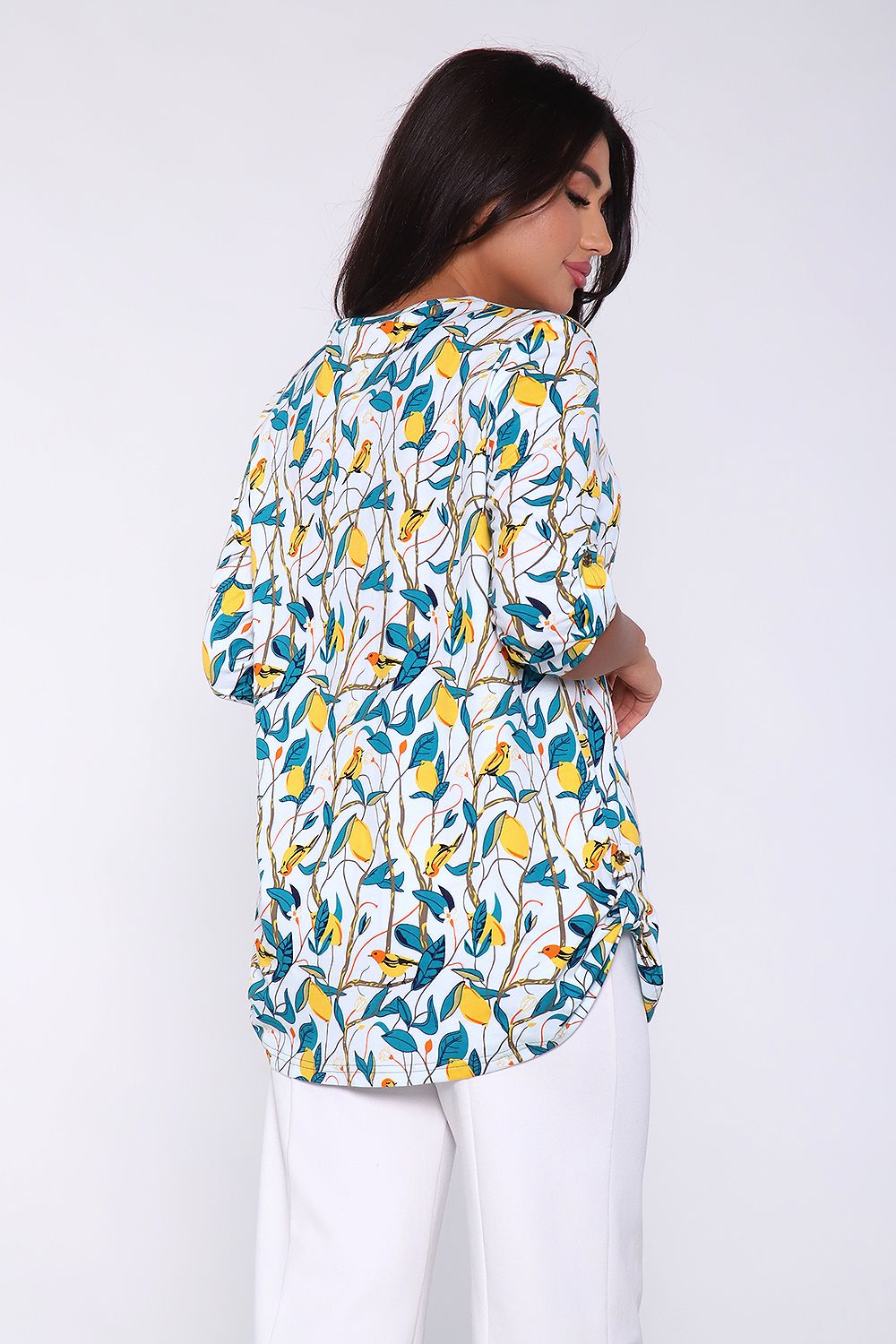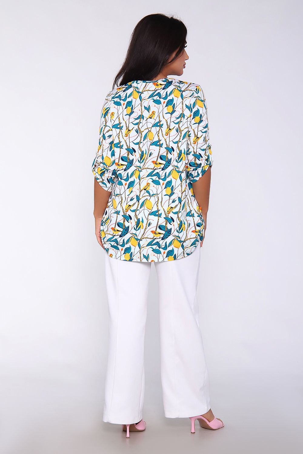 Туника женская Туника-рубашка имеет округлый вырез с фигурной капелькой. Рукава 3/4 и низ подогнуты на плоскошовной машине, а так жен имеют декоративный элемент с пуговицей.Блуза женская подходит для беременных, для полных, для женщин больших размеров. Туника-рубашка подойдет для лета, весны, осени, зимы