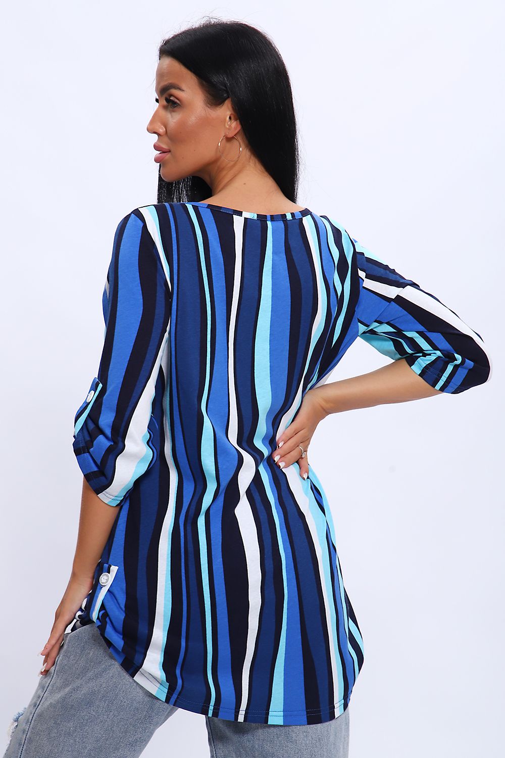 Женская универсальная туника с рукавом 3/4 с фигурным вырезом с окантовкой из основной ткани. Длина рукава регулируется патой на пуговице. Такая же регулировка находится по бокам изделия. Можно носить как с опущенной патой, так и собранной на декоративную пуговицу. Низ изделия закруглен, перед немного укорочен. Туника отлично подойдет как для уличного, так и домашнего ношения. Прекрасно сочетается с джинсами на прогулку, с юбками и брюками в офис, с домашними брюками для дома. Большой ассортимент приятных расцветок на любой вкус. Туника прекрасно смотрится на беременных, так как выполнена в свободном стиле. Отличный подарок любимым женщинам!