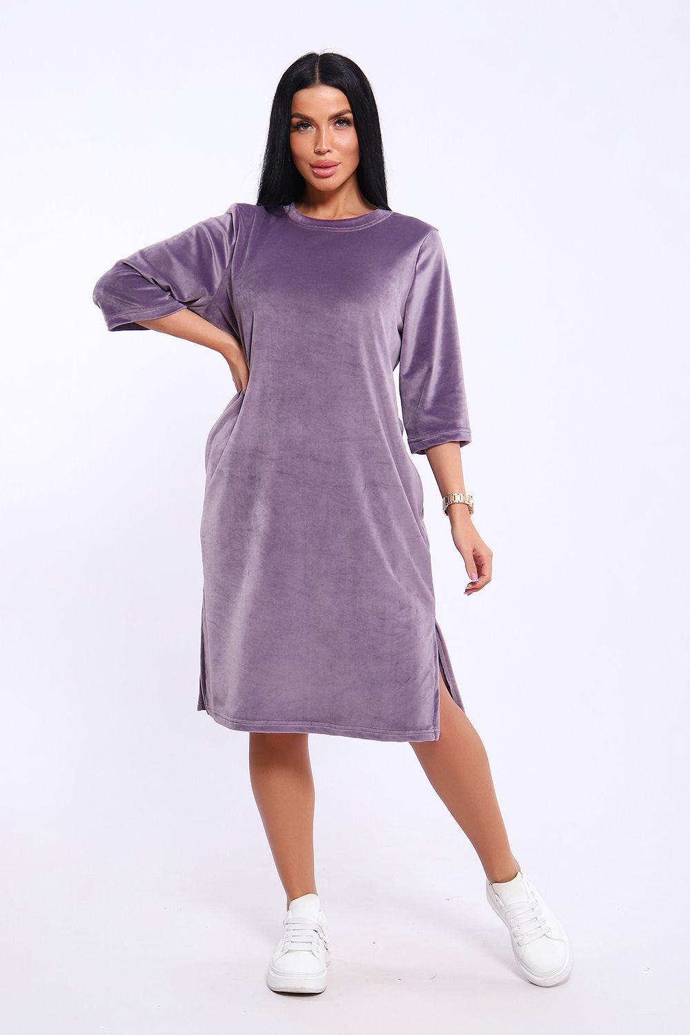 Туника женская мягкая велюровая, полуприлегающего силуэта. Вырез горловины округлой формы, обработан обтачкой из основной ткани. Туника с карманами и разрезами в боковых швах, длина чуть ниже колена. Рукав втачной, длина чуть ниже локтя. Для более облегающего силуэта вы можете взять данную модель на размер меньше. Туника имеет большой размерный ряд.