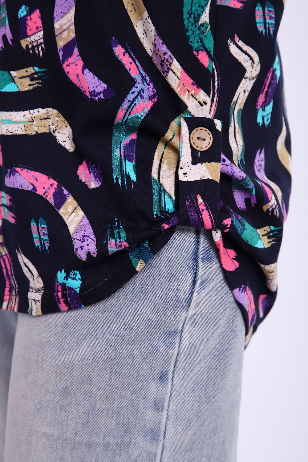 Женская универсальная туника с рукавом 3/4 с фигурным вырезом с окантовкой из основной ткани. Длина рукава регулируется патой на пуговице. Такая же регулировка находится по бокам изделия. Можно носить как с опущенной патой, так и собранной на декоративную пуговицу. Низ изделия закруглен, перед немного укорочен. Туника отлично подойдет как для уличного, так и домашнего ношения. Прекрасно сочетается с джинсами на прогулку, с юбками и брюками в офис, с домашними брюками для дома. Большой ассортимент приятных расцветок на любой вкус. Туника прекрасно смотрится на беременных, так как выполнена в свободном стиле. Отличный подарок любимым женщинам!