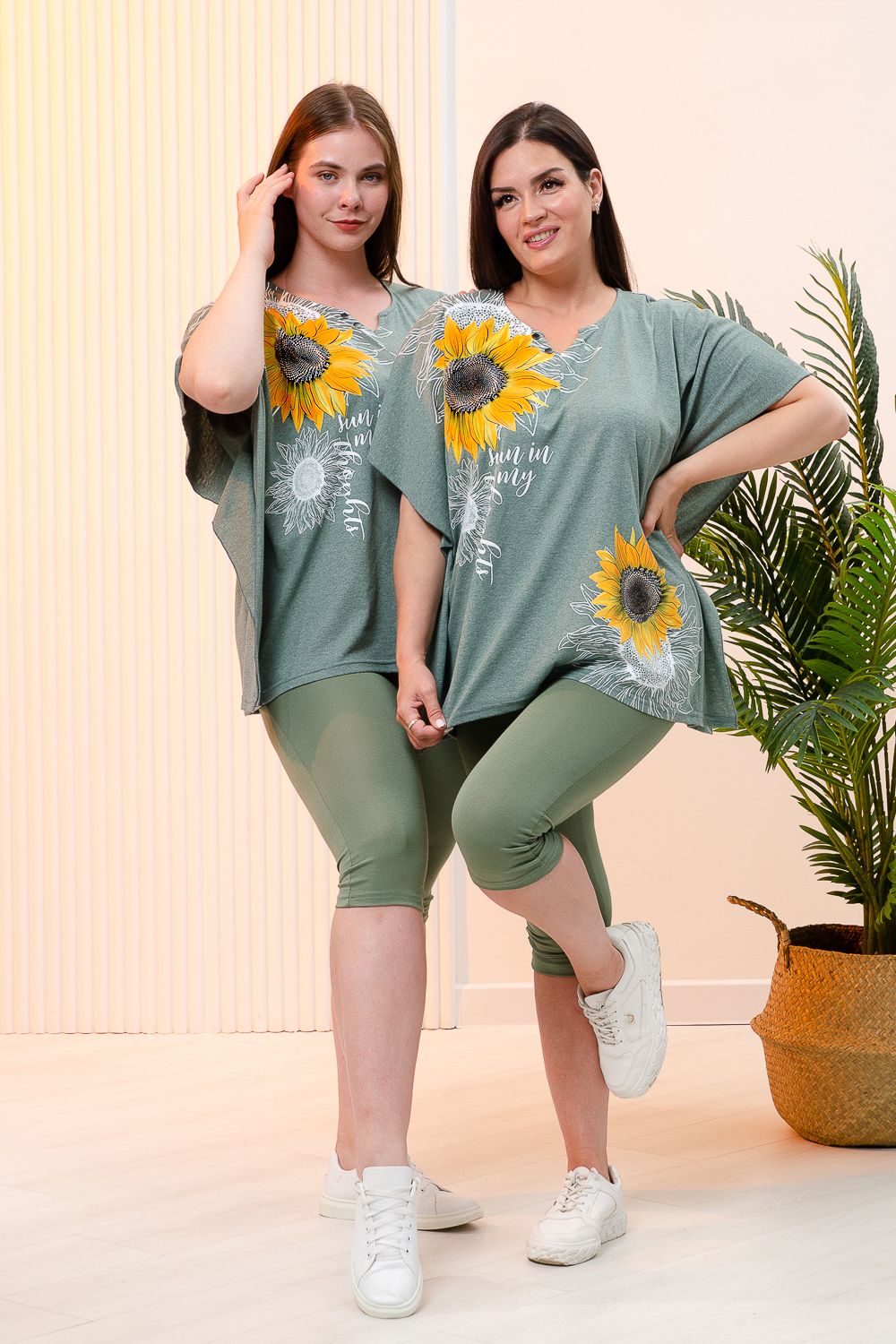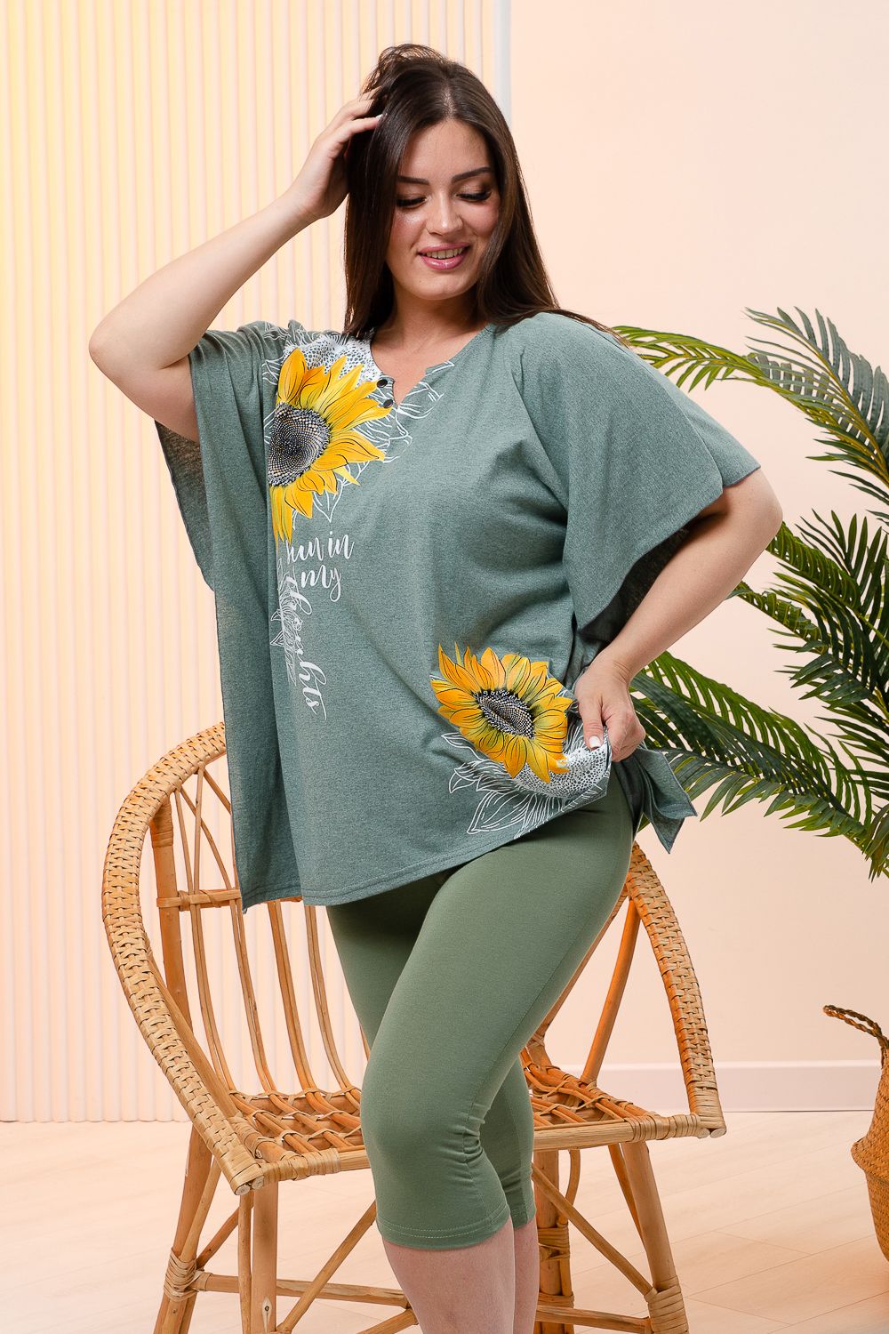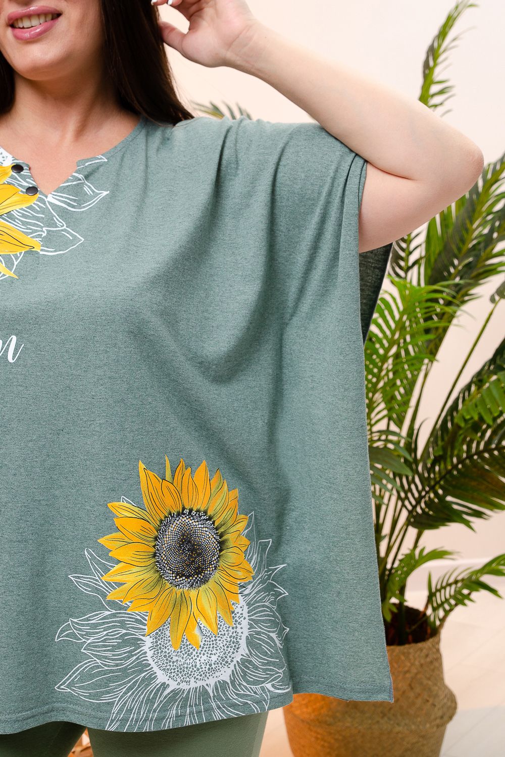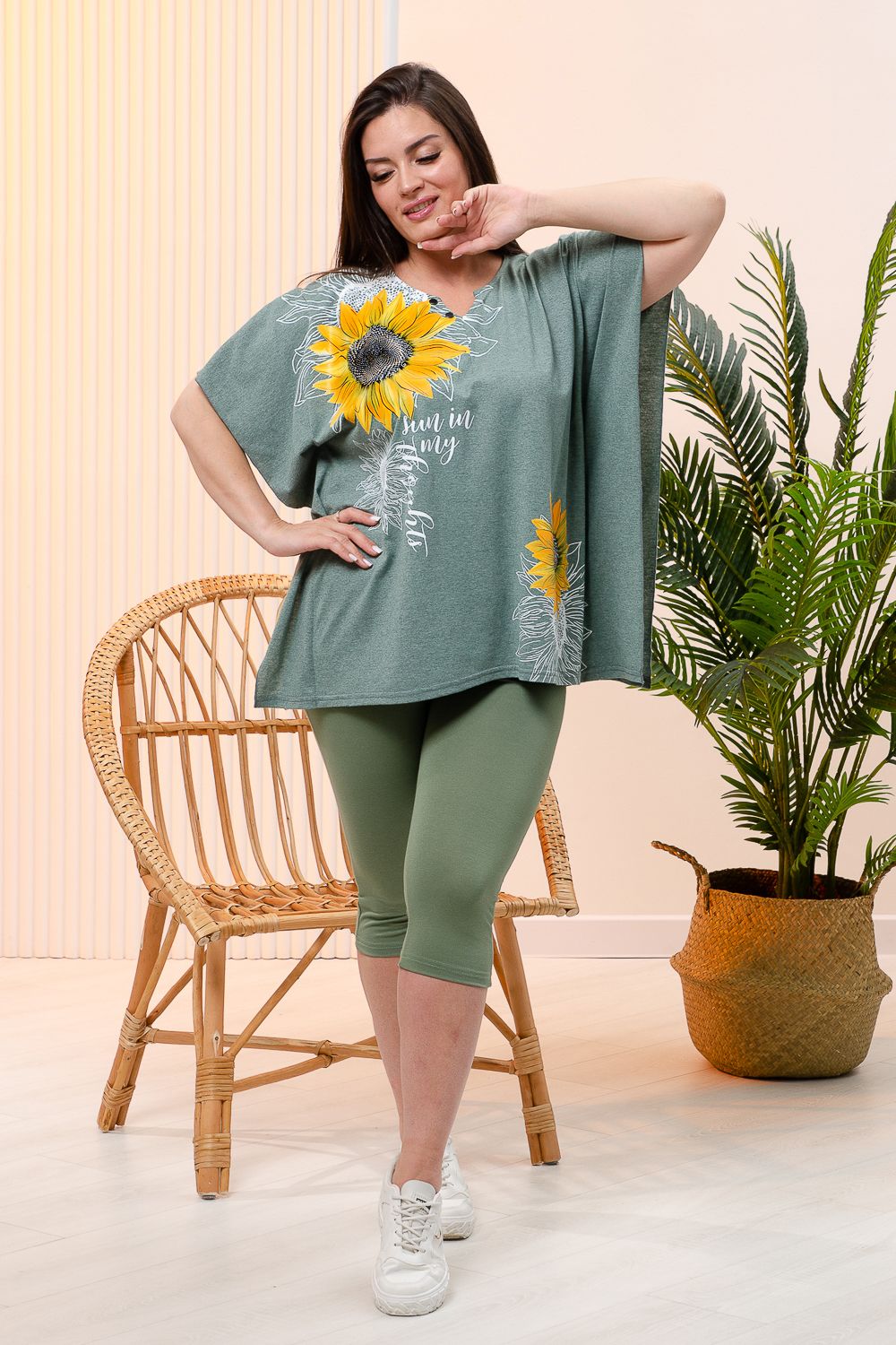 Летняя туника свободного прямоугольного кроя с ярким принтом. Ткань модели мягко «обнимает», создавая легкие рукава, ниспадающие красивыми складками. Оригинальный фасон туники позволяет чувствовать себя комфортно в жаркие летние дни.