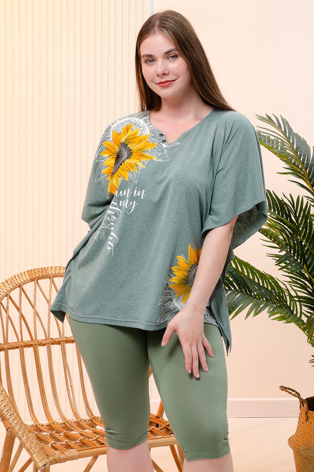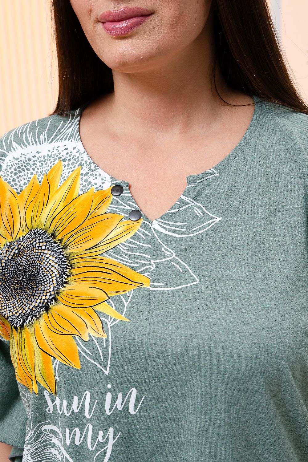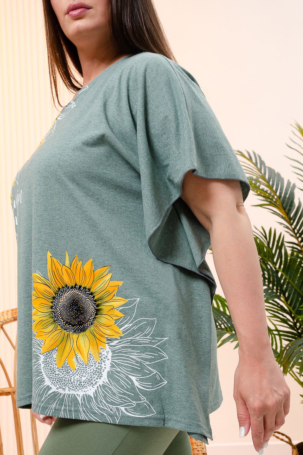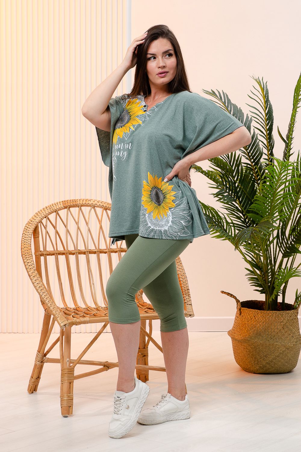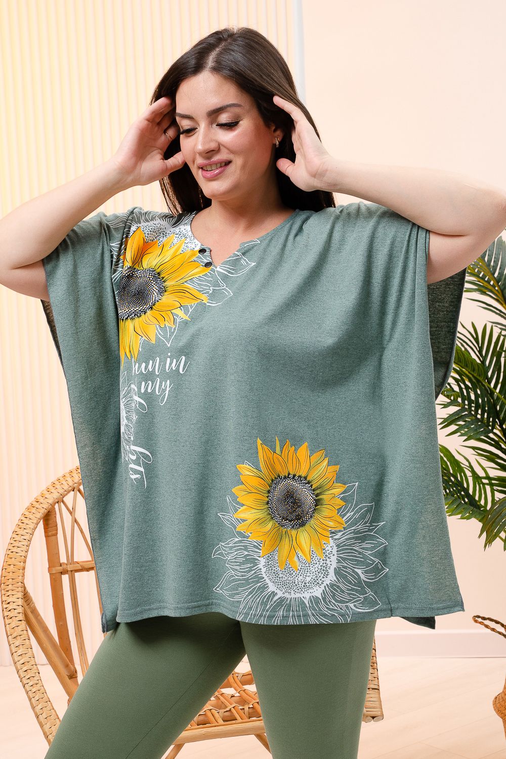 Летняя туника свободного прямоугольного кроя с ярким принтом. Ткань модели мягко «обнимает», создавая легкие рукава, ниспадающие красивыми складками. Оригинальный фасон туники позволяет чувствовать себя комфортно в жаркие летние дни.