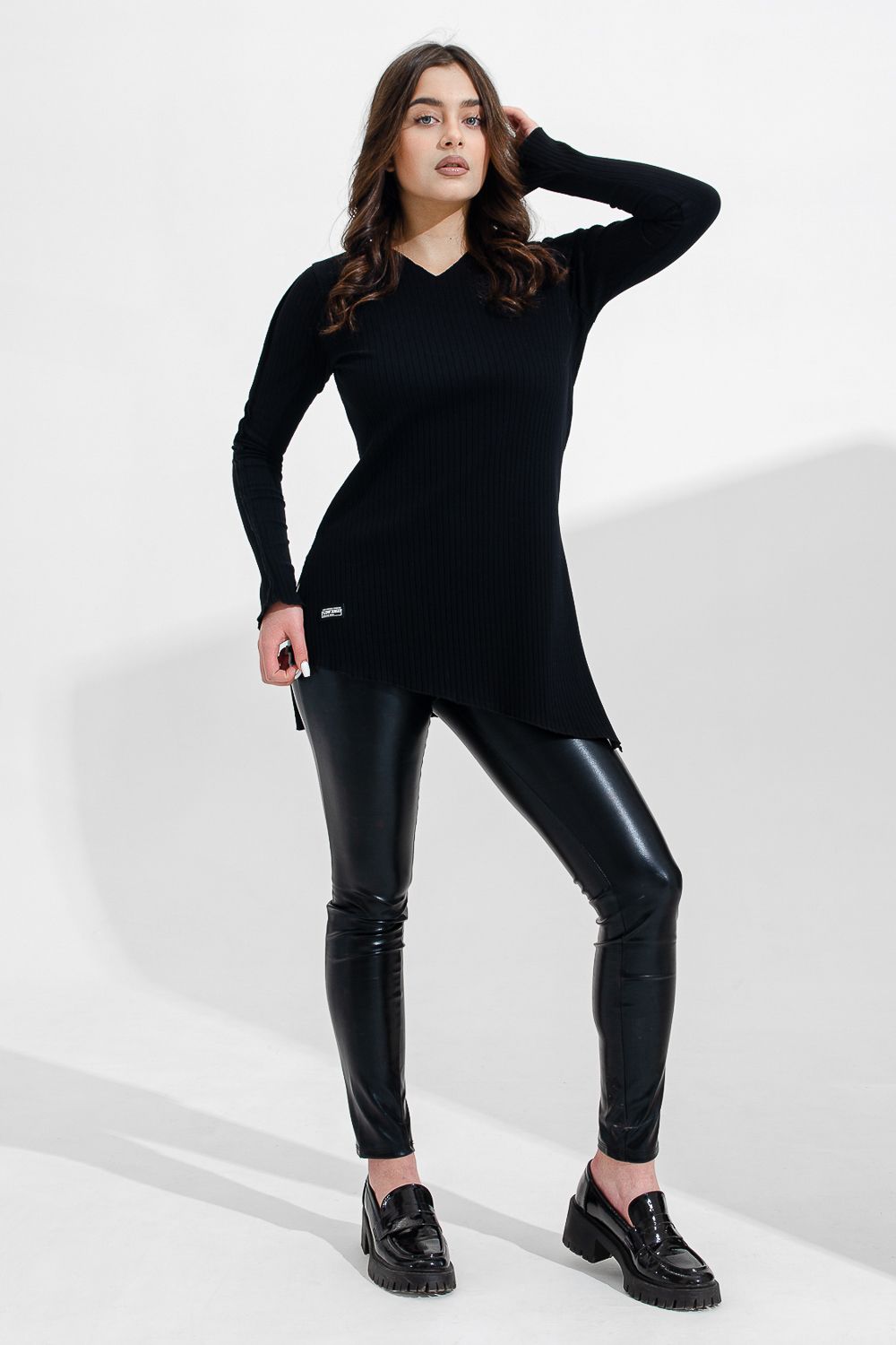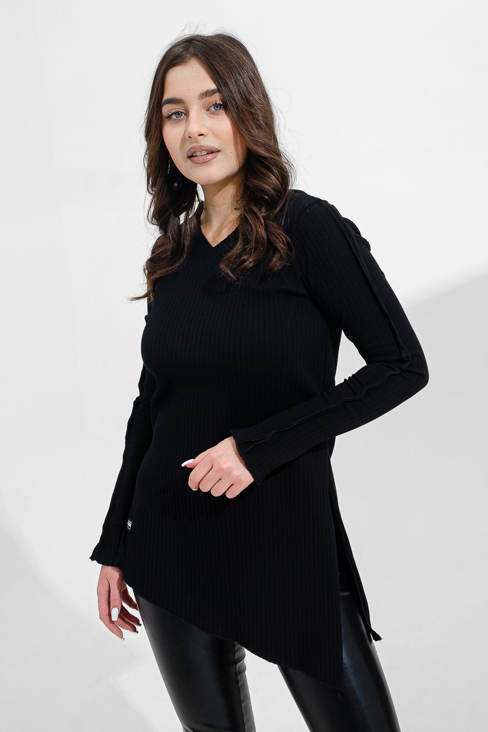 Представляем вам главный элемент гардероба современной женщины - нашу великолепную трикотажную тунику в рубчик! Это прекрасная модель лонгслива с V-образным вырезом ассиметричного кроя. Свободный силуэт скрывает мелкие несовершенства фигуры, даря интересный образ. Крой туники А-силуэт, без карманов, рукава удлиненные. Материал - мягкий трикотаж - "лапша". Туника хорошо сочетается с леггинсами и узкими брюками. За счет боковых удлиненных краев визуально стройнит и вытягивает силуэт.
