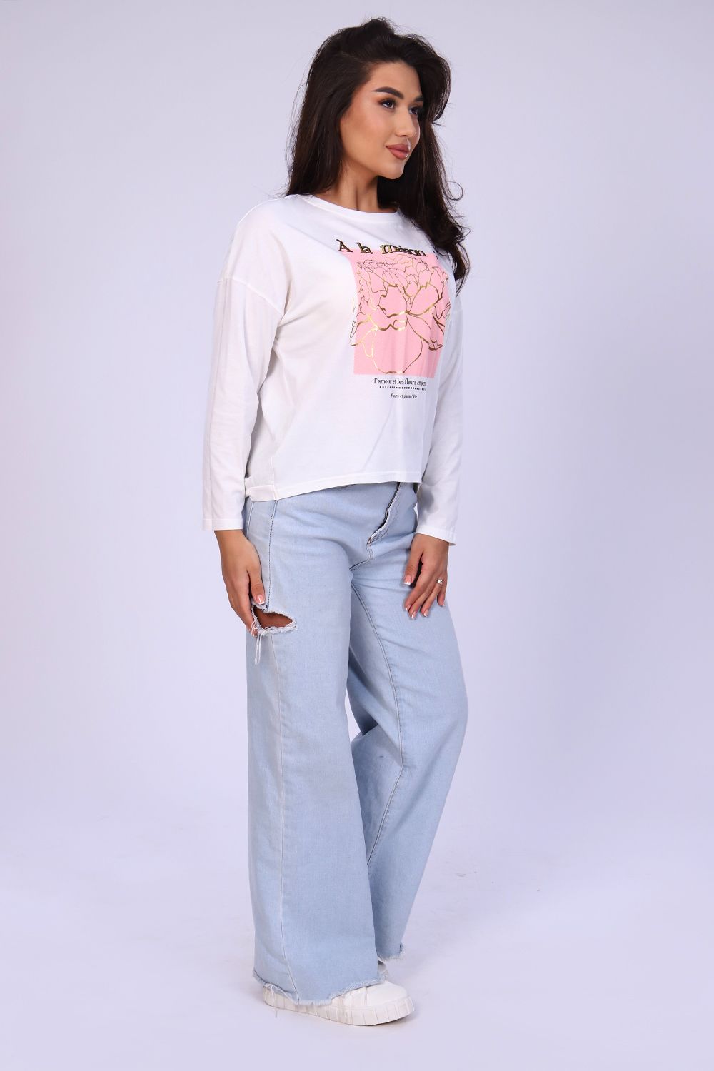 Туника оверсайз представлена в трех интересных расцветках с очаровательной, нежной печатью. Модель невероятно комфортна, рукав полной длины со спущенной линией плеча, спинка немного присборена и скруглена, чуть ниже полочки, горловина округлая, втачная, с отстрочкой. Для пошива использована ткань высшего качества - компакт. Это самый лучший, дорогой и качественный материал из семейства кулирки.