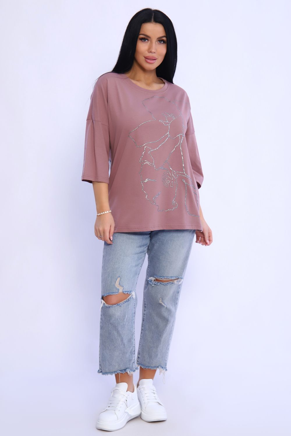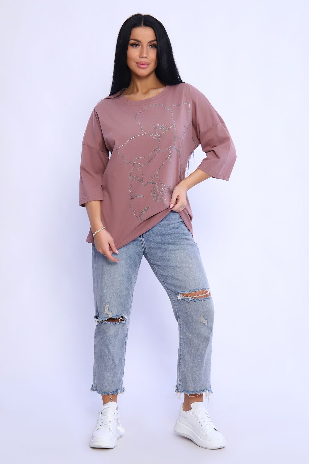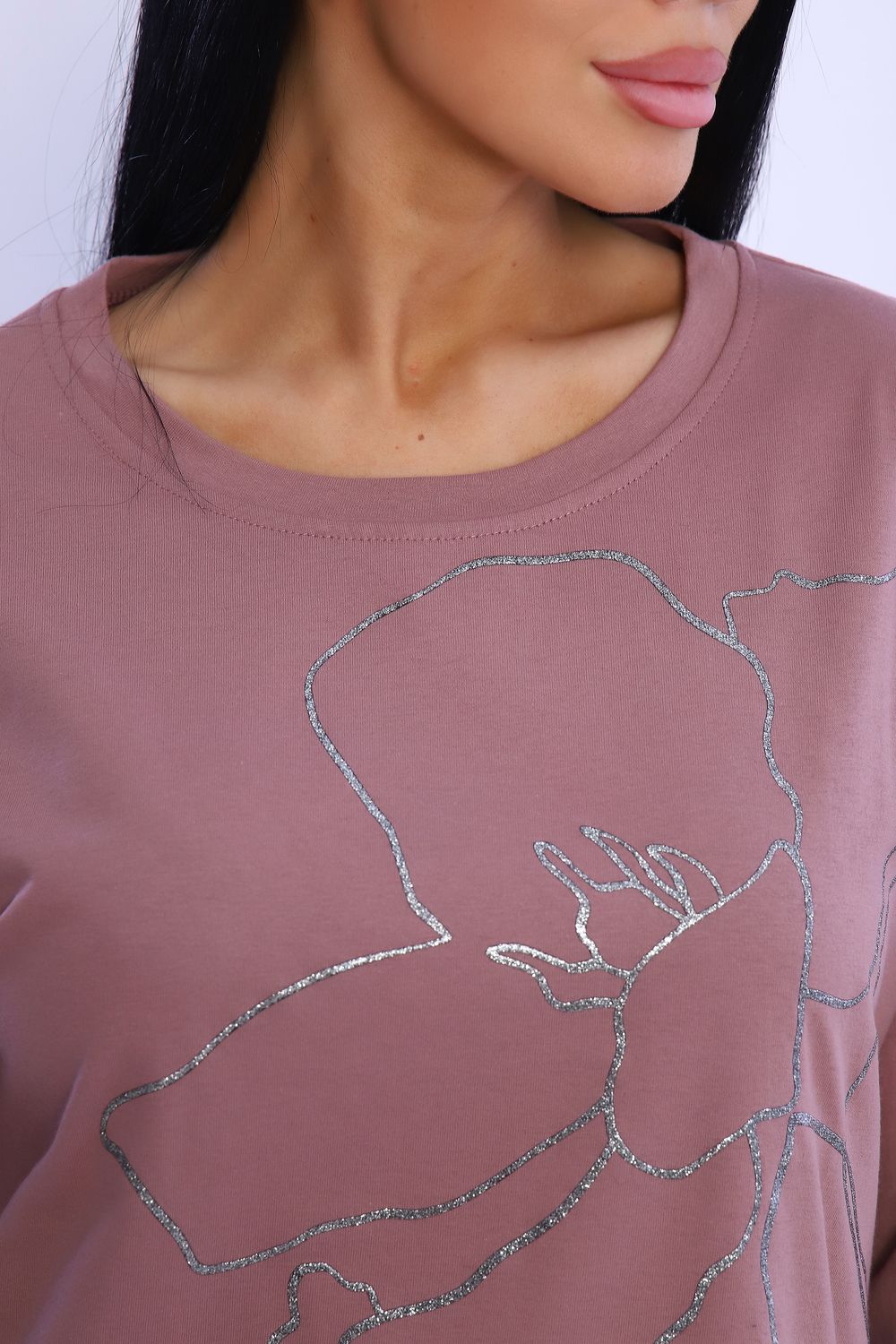 Туника из натурального хлопка прекрасный вариант для повседневного образа. Будет комфортна и как базовый вариант к классическим брючкам, так и к стилю "спортшик". Принт в виде большого цветка лилии с использованием глиттера и техники объёмной печати украшает модель, придавая ей изысканный вид. Обработка деталей вкруговую с закрепкой, рукав длиной 3/4, горловина втачная из основной ткани. Большие размеры!
