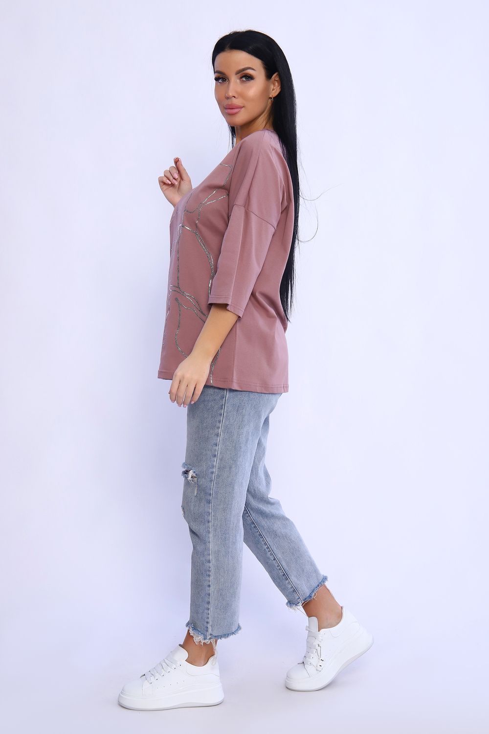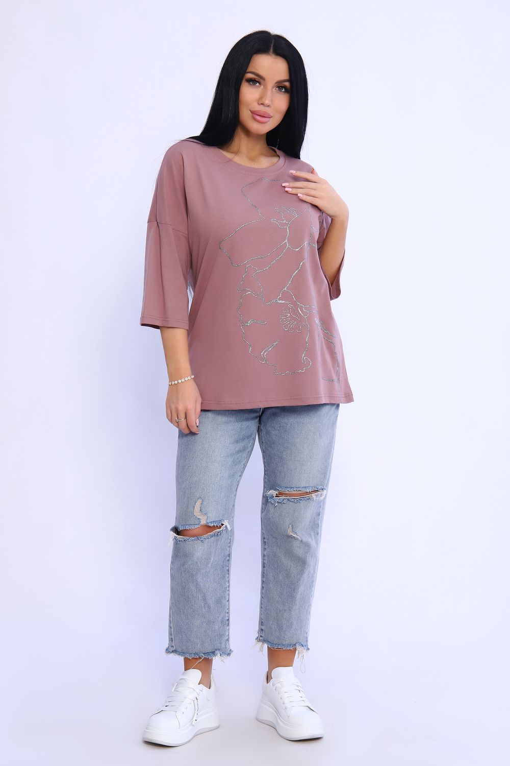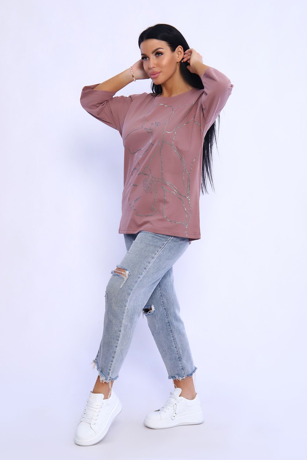 Туника из натурального хлопка прекрасный вариант для повседневного образа. Будет комфортна и как базовый вариант к классическим брючкам, так и к стилю "спортшик". Принт в виде большого цветка лилии с использованием глиттера и техники объёмной печати украшает модель, придавая ей изысканный вид. Обработка деталей вкруговую с закрепкой, рукав длиной 3/4, горловина втачная из основной ткани. Большие размеры!