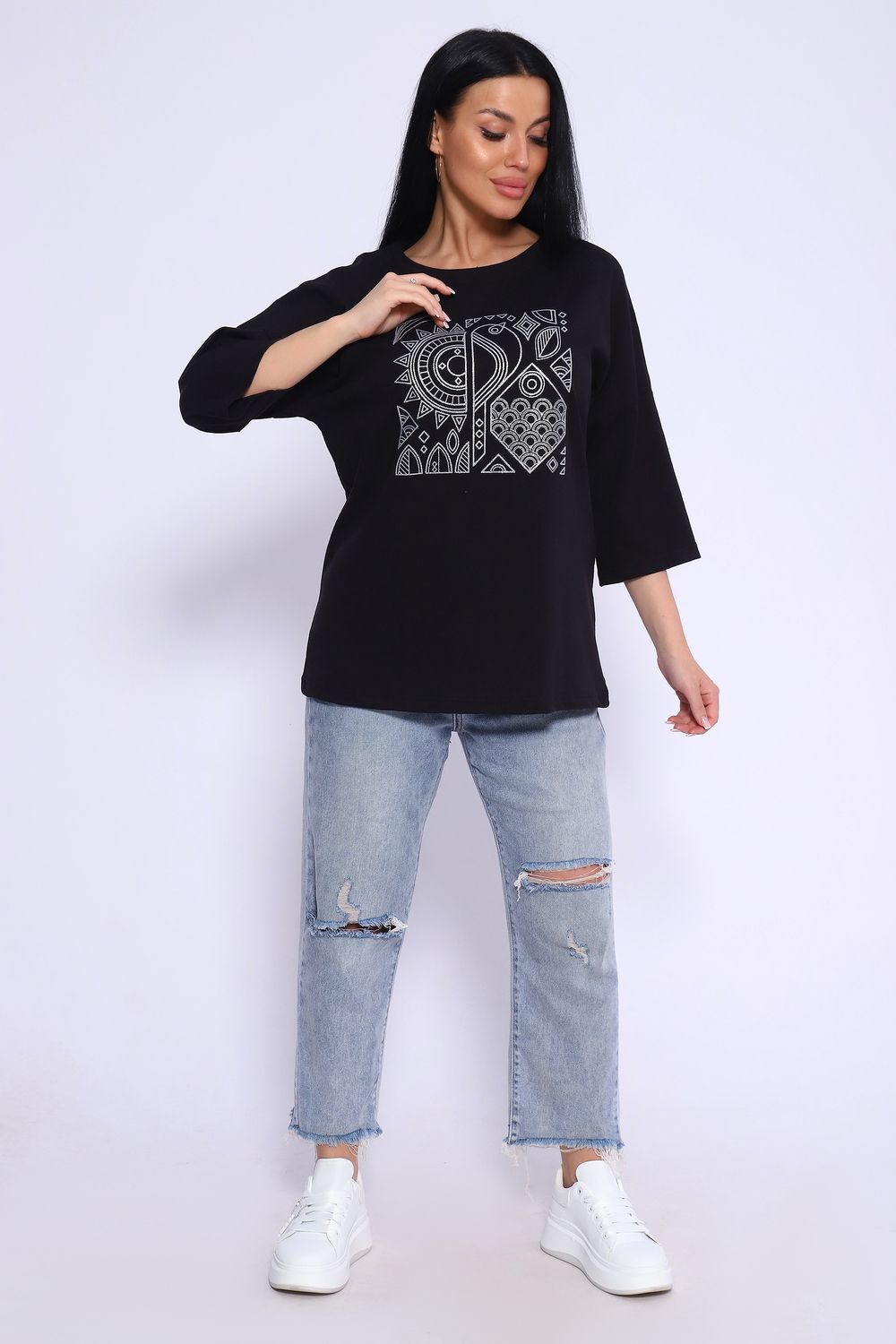 Туника свободного кроя из мягкого, натурального хлопка подарит ощущение комфорта и уюта. Оригинальный принт с использованием глиттера и техники объёмной печати украшает модель, придавая ей изысканный вид. Обработка деталей вкруговую с закрепкой, рукав длиной 3/4, горловина втачная из основной ткани. Большие размеры!