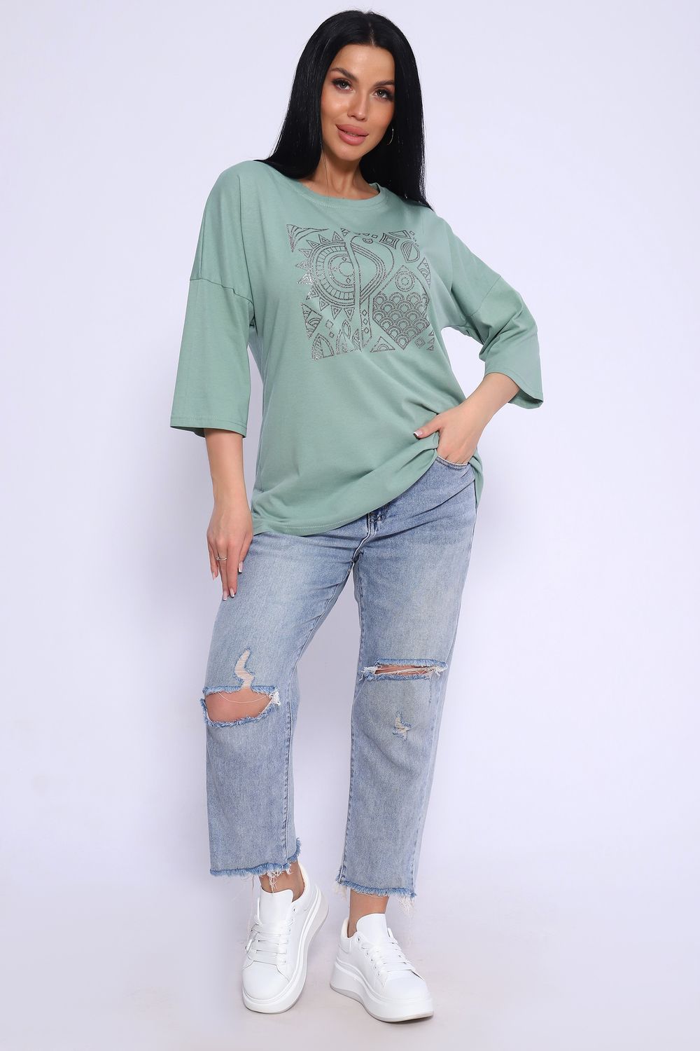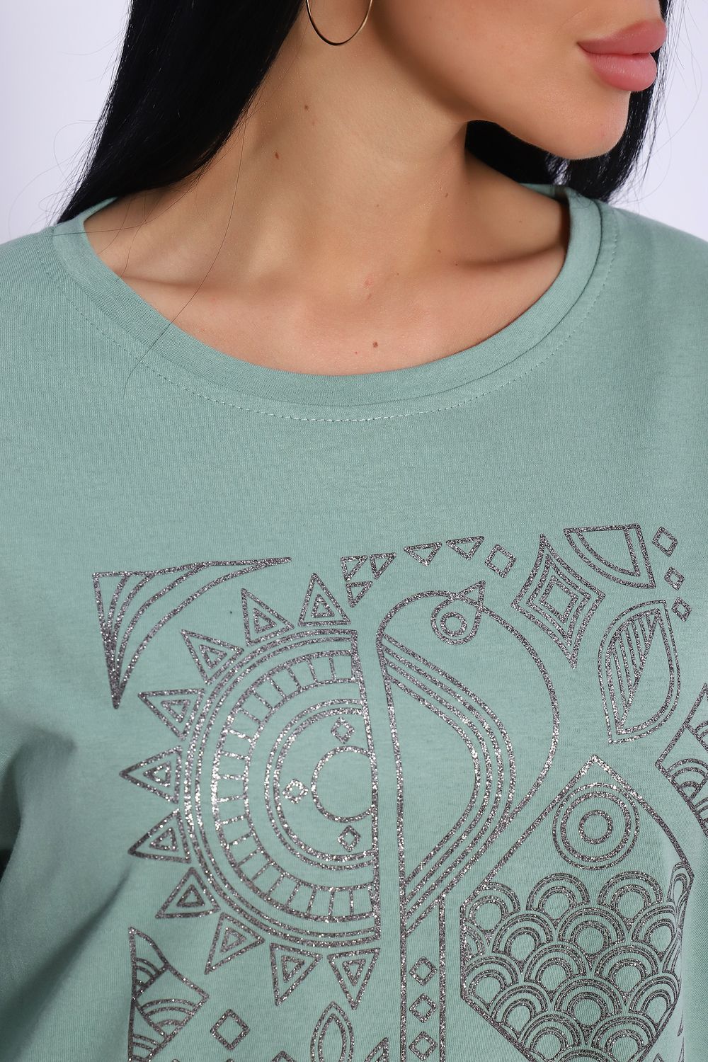 Туника свободного кроя из мягкого, натурального хлопка подарит ощущение комфорта и уюта. Оригинальный принт с использованием глиттера и техники объёмной печати украшает модель, придавая ей изысканный вид. Обработка деталей вкруговую с закрепкой, рукав длиной 3/4, горловина втачная из основной ткани. Большие размеры!