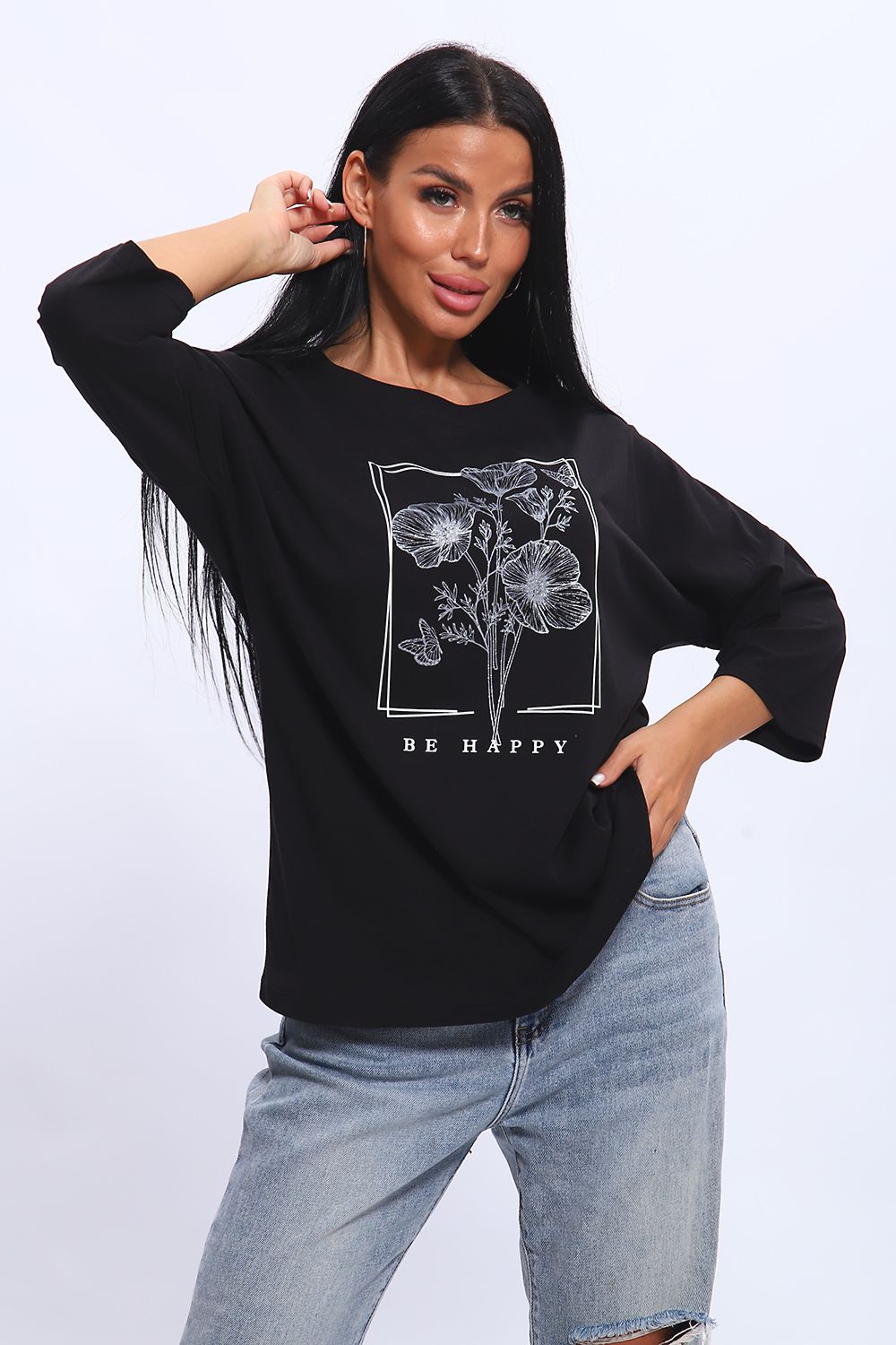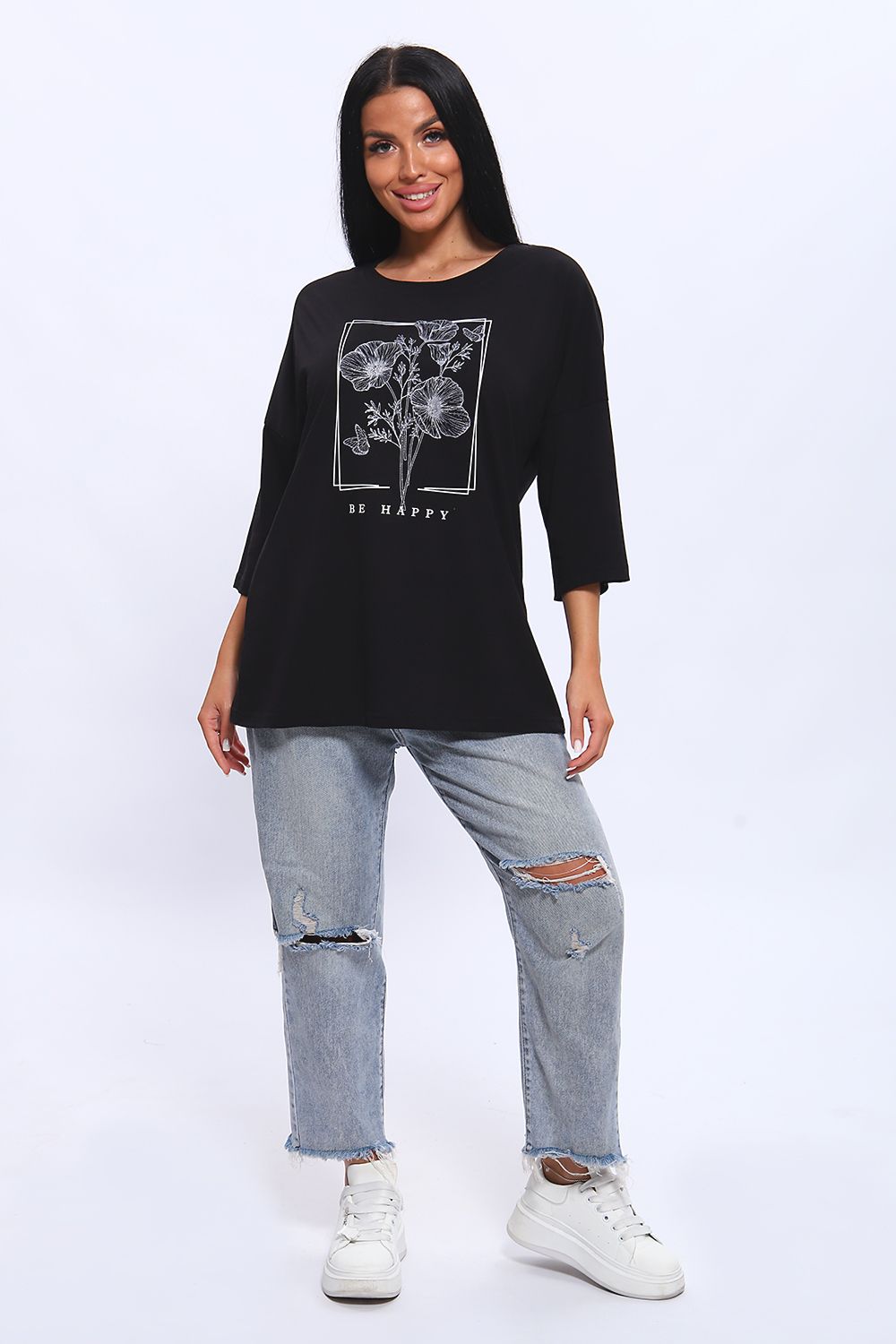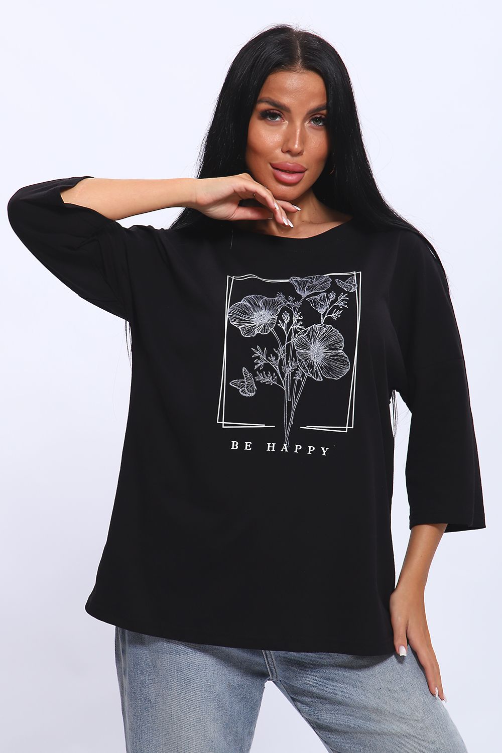 Туника свободного кроя из мягкого, натурального хлопка подарит ощущение комфорта и уюта. Принт маки с использованием глиттера и техники объёмной печати украшает модель, придавая ей изысканный вид. Обработка деталей вкруговую с закрепкой, рукав длиной 3/4, горловина втачная из основной ткани. Большие размеры!