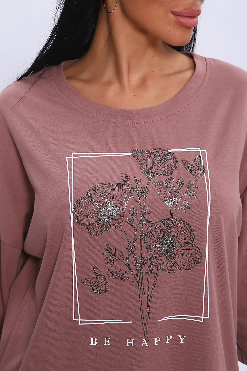 Туника свободного кроя из мягкого, натурального хлопка подарит ощущение комфорта и уюта. Принт маки с использованием глиттера и техники объёмной печати украшает модель, придавая ей изысканный вид. Обработка деталей вкруговую с закрепкой, рукав длиной 3/4, горловина втачная из основной ткани. Большие размеры!