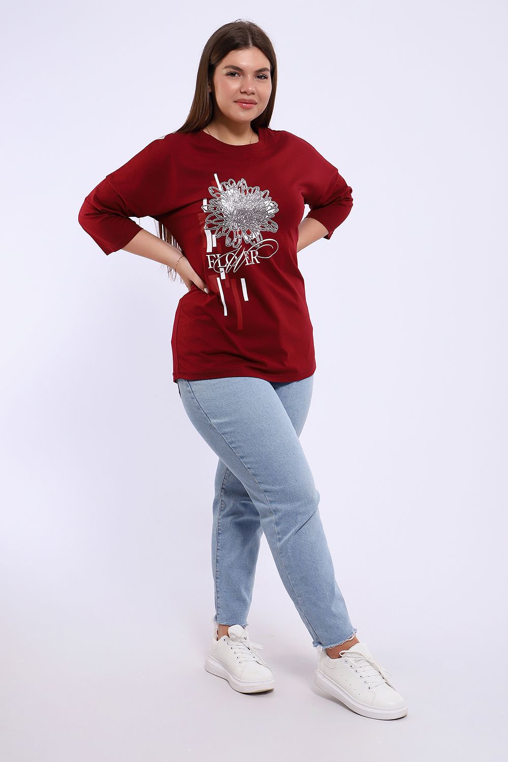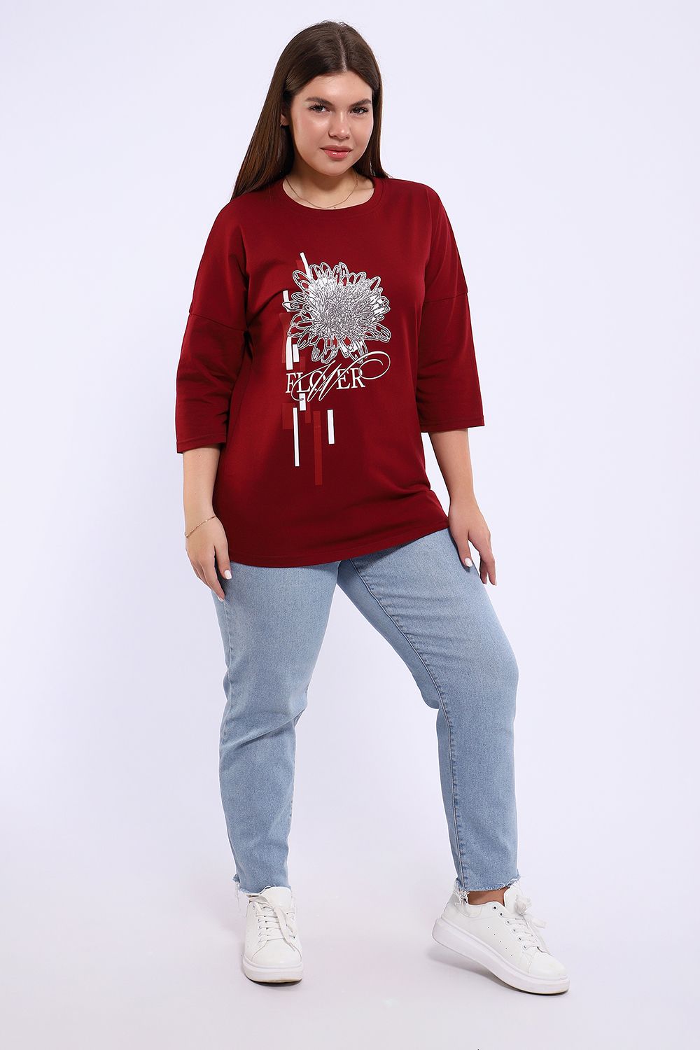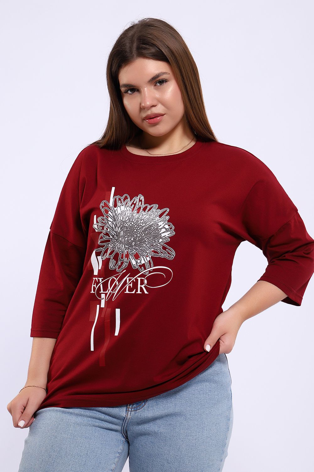 Туника из натурального хлопка прекрасный вариант для повседневного образа. Будет комфортна и как базовый вариант к классическим брючкам, так и к стилю "спортшик". Принт в виде большого цветка пиона с использованием глиттера и техники объёмной печати украшает модель, придавая ей изысканный вид. Обработка деталей вкруговую с закрепкой, рукав длиной 3/4, горловина втачная из основной ткани. Большие размеры!