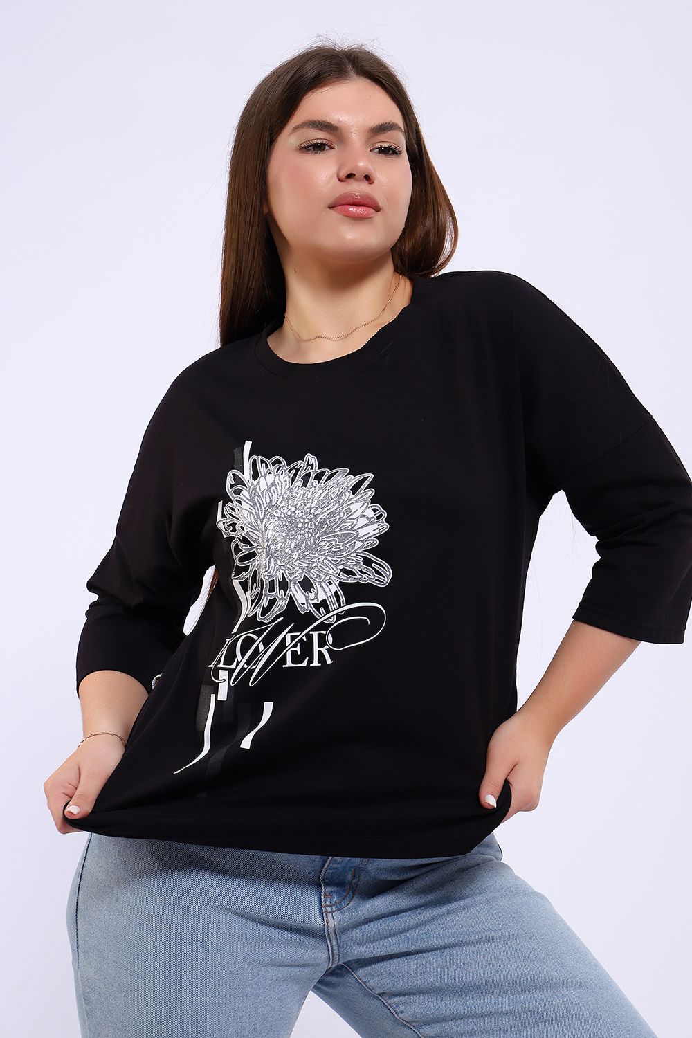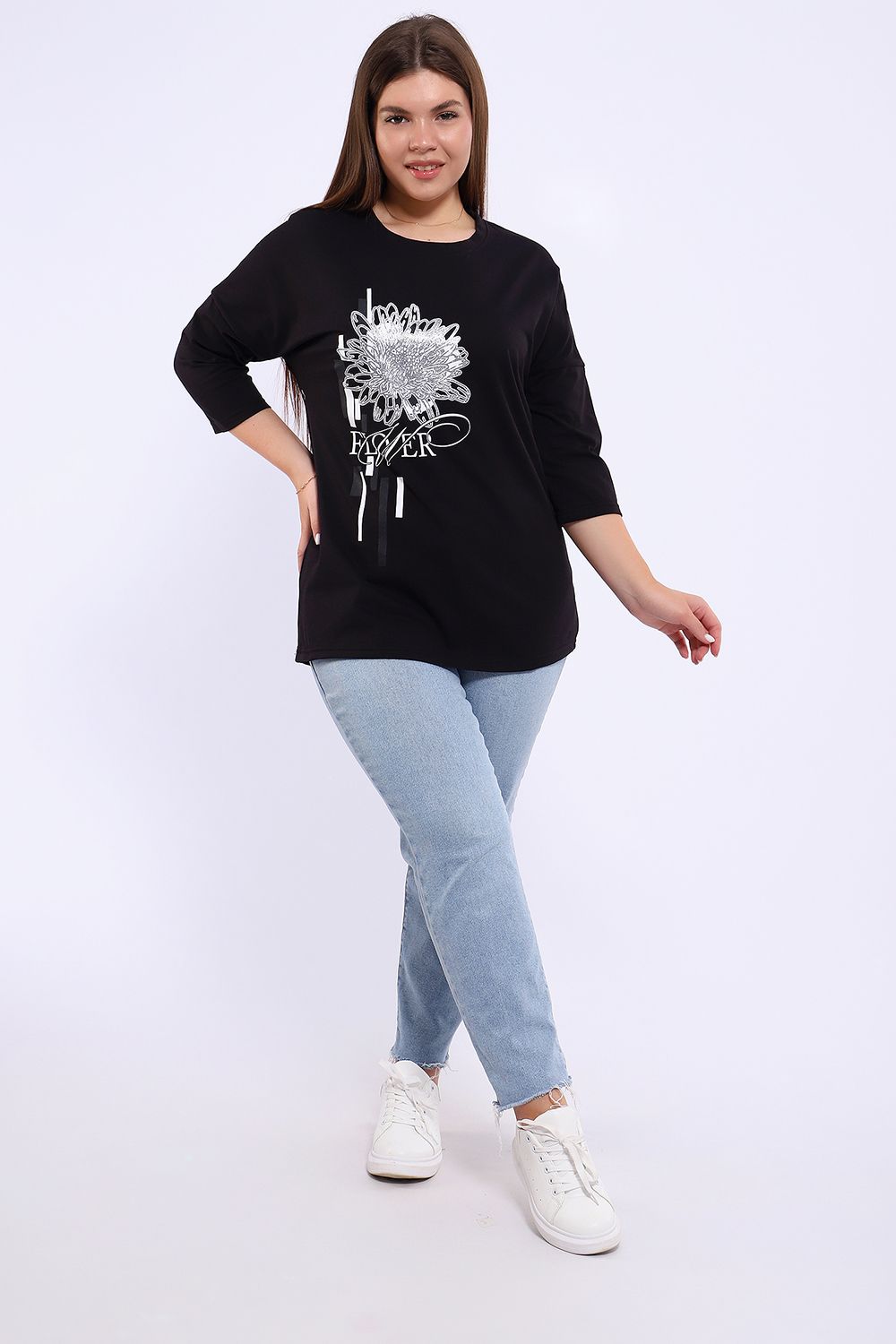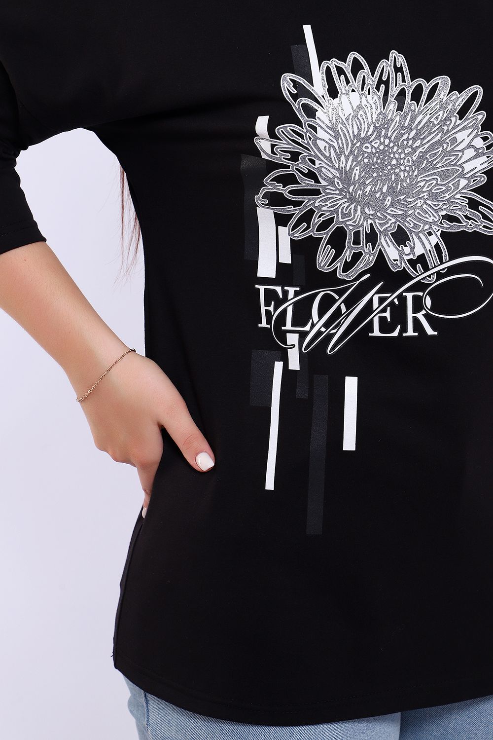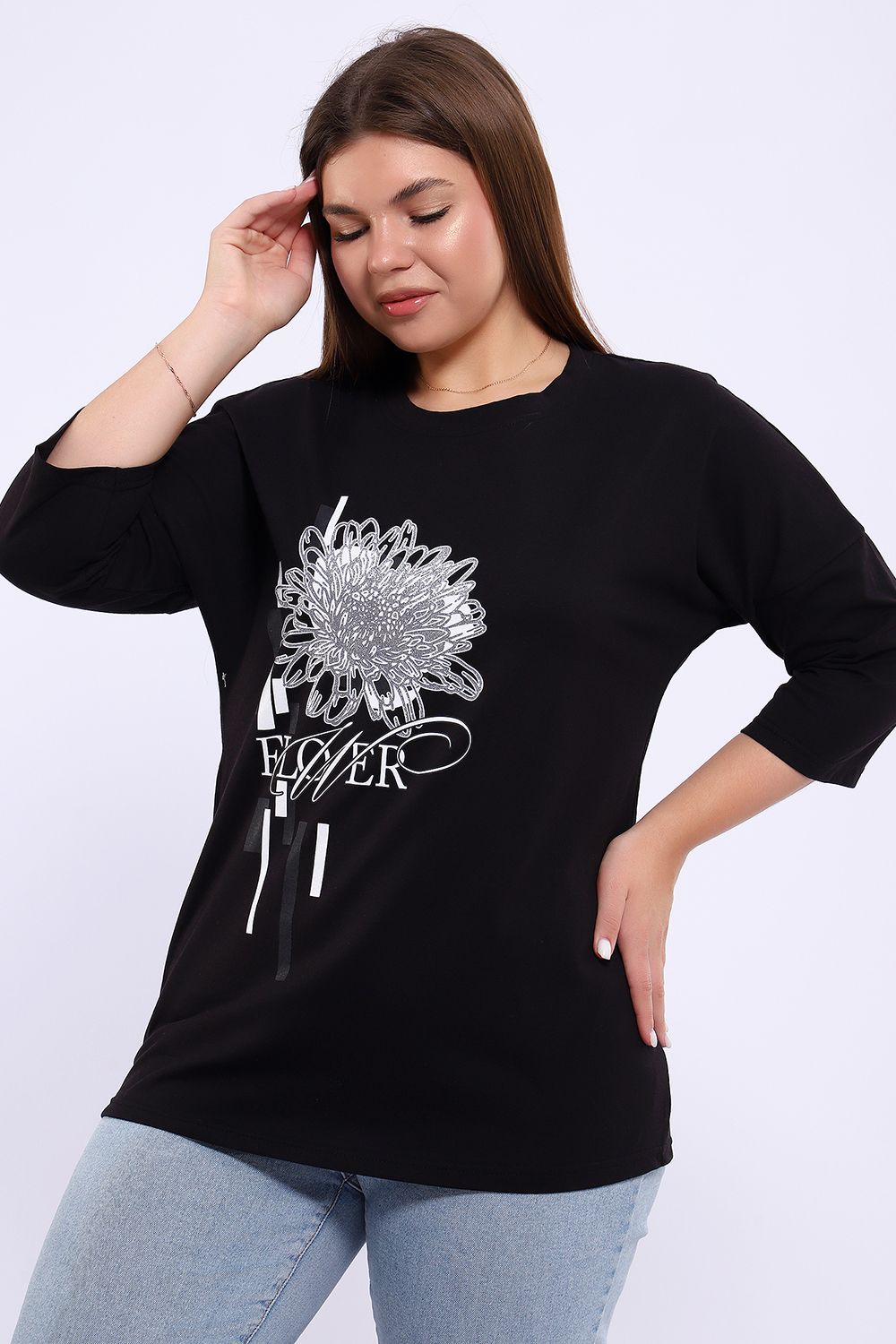Туника из натурального хлопка прекрасный вариант для повседневного образа. Будет комфортна и как базовый вариант к классическим брючкам, так и к стилю "спортшик". Принт в виде большого цветка пиона с использованием глиттера и техники объёмной печати украшает модель, придавая ей изысканный вид. Обработка деталей вкруговую с закрепкой, рукав длиной 3/4, горловина втачная из основной ткани. Большие размеры!