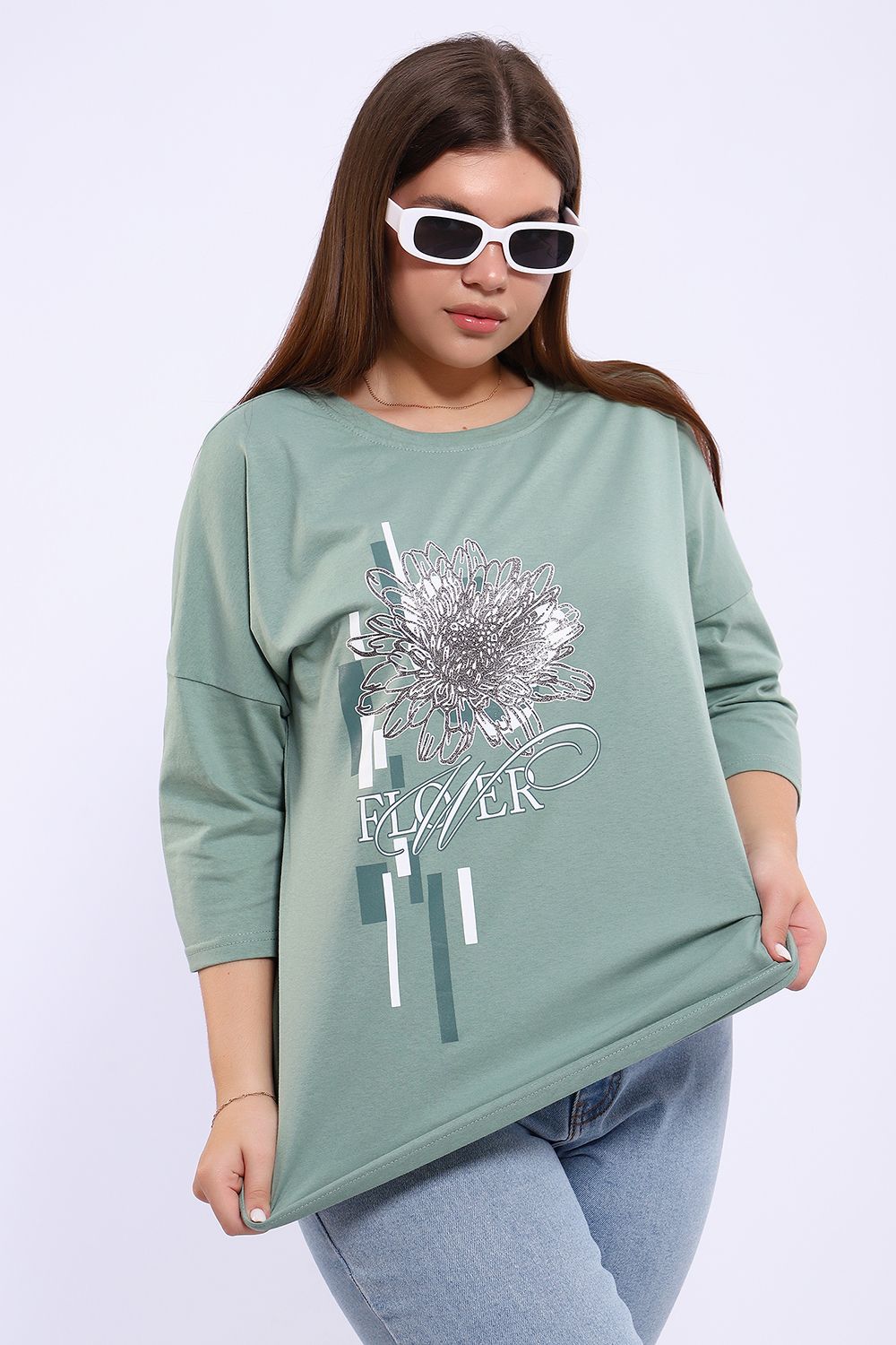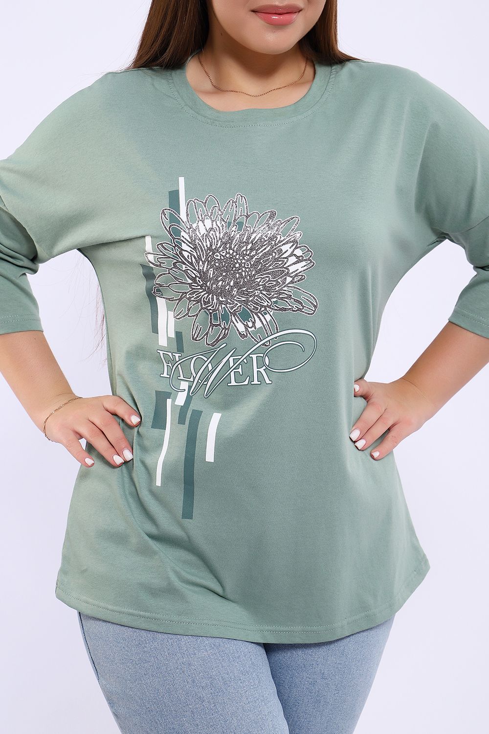 Туника из натурального хлопка прекрасный вариант для повседневного образа. Будет комфортна и как базовый вариант к классическим брючкам, так и к стилю "спортшик". Принт в виде большого цветка пиона с использованием глиттера и техники объёмной печати украшает модель, придавая ей изысканный вид. Обработка деталей вкруговую с закрепкой, рукав длиной 3/4, горловина втачная из основной ткани. Большие размеры!