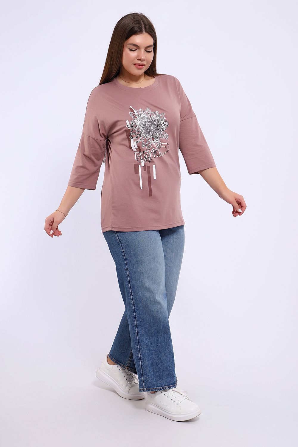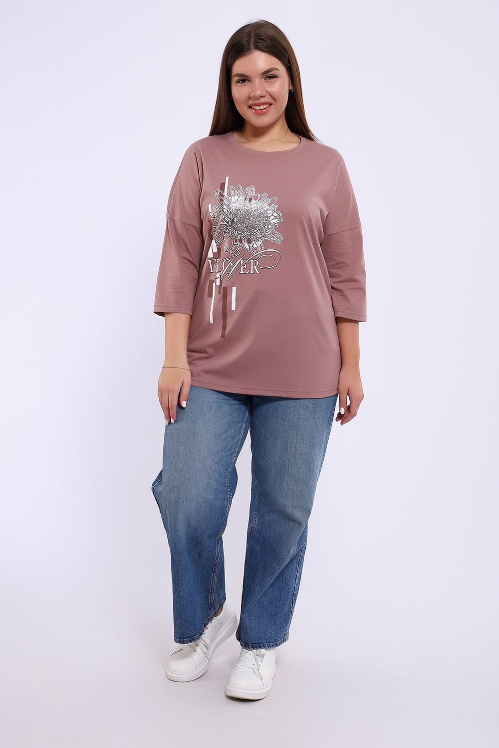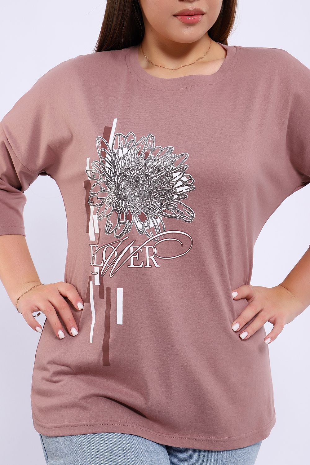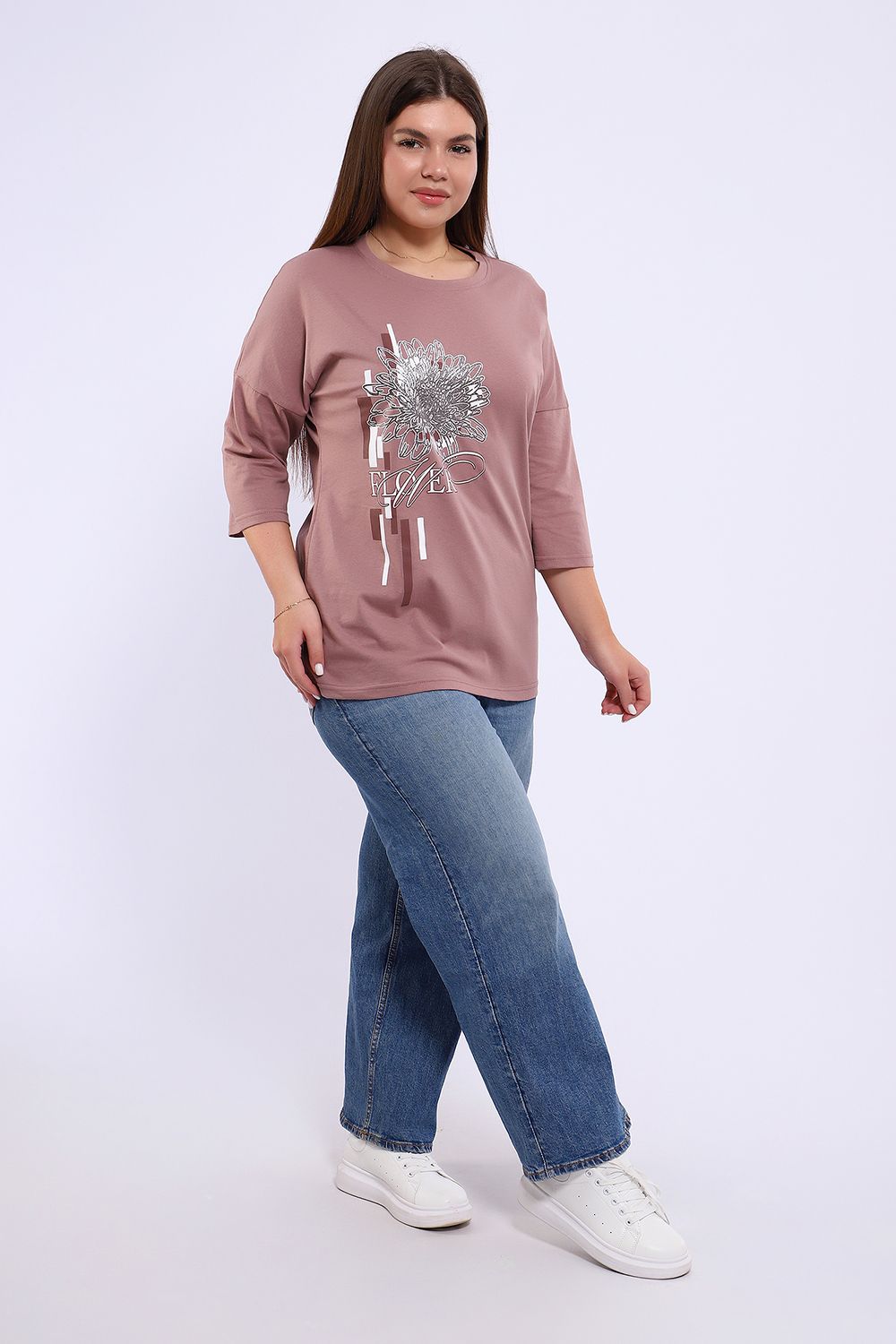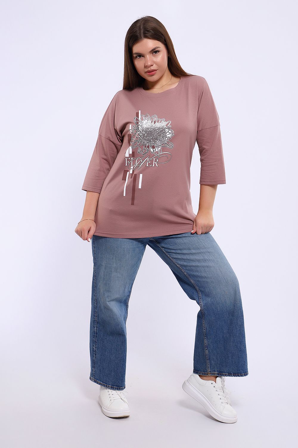 Туника из натурального хлопка прекрасный вариант для повседневного образа. Будет комфортна и как базовый вариант к классическим брючкам, так и к стилю "спортшик". Принт в виде большого цветка пиона с использованием глиттера и техники объёмной печати украшает модель, придавая ей изысканный вид. Обработка деталей вкруговую с закрепкой, рукав длиной 3/4, горловина втачная из основной ткани. Большие размеры!