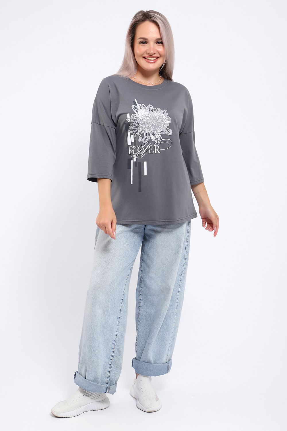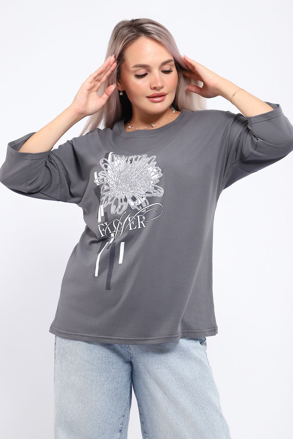Туника из натурального хлопка прекрасный вариант для повседневного образа. Будет комфортна и как базовый вариант к классическим брючкам, так и к стилю "спортшик". Принт в виде большого цветка пиона с использованием глиттера и техники объёмной печати украшает модель, придавая ей изысканный вид. Обработка деталей вкруговую с закрепкой, рукав длиной 3/4, горловина втачная из основной ткани. Большие размеры!