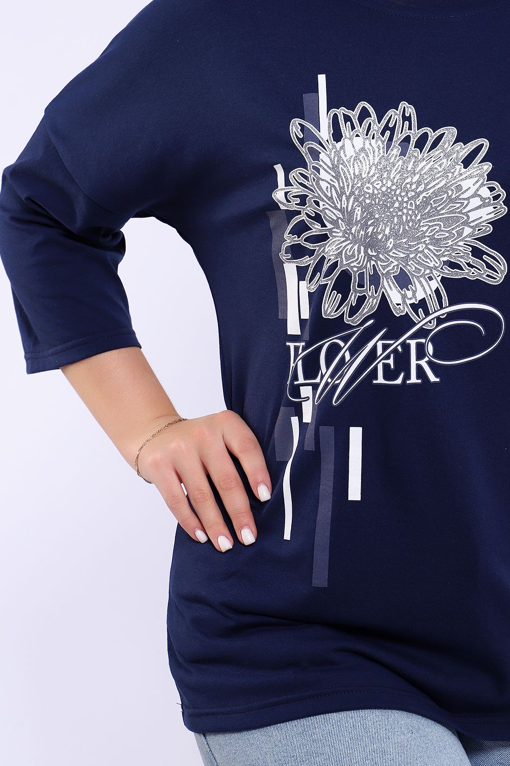 Туника из натурального хлопка прекрасный вариант для повседневного образа. Будет комфортна и как базовый вариант к классическим брючкам, так и к стилю "спортшик". Принт в виде большого цветка пиона с использованием глиттера и техники объёмной печати украшает модель, придавая ей изысканный вид. Обработка деталей вкруговую с закрепкой, рукав длиной 3/4, горловина втачная из основной ткани. Большие размеры!