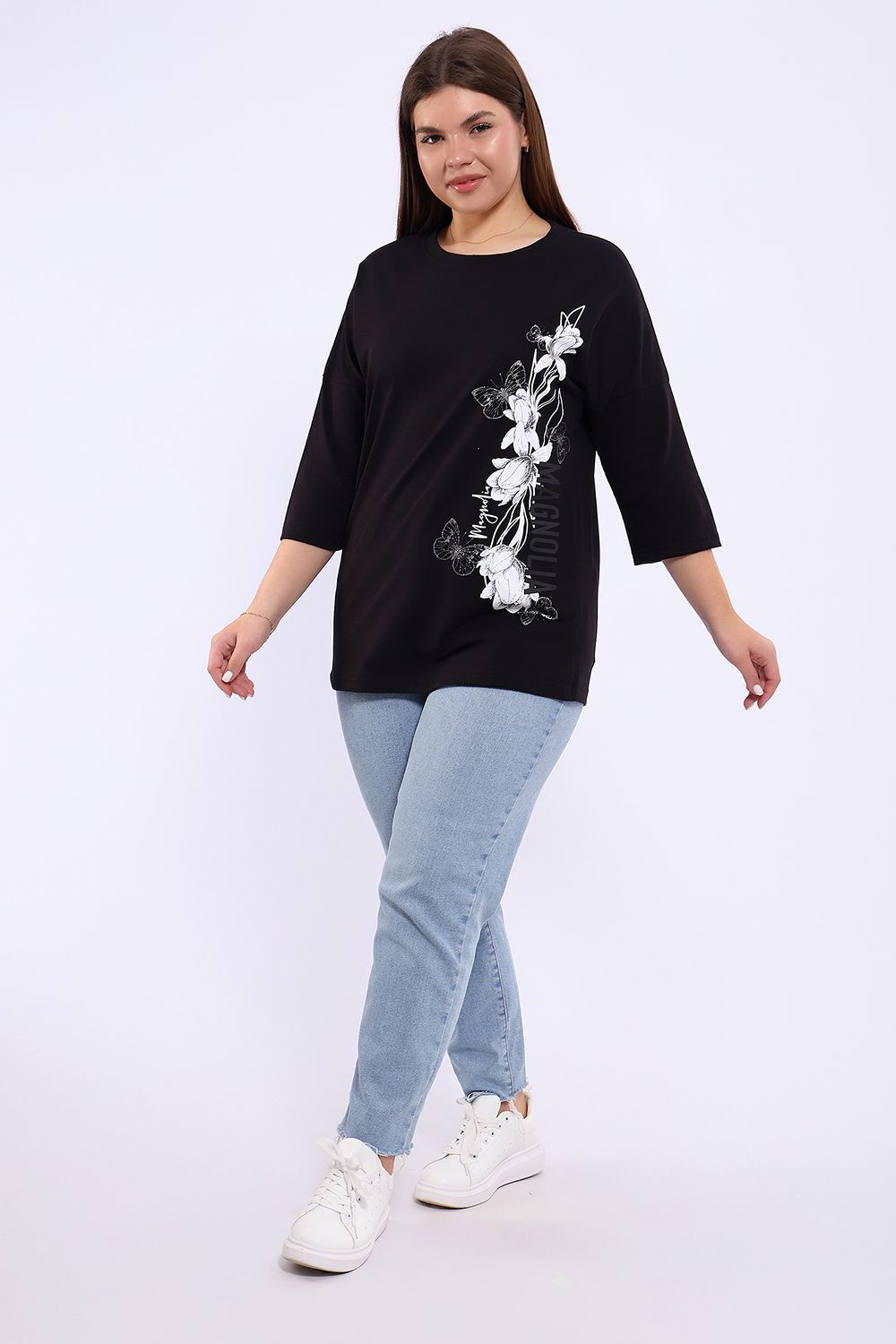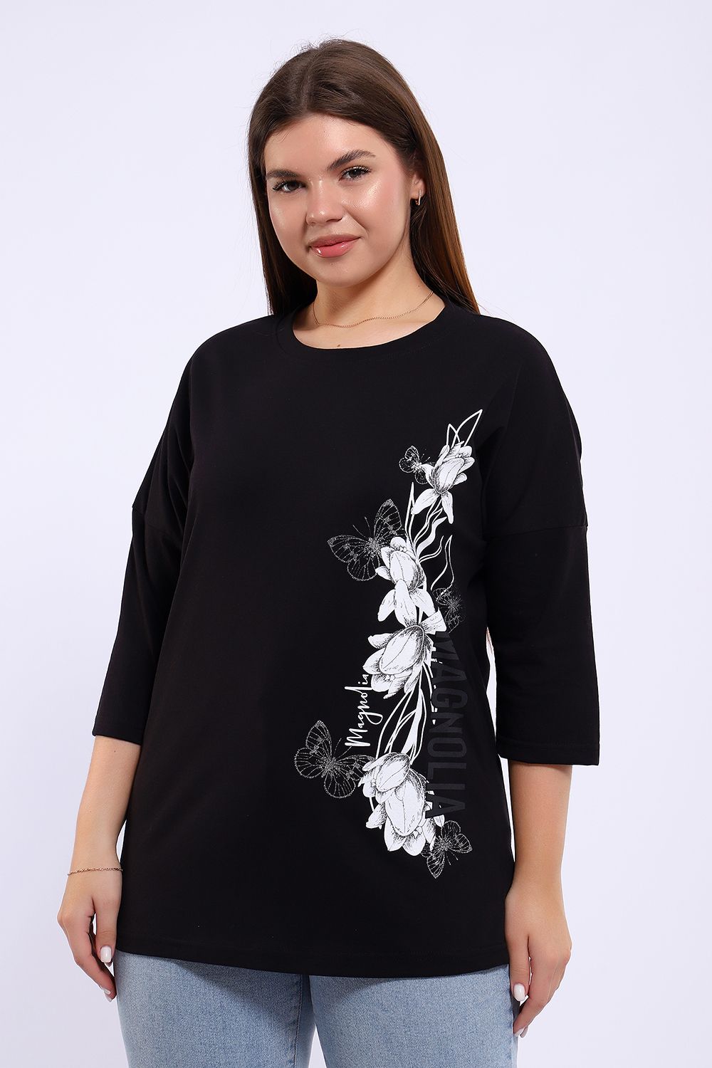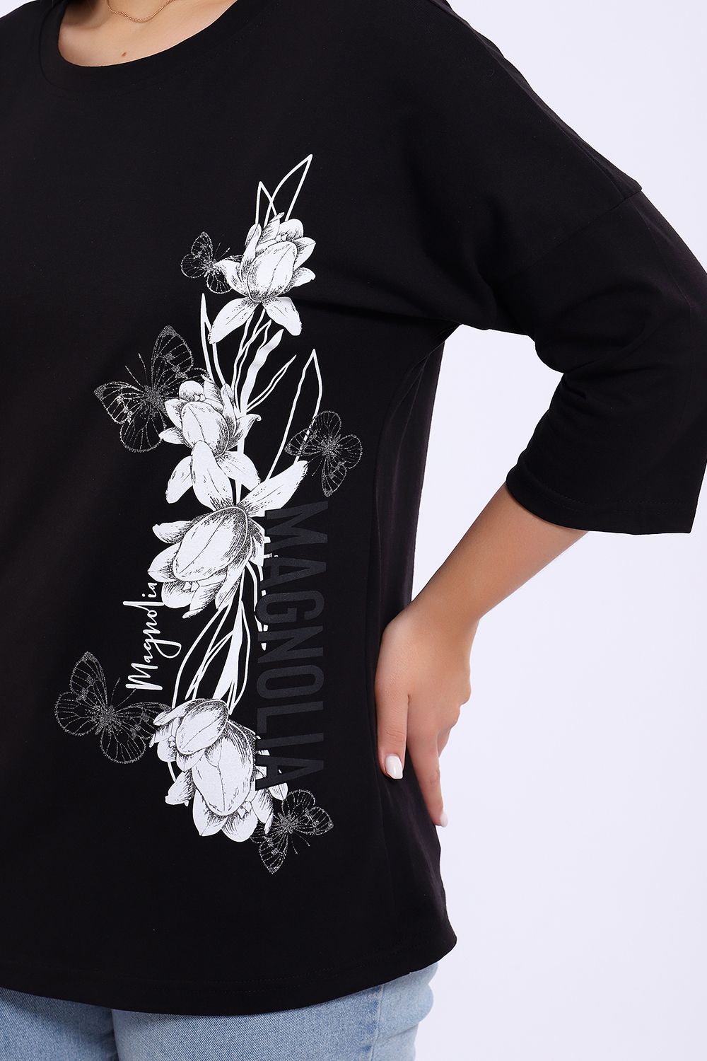 Туника свободного кроя из мягкого, натурального хлопка подарит ощущение комфорта и уюта. Принт маки с использованием глиттера и техники объёмной печати украшает модель, придавая ей изысканный вид. Обработка деталей вкруговую с закрепкой, рукав длиной 3/4, горловина втачная из основной ткани. Большие размеры!