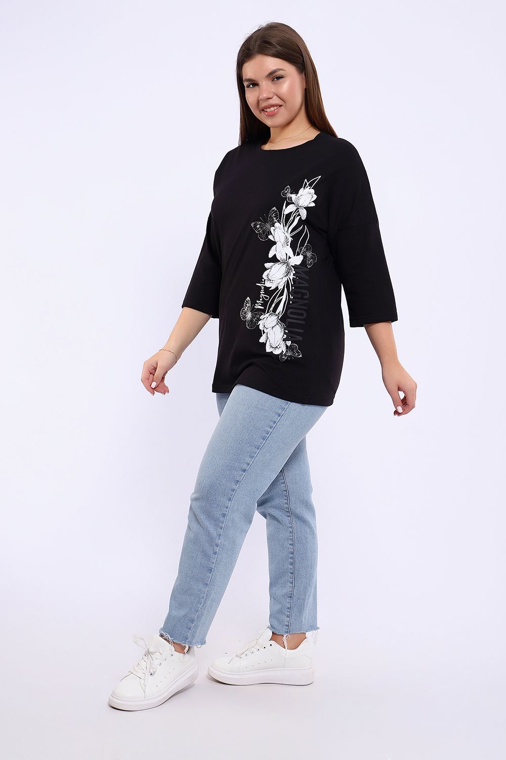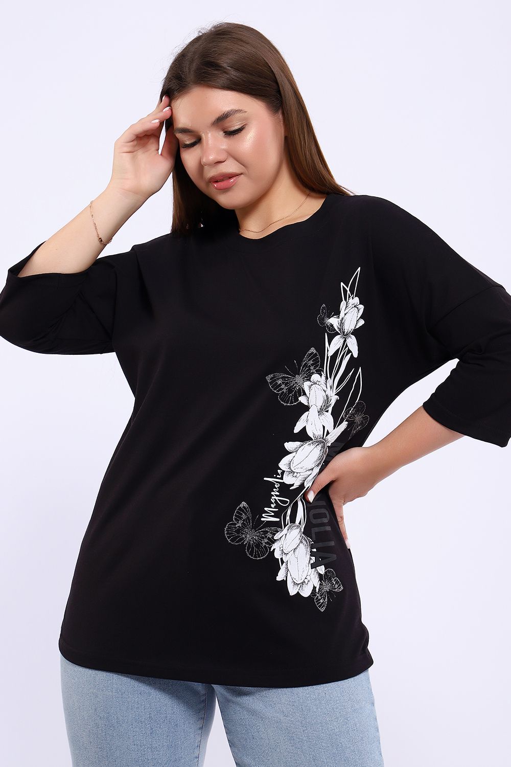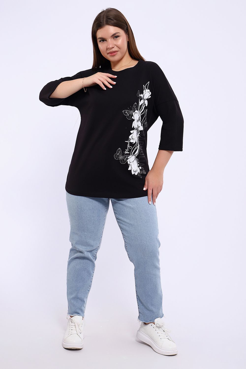 Туника свободного кроя из мягкого, натурального хлопка подарит ощущение комфорта и уюта. Принт маки с использованием глиттера и техники объёмной печати украшает модель, придавая ей изысканный вид. Обработка деталей вкруговую с закрепкой, рукав длиной 3/4, горловина втачная из основной ткани. Большие размеры!