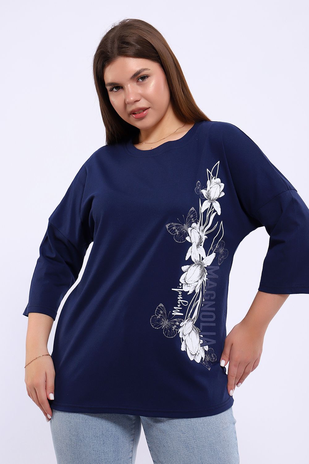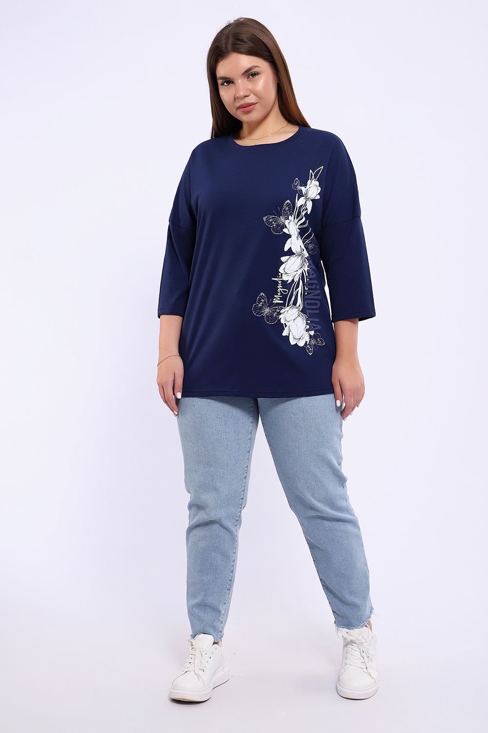 Туника свободного кроя из мягкого, натурального хлопка подарит ощущение комфорта и уюта. Принт маки с использованием глиттера и техники объёмной печати украшает модель, придавая ей изысканный вид. Обработка деталей вкруговую с закрепкой, рукав длиной 3/4, горловина втачная из основной ткани. Большие размеры!