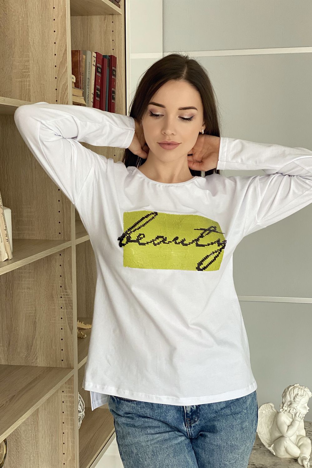 Туника полуприталенного силуэта, с удлиненной спинкой, с округлой горловиной. Рукав длинный. В нижней части боковых швов обработаны разрезы. Горловина обработана бейкой из основного полотна.