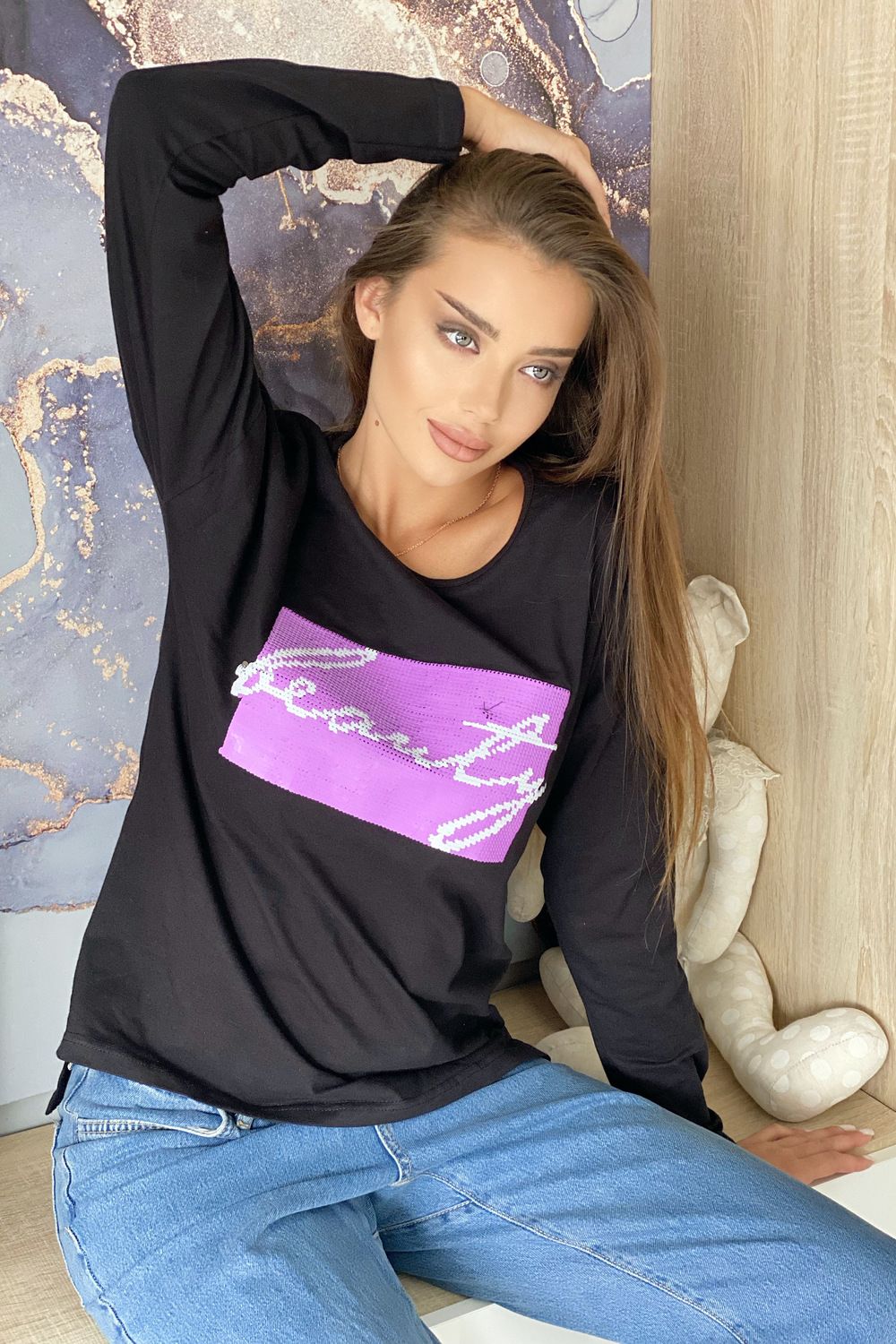 Туника полуприталенного силуэта, с удлиненной спинкой, с округлой горловиной. Рукав длинный. В нижней части боковых швов обработаны разрезы. Горловина обработана бейкой из основного полотна.