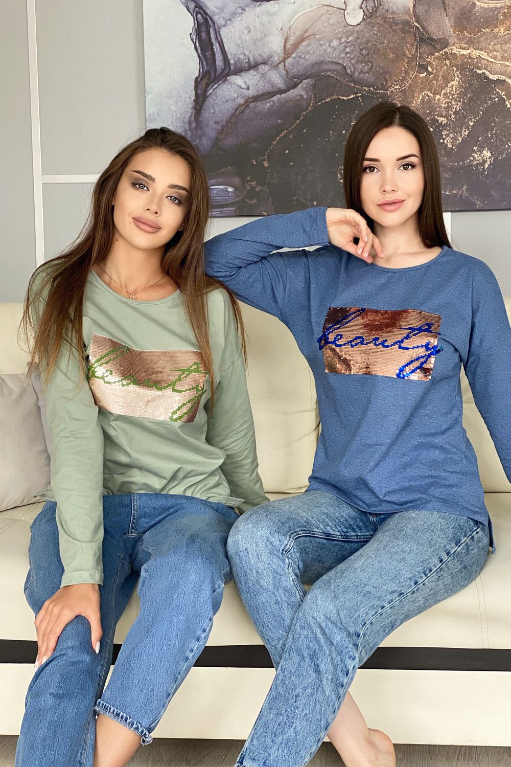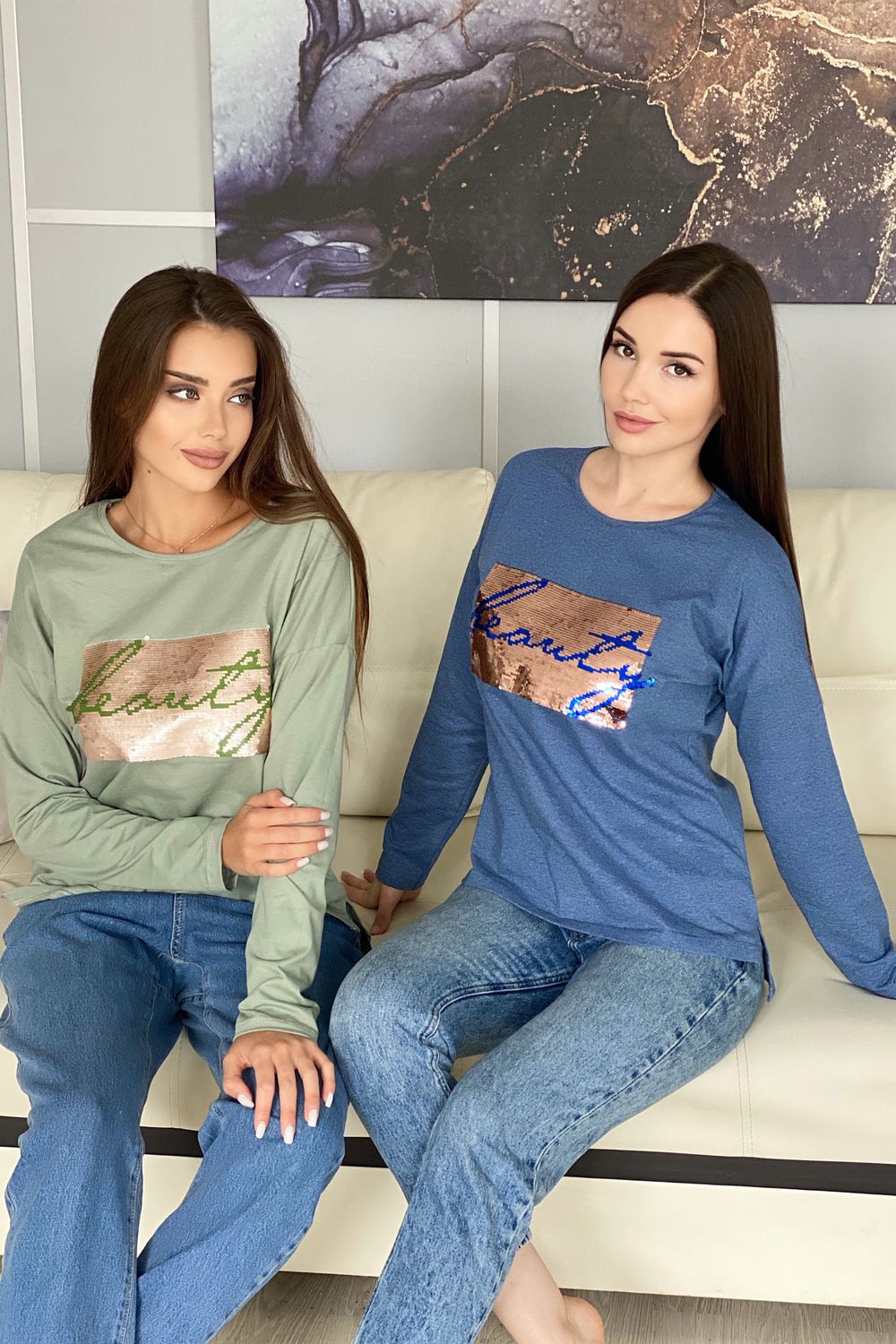 Туника полуприталенного силуэта, с удлиненной спинкой, с округлой горловиной. Рукав длинный. В нижней части боковых швов обработаны разрезы. Горловина обработана бейкой из основного полотна.