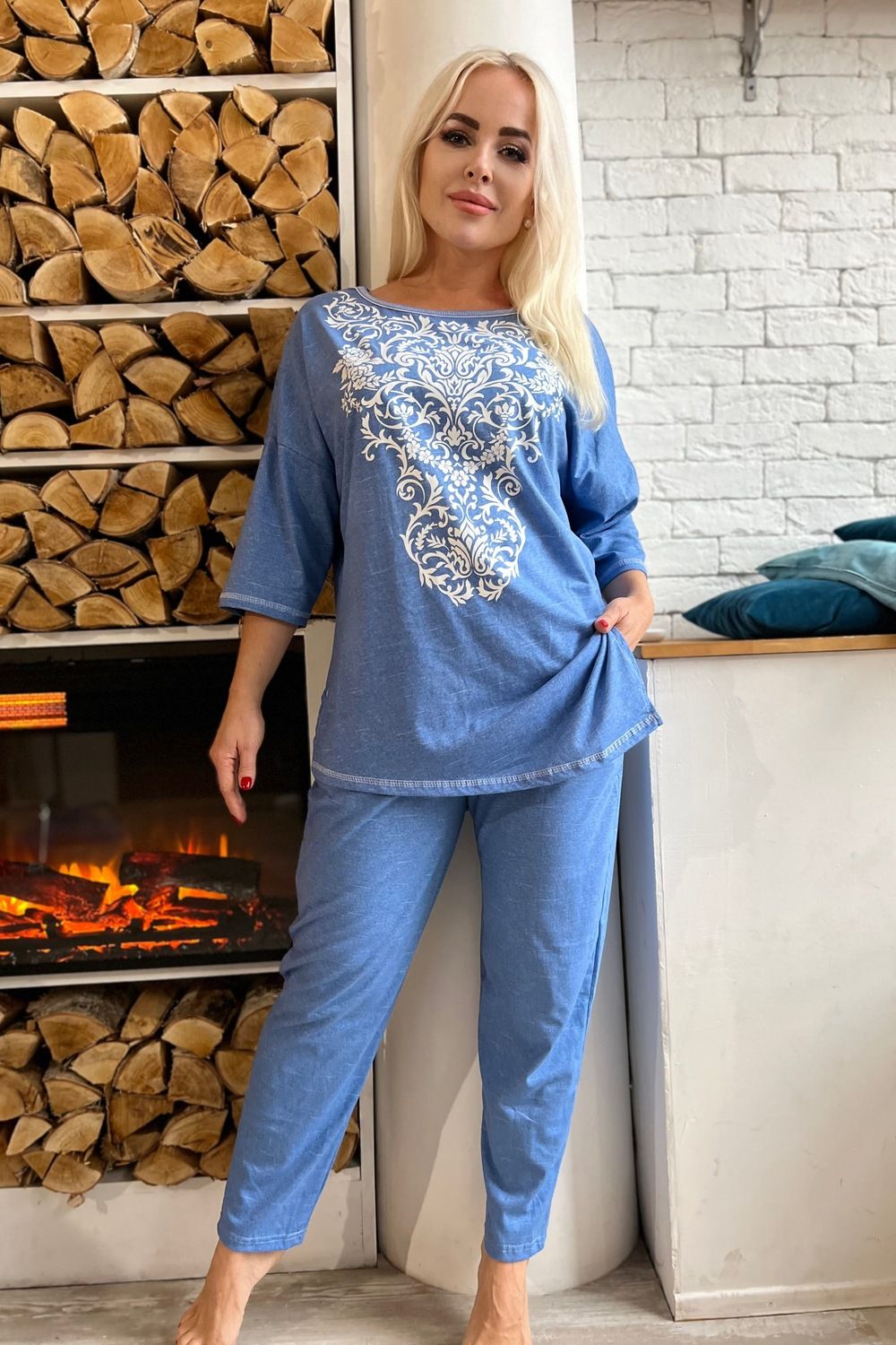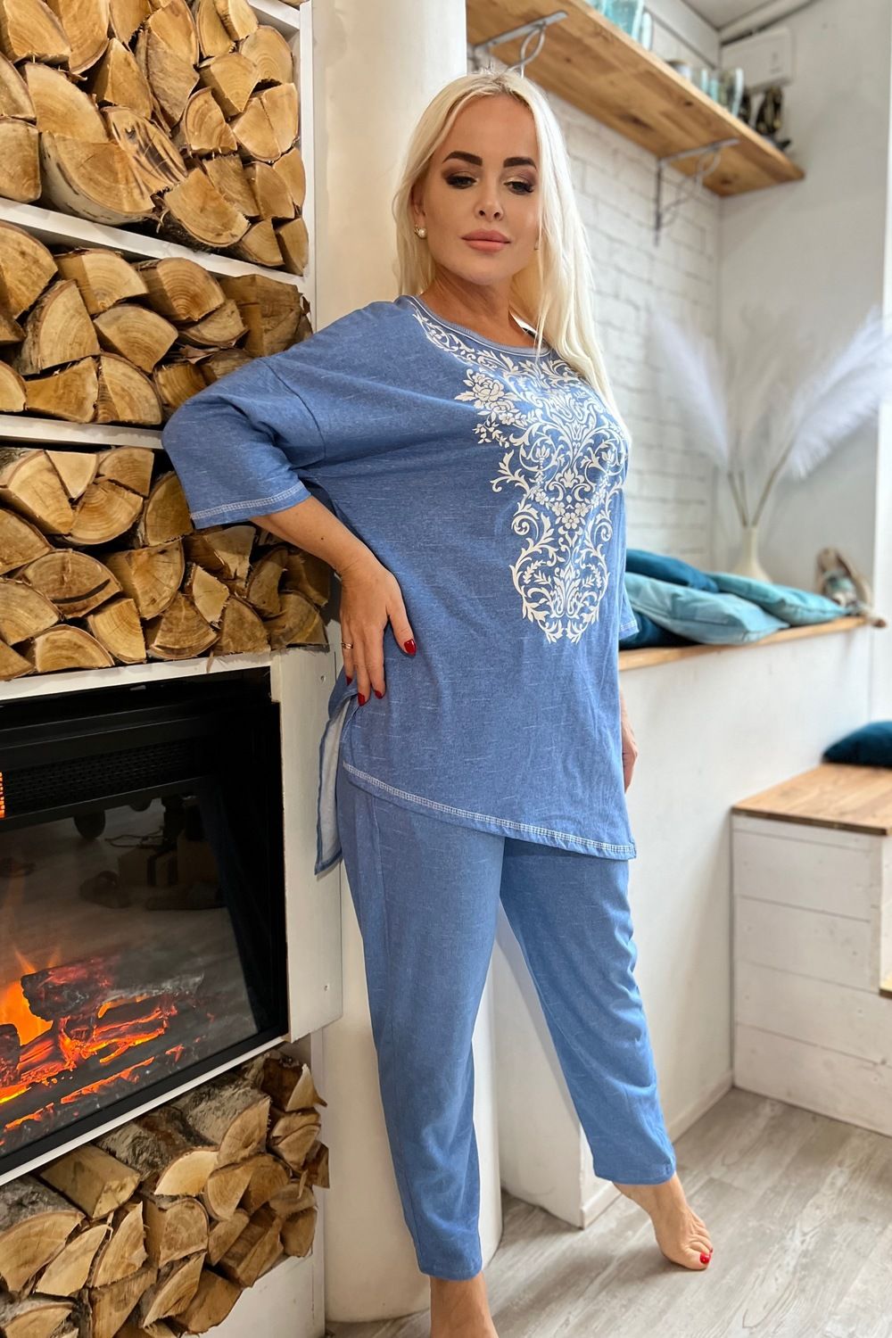 Туника прямая, свободная, с округлой горловиной, с асимметричным низом. Рукав длиной 3/4. Горловина обработана бейкой из основного полотна.